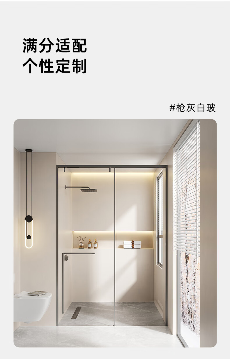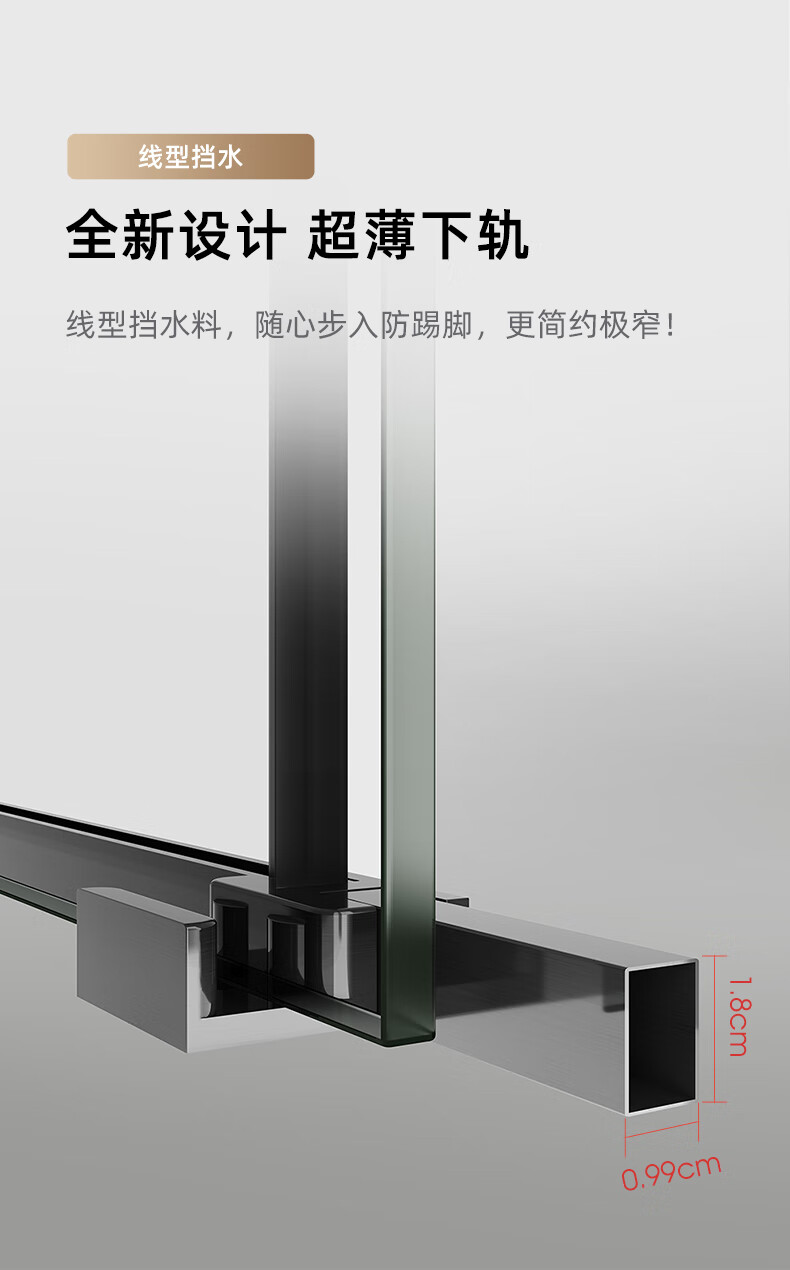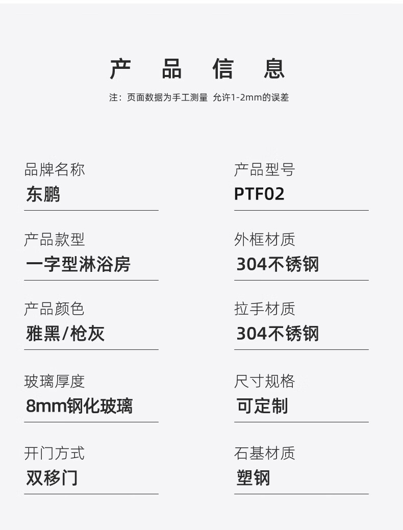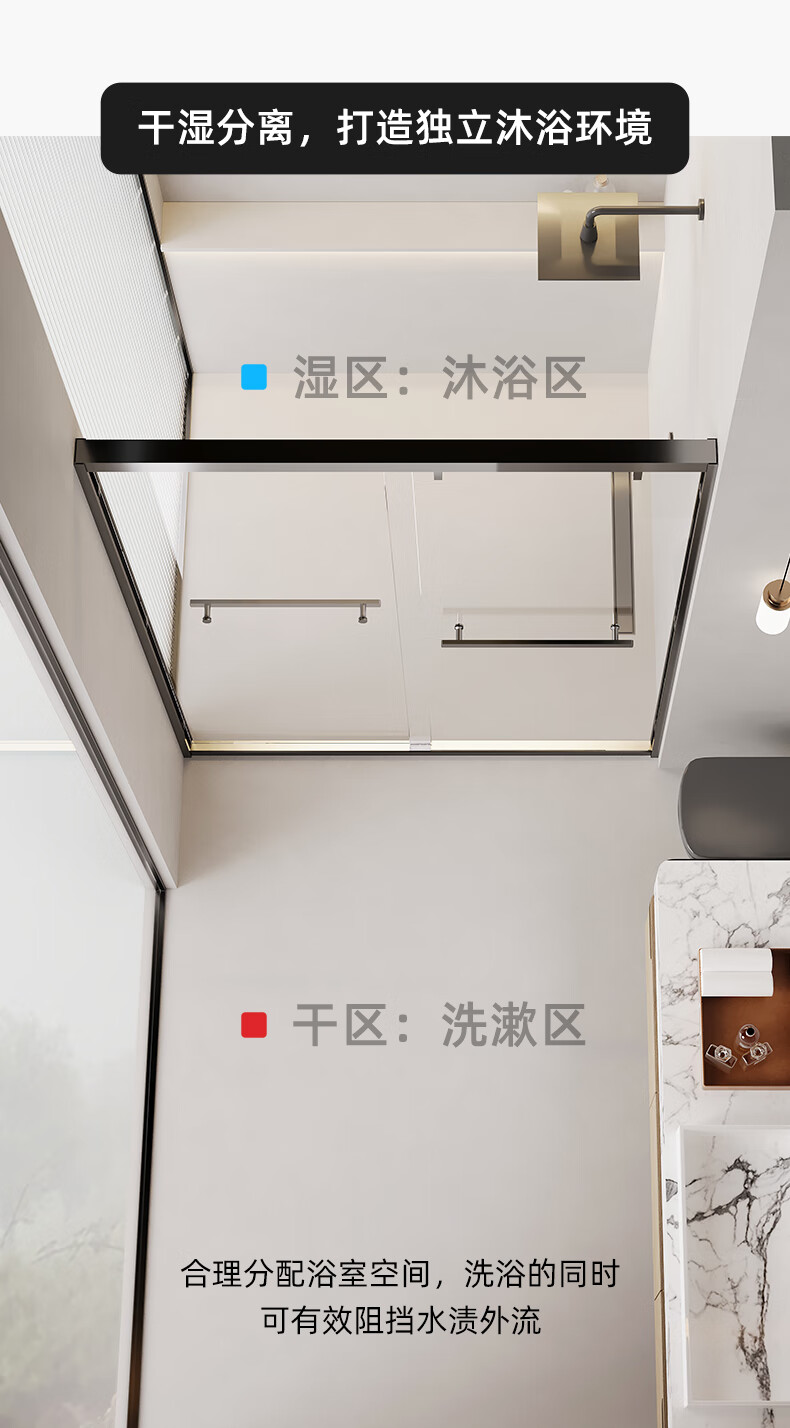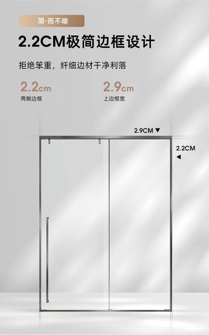 东鹏淋浴房淋浴隔断一字型卫生间浴室干湿分离玻璃推拉门洗澡间浴屏 单移雅黑+阻尼2㎡ 不锈钢边框|标高2米