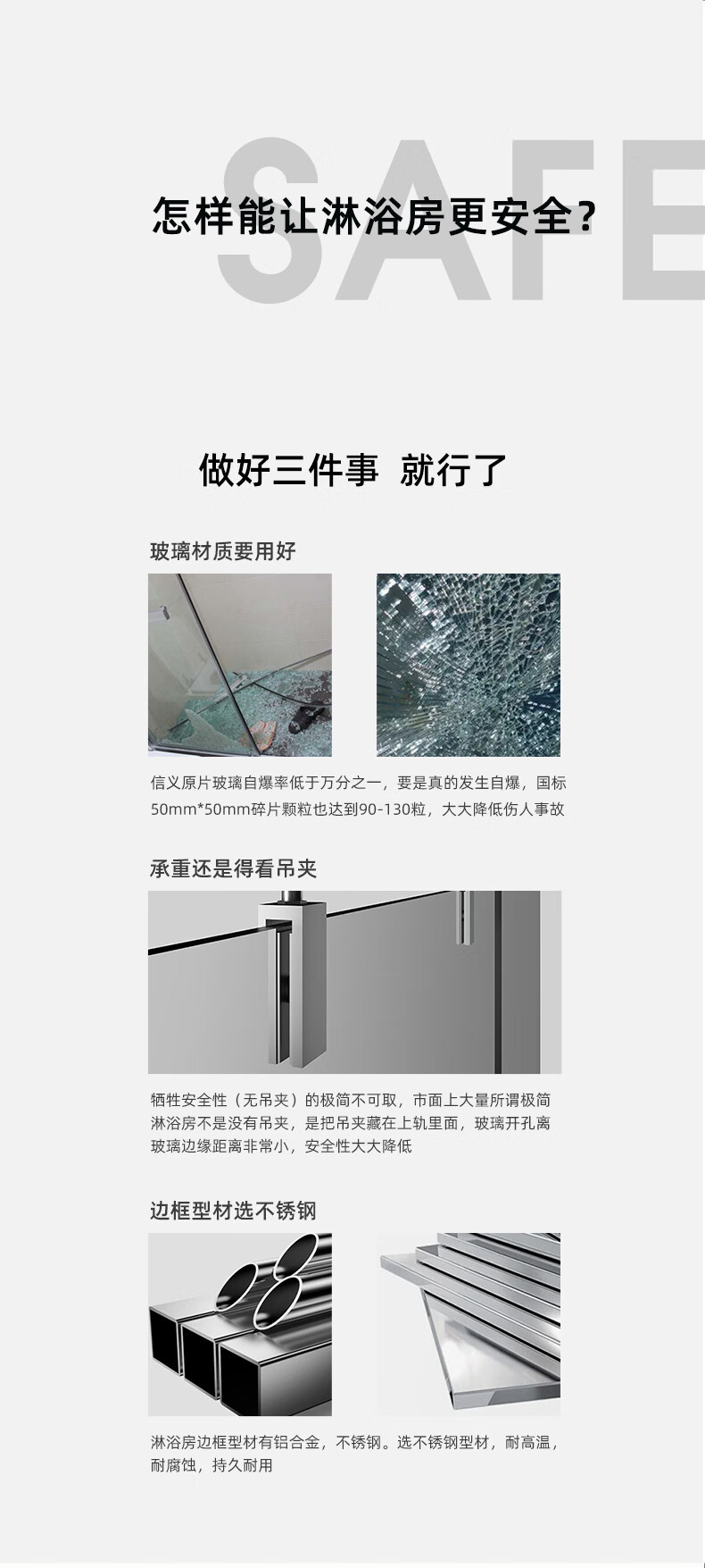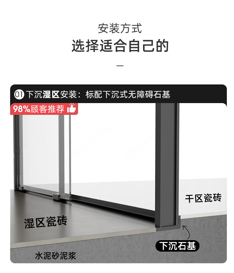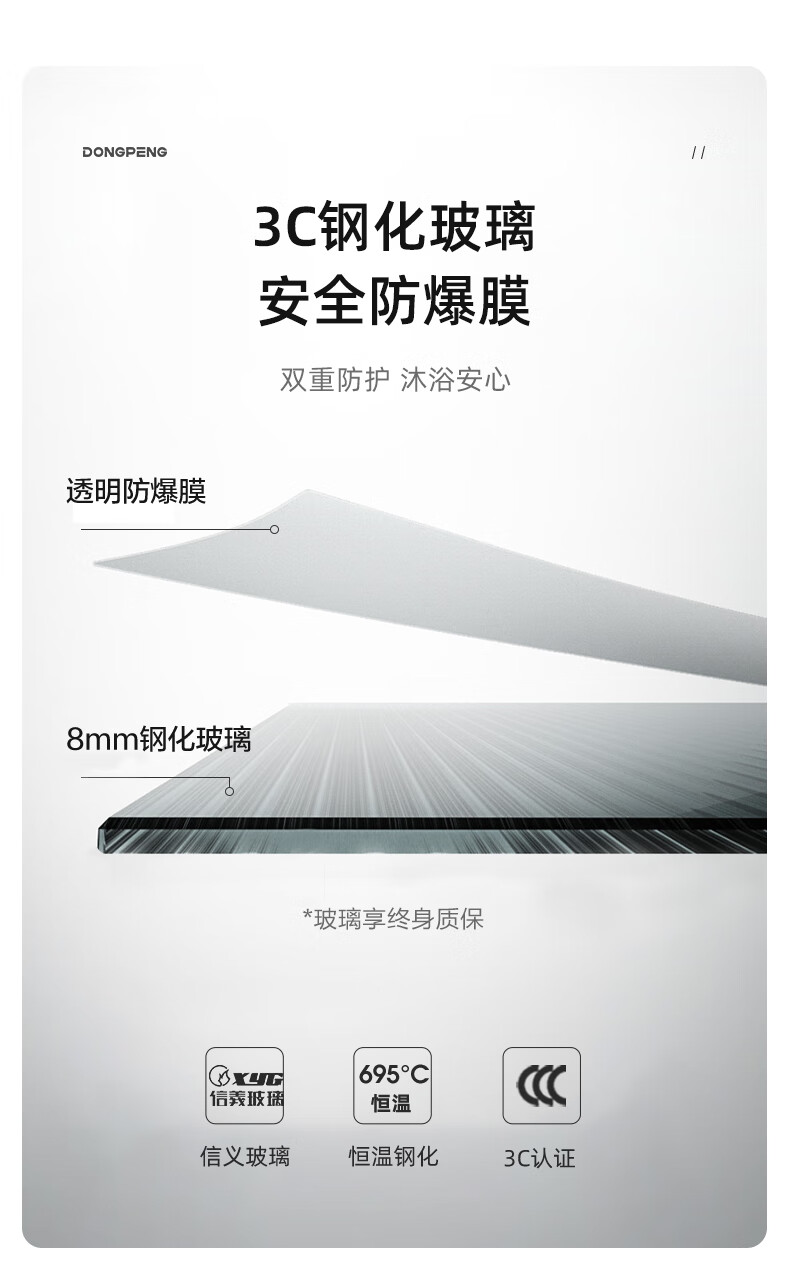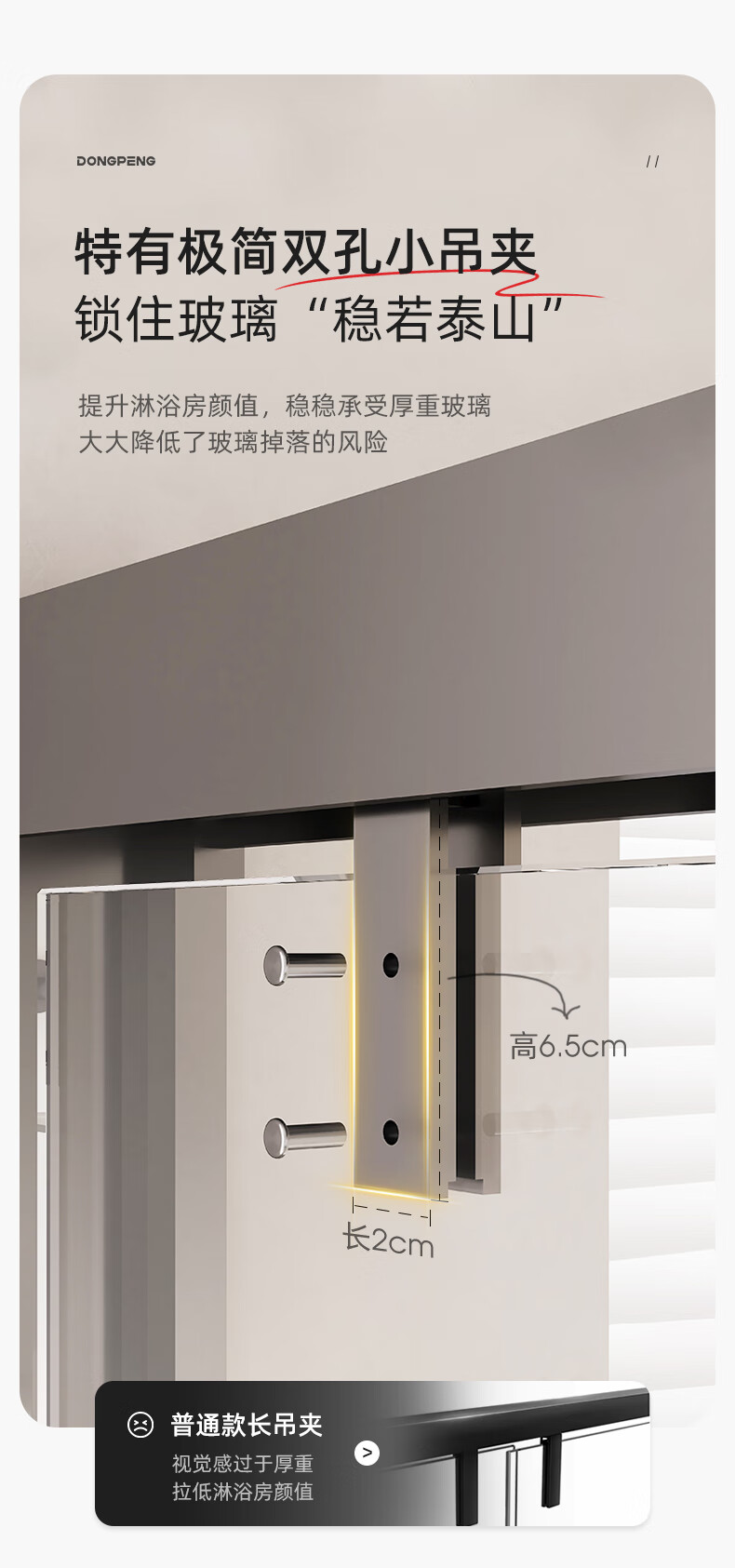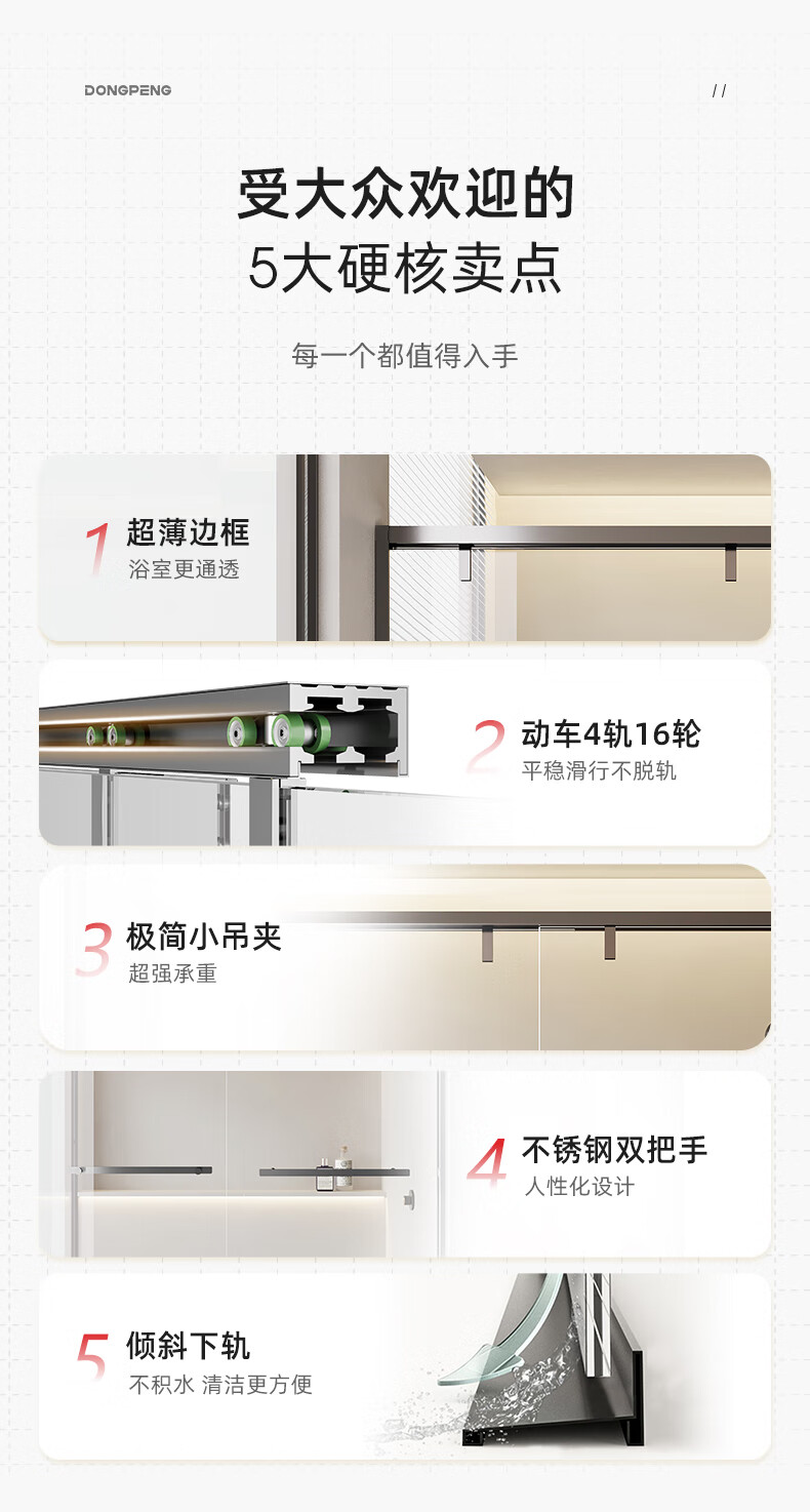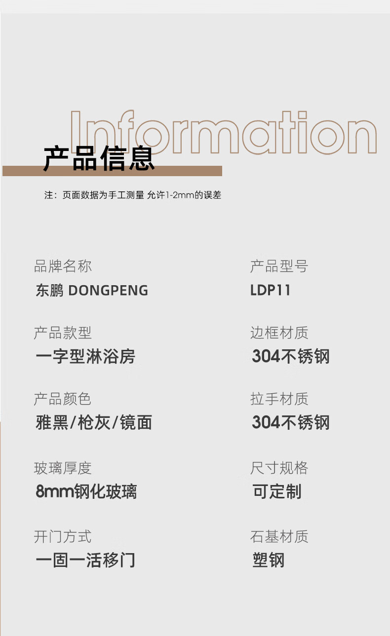 东鹏淋浴房淋浴隔断一字型卫生间浴室干湿分离玻璃推拉门洗澡间浴屏 单移雅黑+阻尼2㎡ 不锈钢边框|标高2米