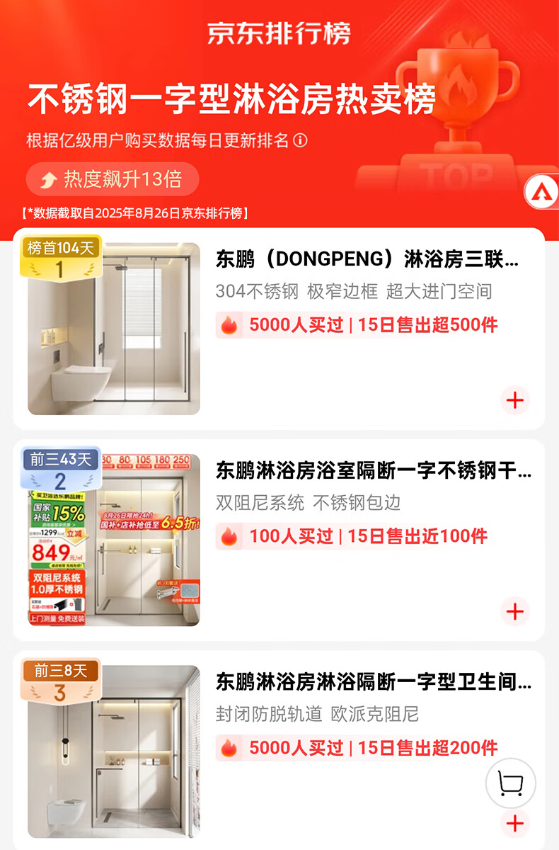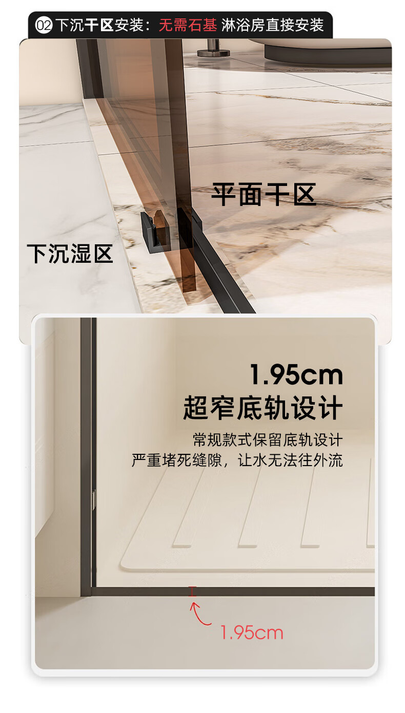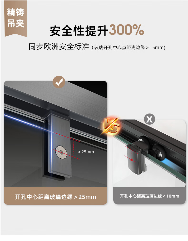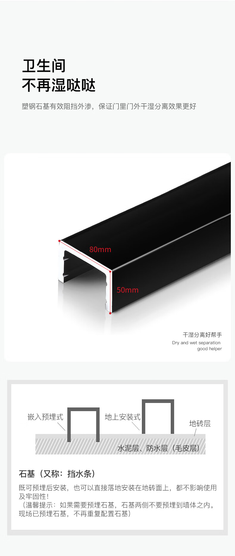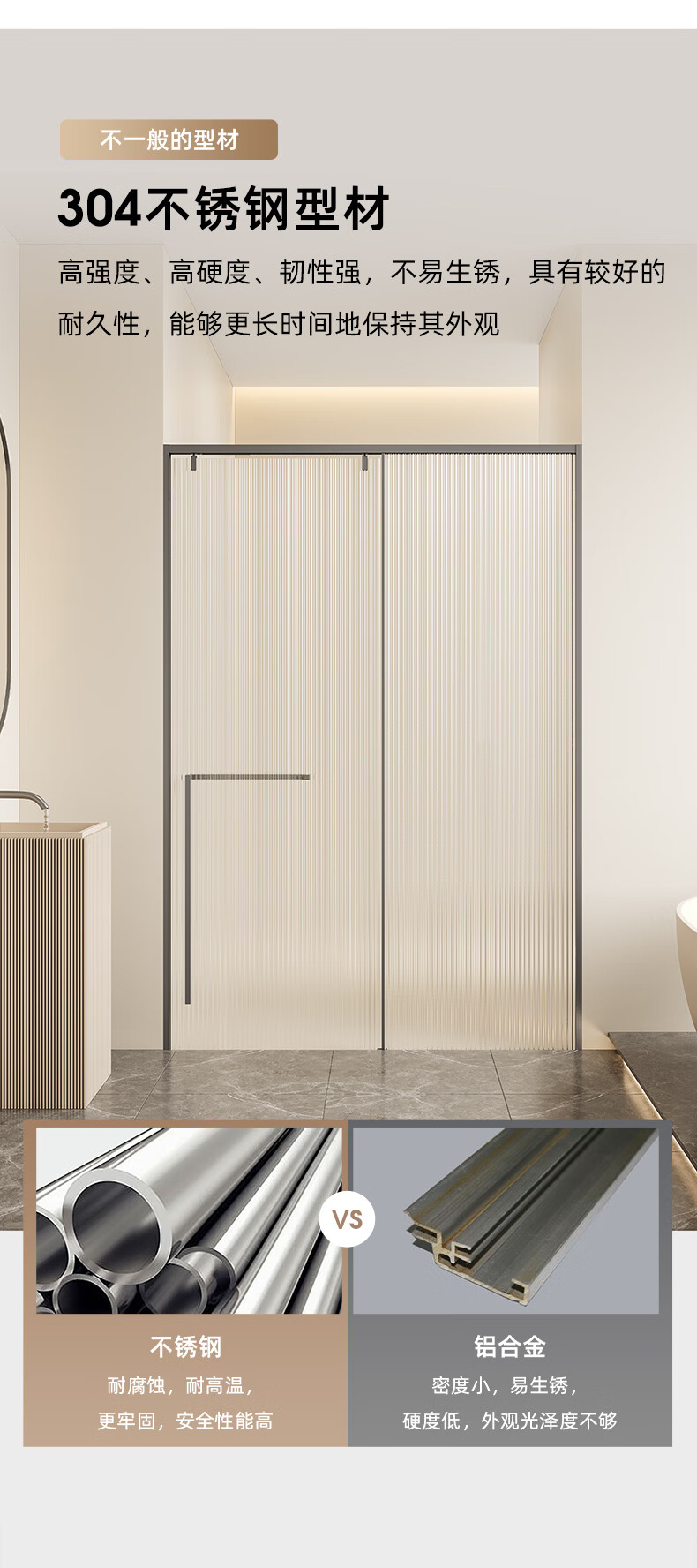 东鹏淋浴房淋浴隔断一字型卫生间浴室干湿分离玻璃推拉门洗澡间浴屏 单移雅黑+阻尼2㎡ 不锈钢边框|标高2米
