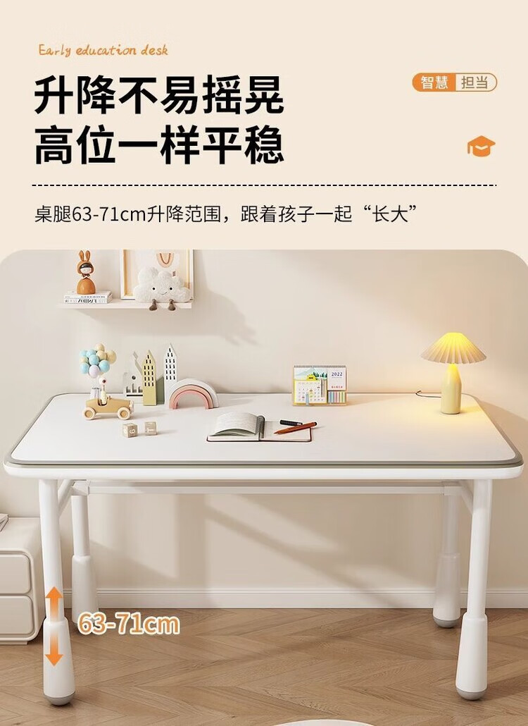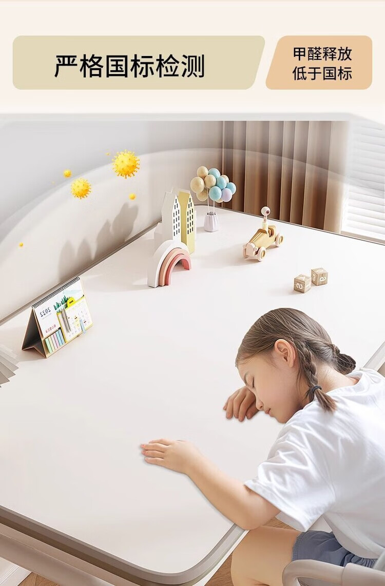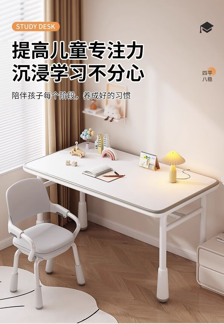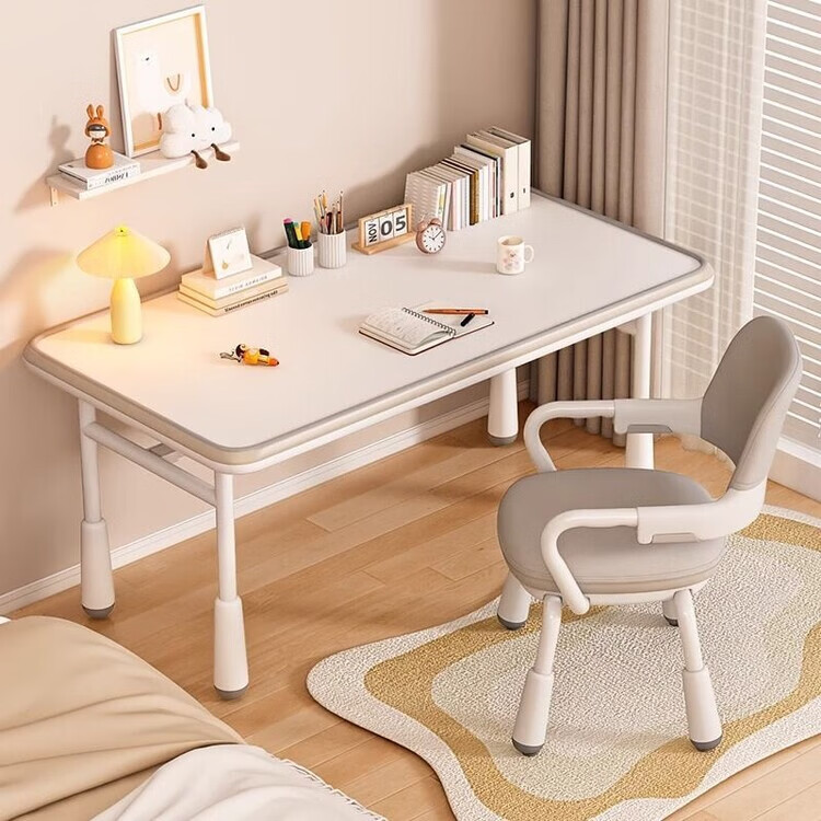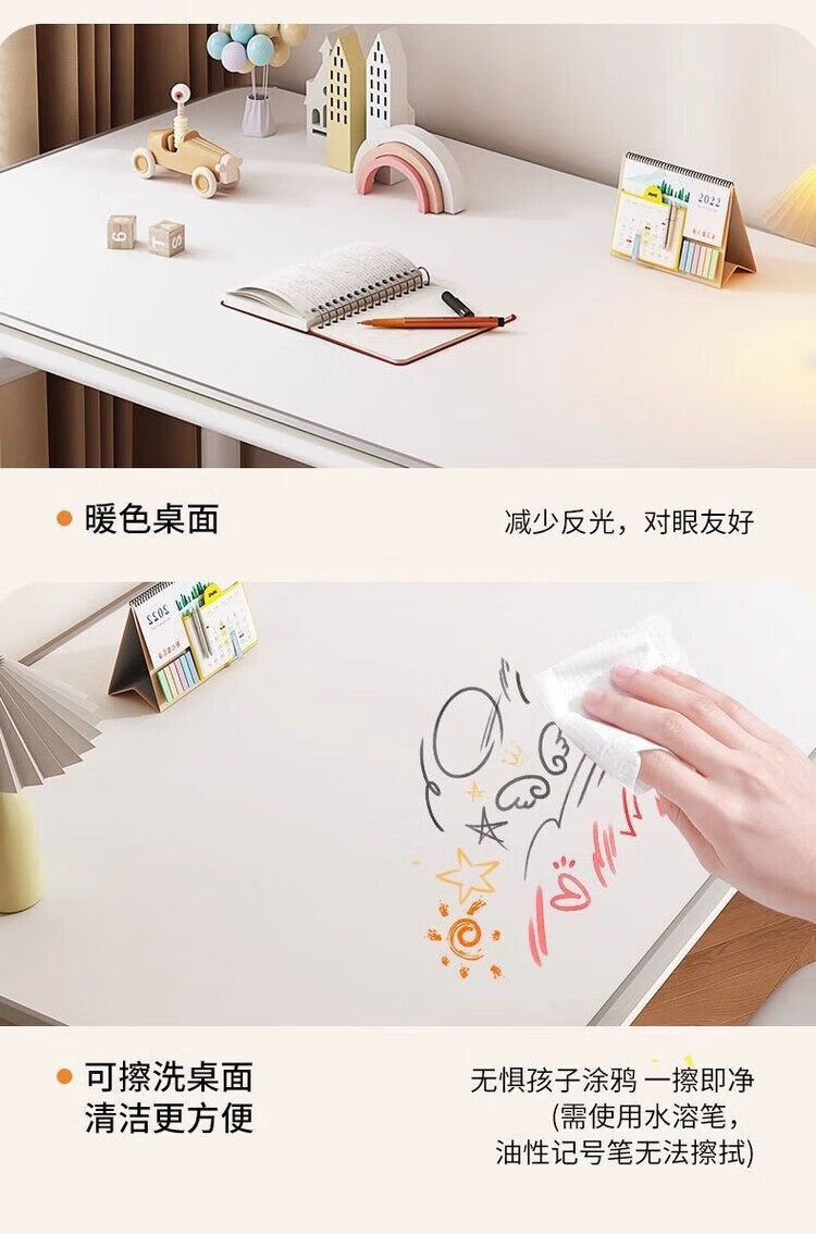 欣慕雅儿童学习桌小学生写字作业书桌家用简约小孩课桌椅可升降桌子套装 100*60【海豚蓝-白板桌】-高度调节