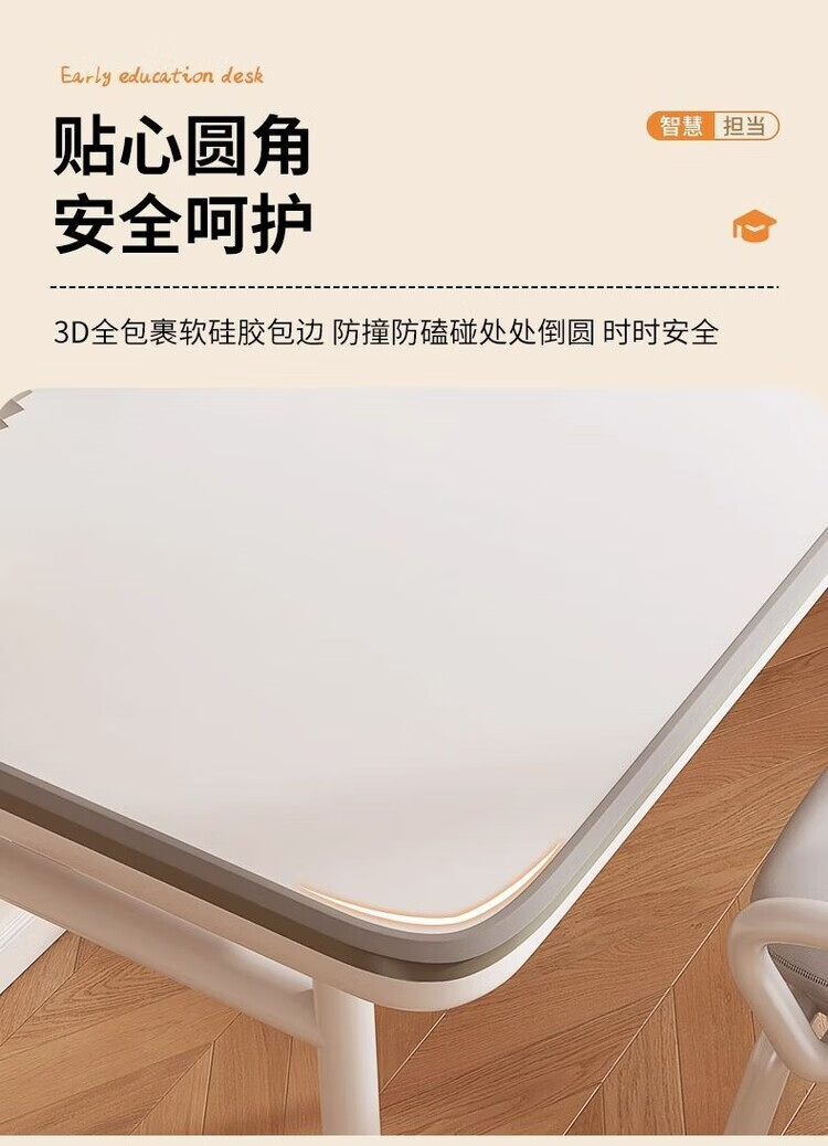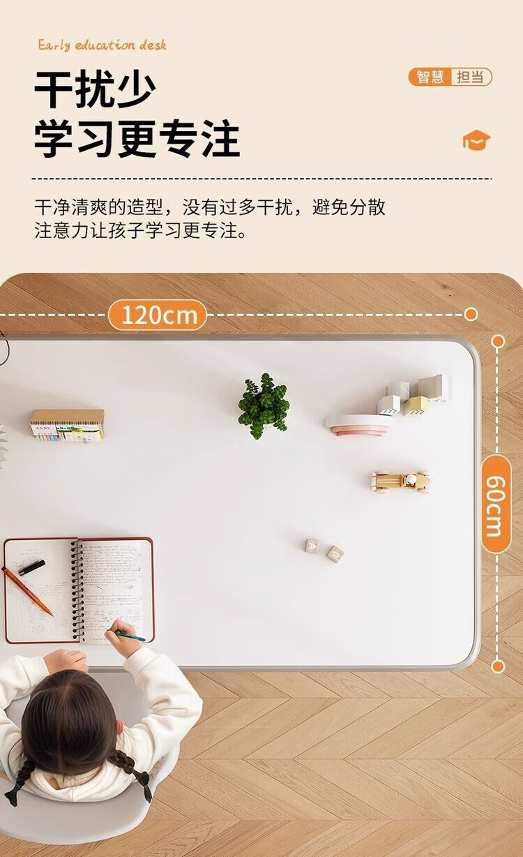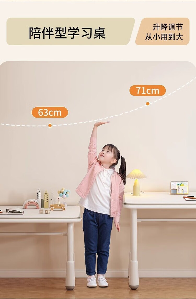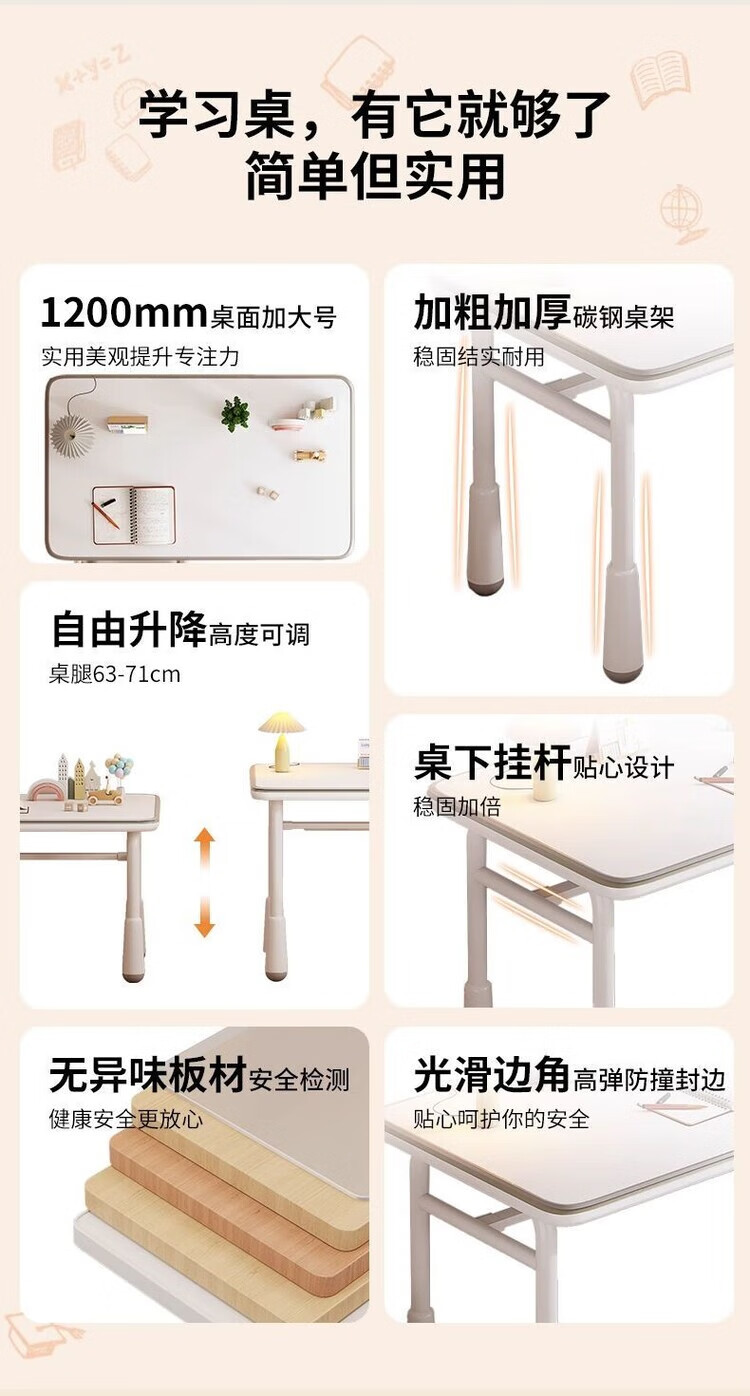 欣慕雅儿童学习桌小学生写字作业书桌家用简约小孩课桌椅可升降桌子套装 100*60【海豚蓝-白板桌】-高度调节