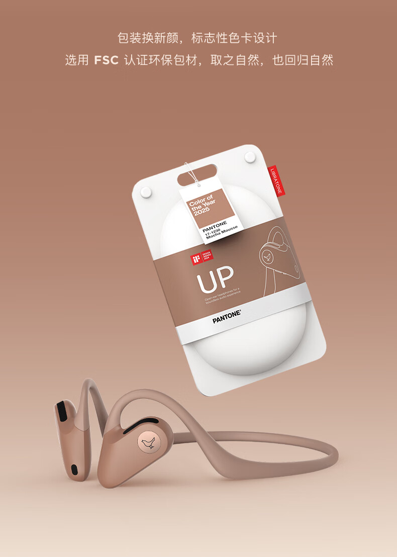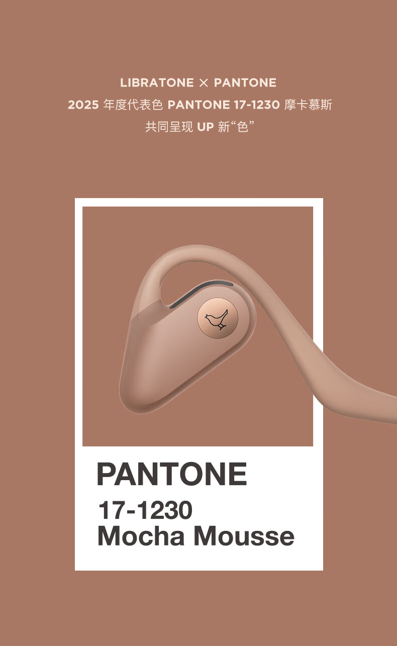LIBRATONE小鸟UP耳机PANTONE限定版开放式蓝牙耳机不入耳后挂式跑步运动骑行轻便时尚无线耳机 摩卡慕斯(PANTONE限定版)