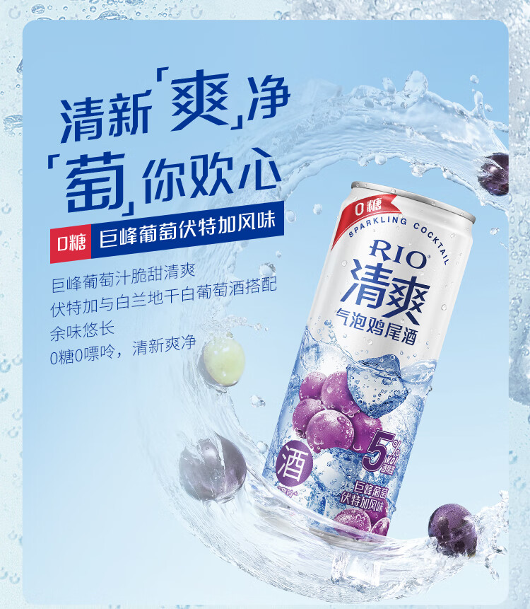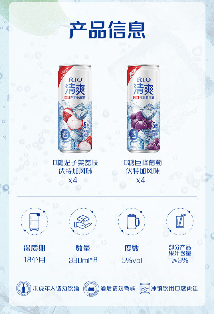 锐澳(RIO)预调酒 鸡尾酒 洋酒 果酒甜酒 伏特加 清爽5度0糖330ml*8罐