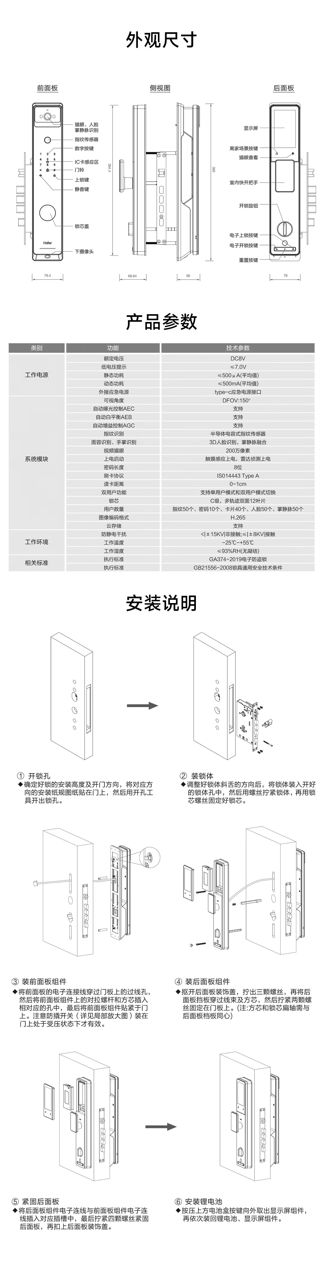 海尔(Haier)智能门锁S600智能锁指纹锁密码锁入户门防盗门锁