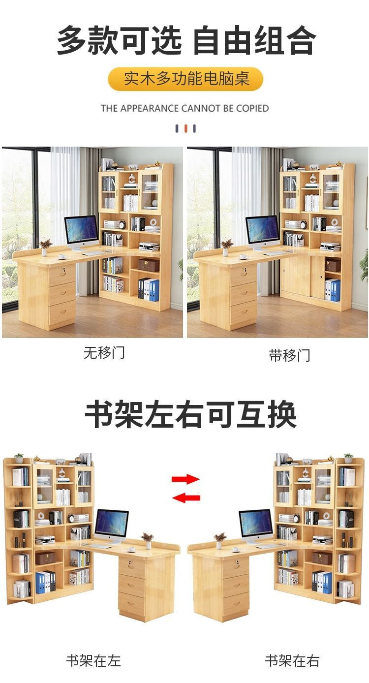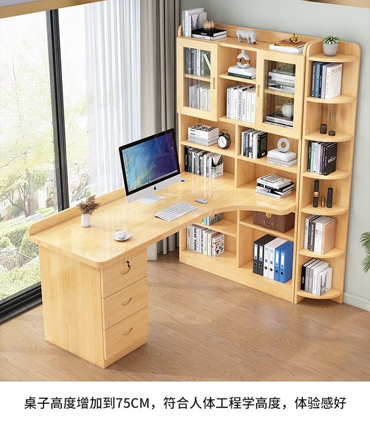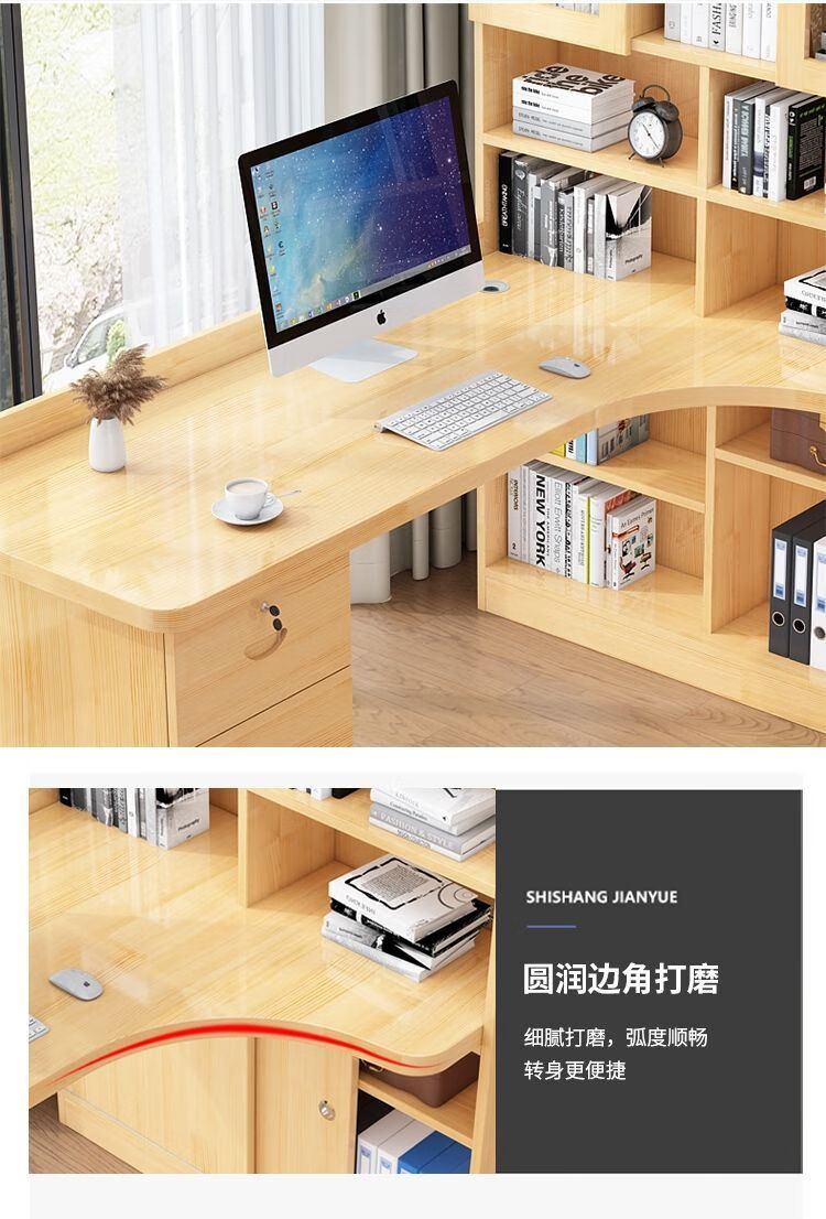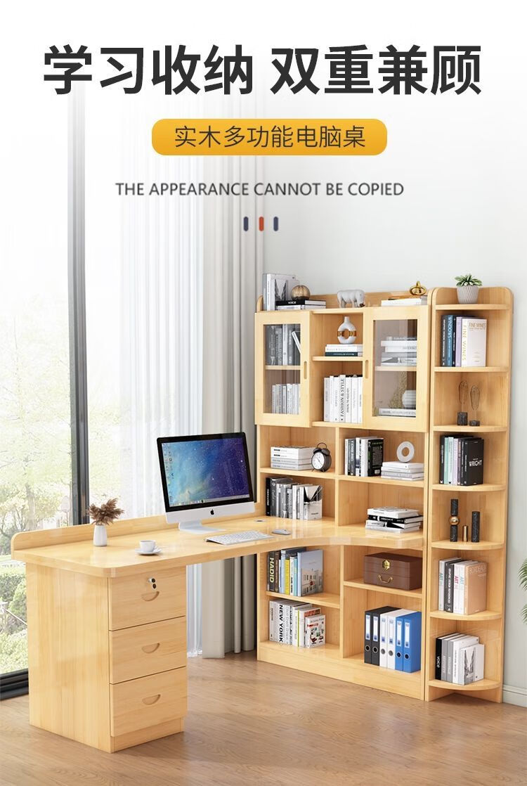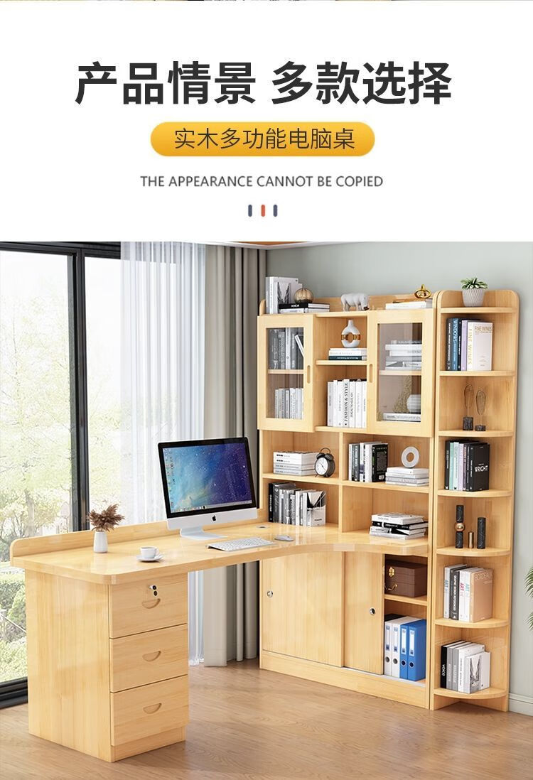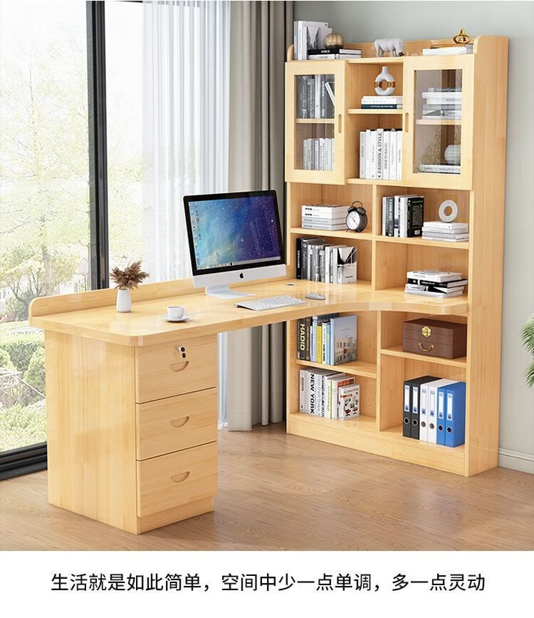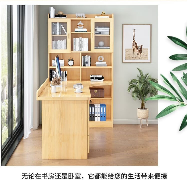 弘星隆实木转角书桌书架一体组合卧室儿童学习写字桌简约台式办公电脑桌 120*60无玻璃门 无移门
