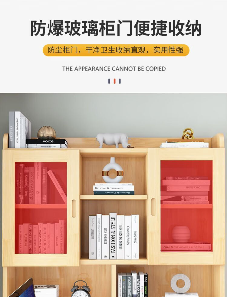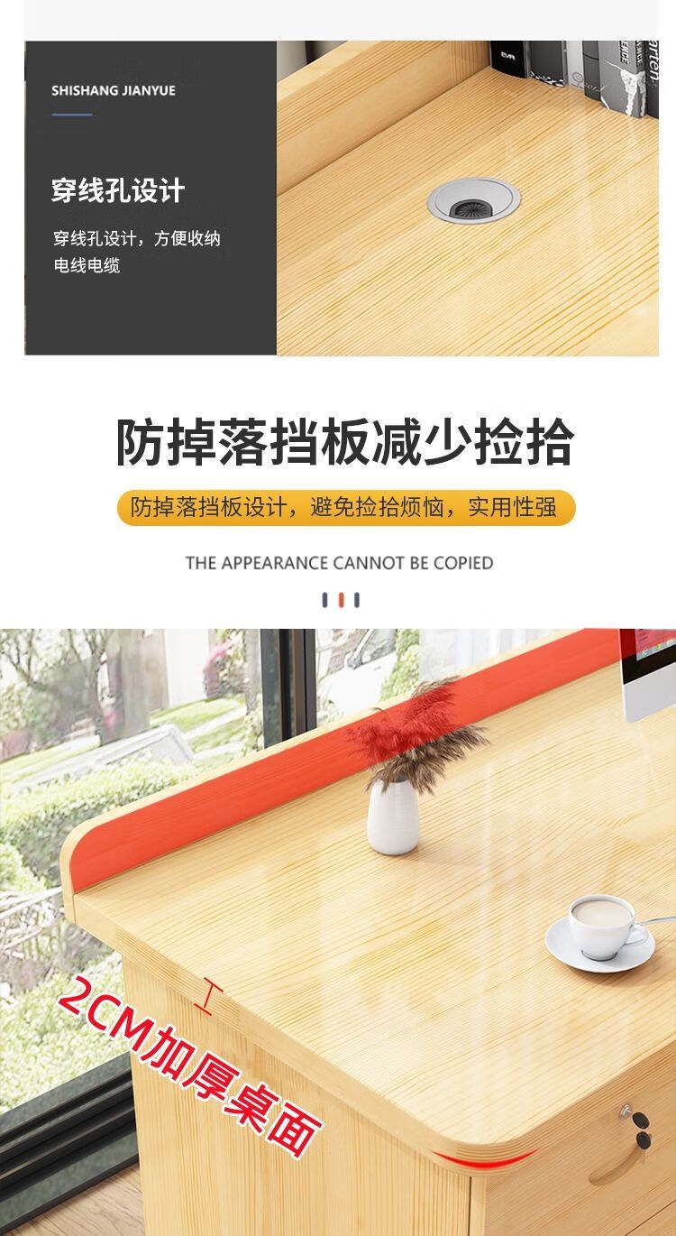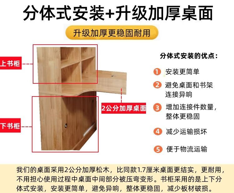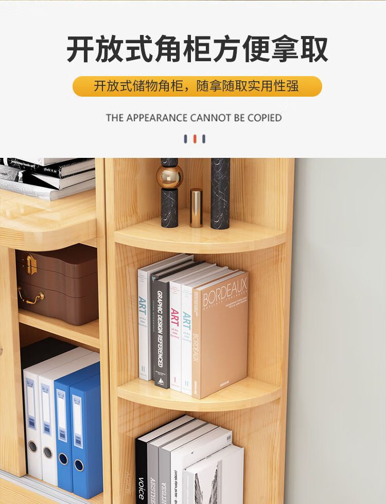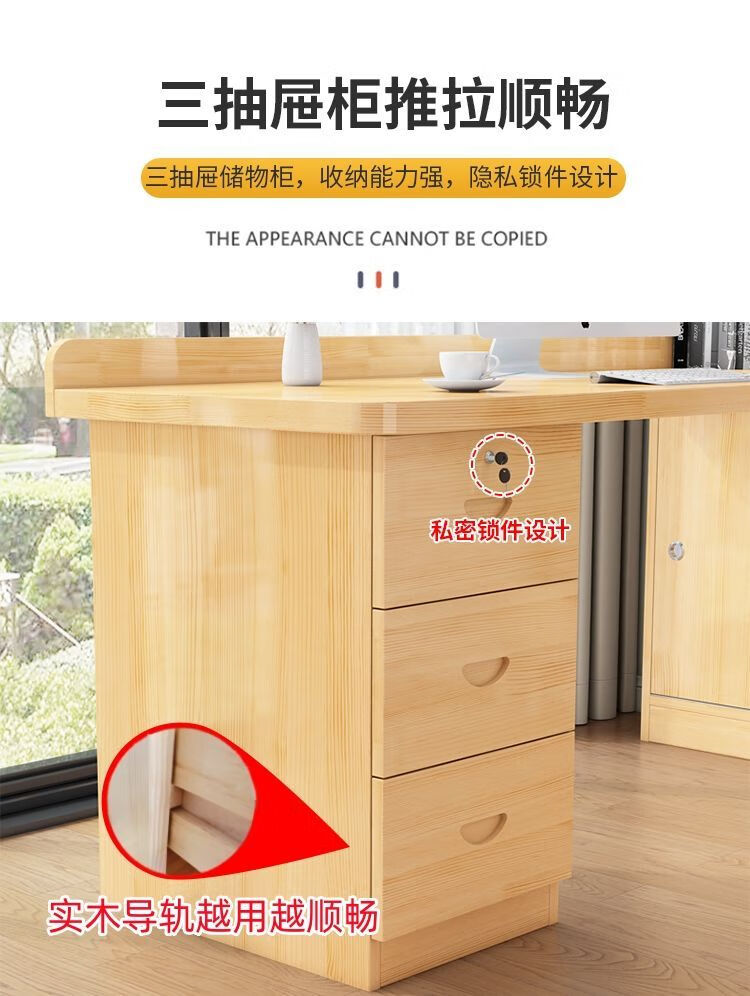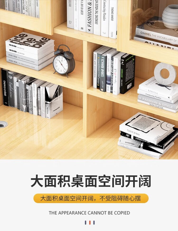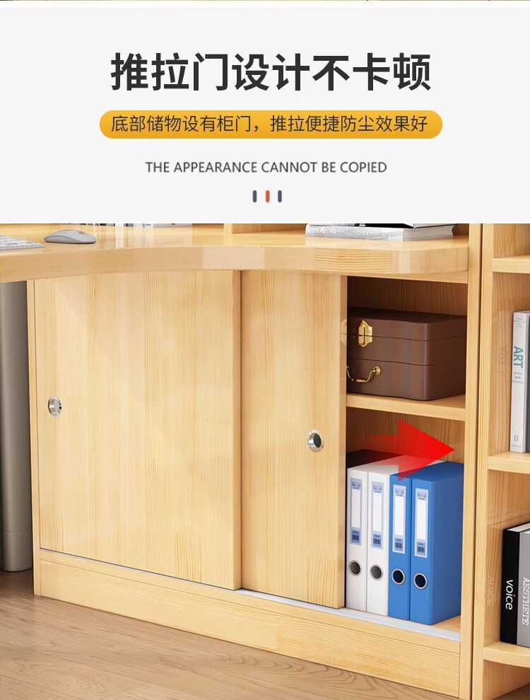 弘星隆实木转角书桌书架一体组合卧室儿童学习写字桌简约台式办公电脑桌 120*60无玻璃门 无移门