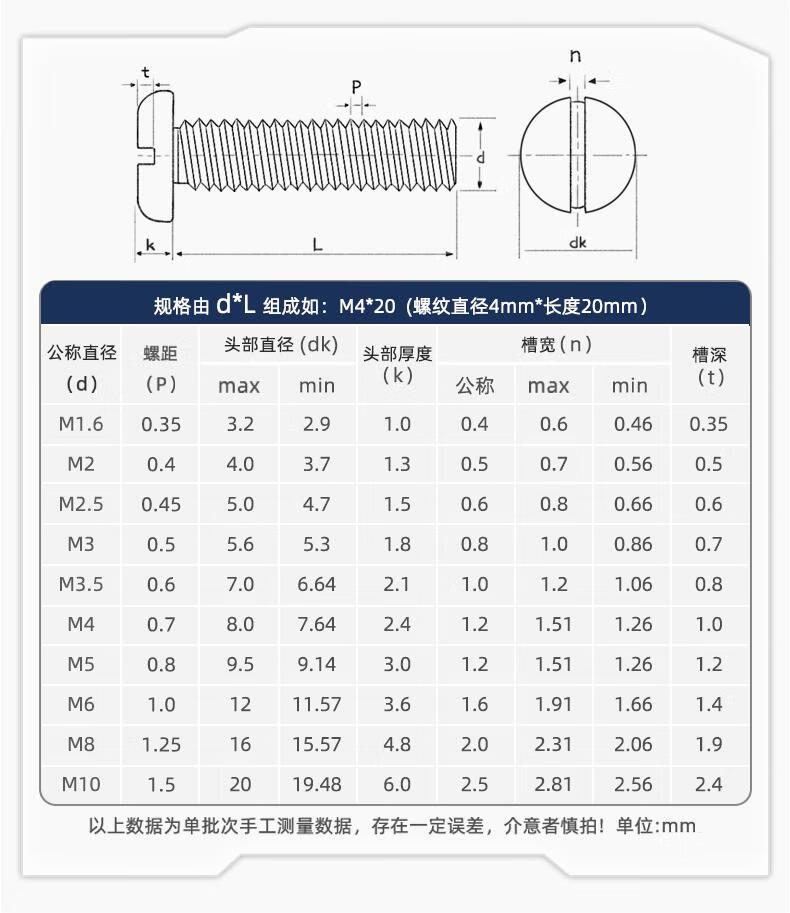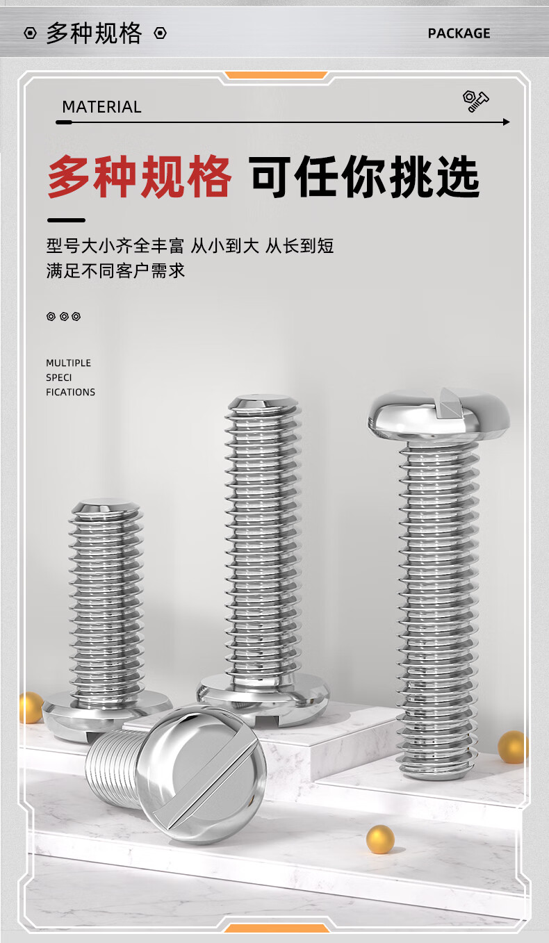 天卓五金GB67盘头一字螺丝钉304不锈钢圆头开槽螺栓MM1.6M2M2.5M3M4M5M6M8 M1.6*3-150个