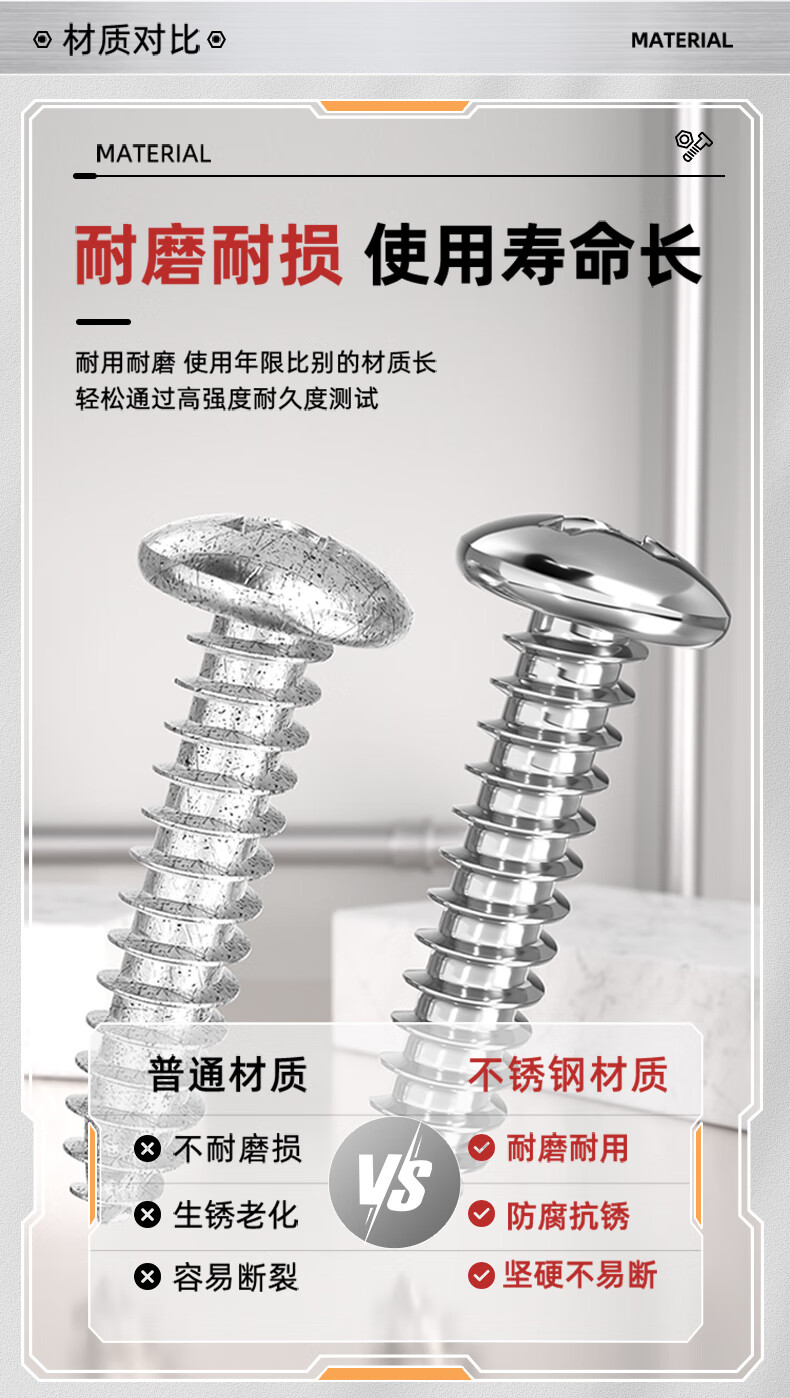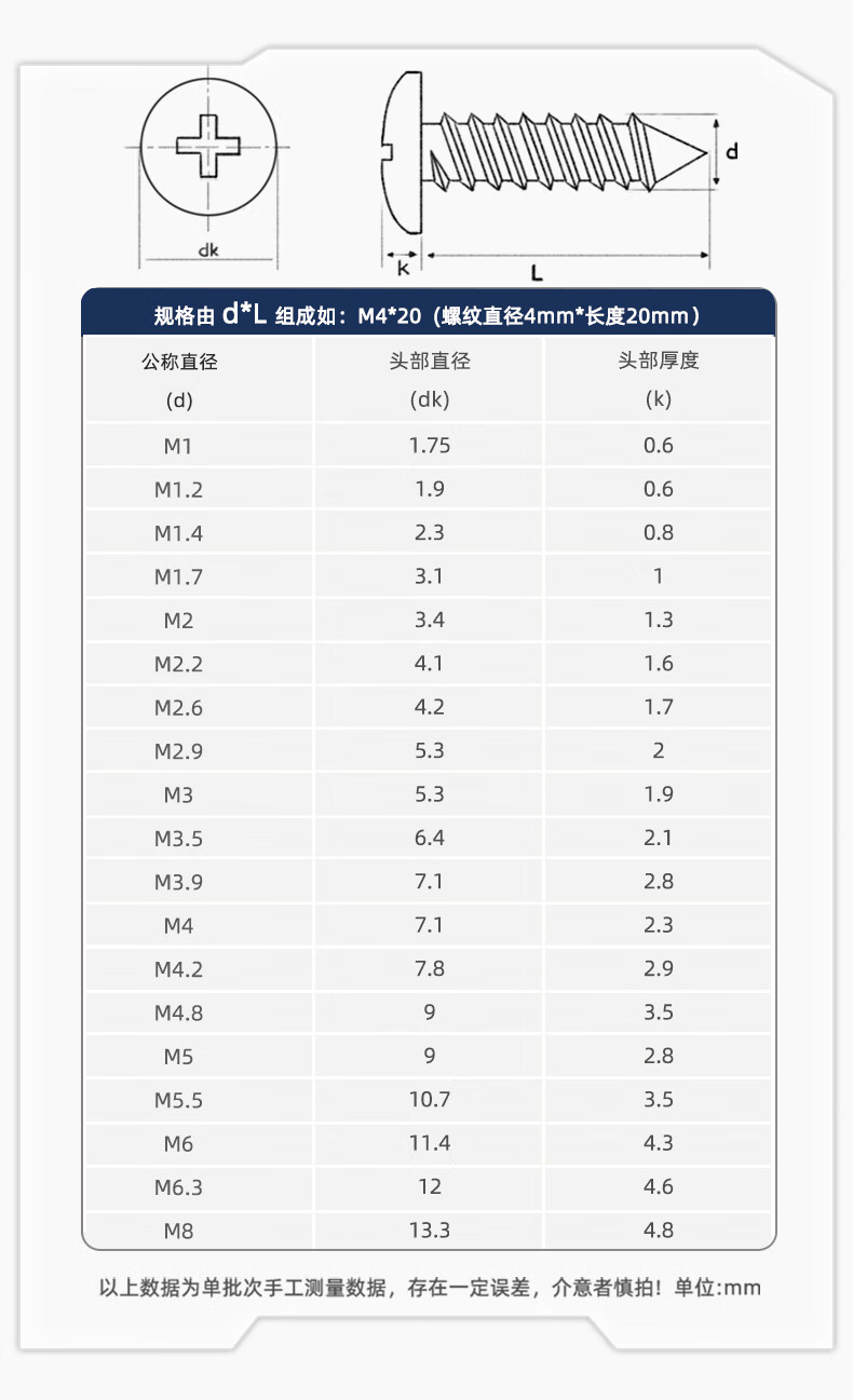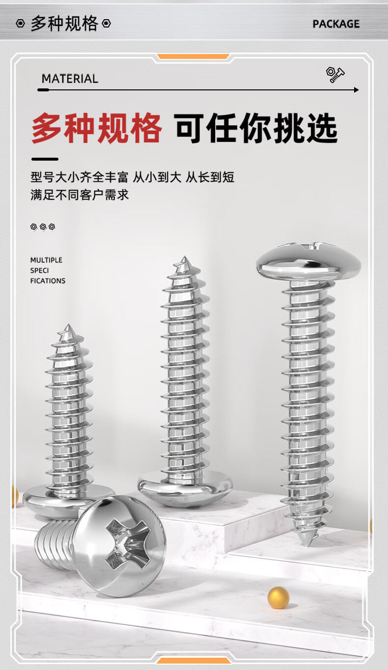 天卓五金304不锈钢十字盘头螺钉圆头自攻螺丝木螺丝尖尾大头M1M2M3M4M5M6 304圆攻【M3M4M5】胶塞套餐