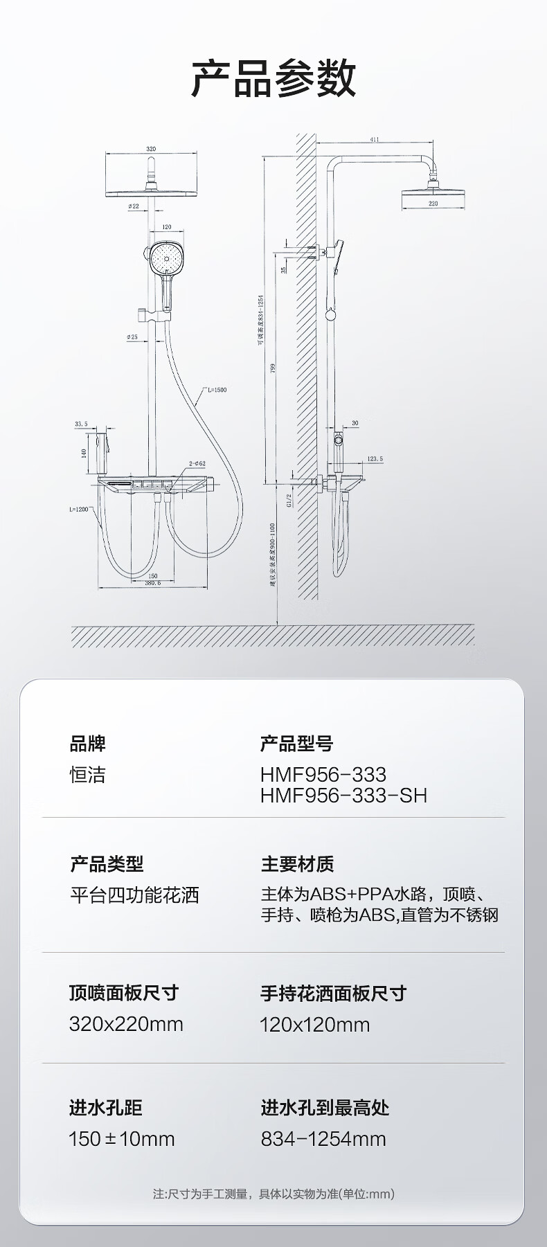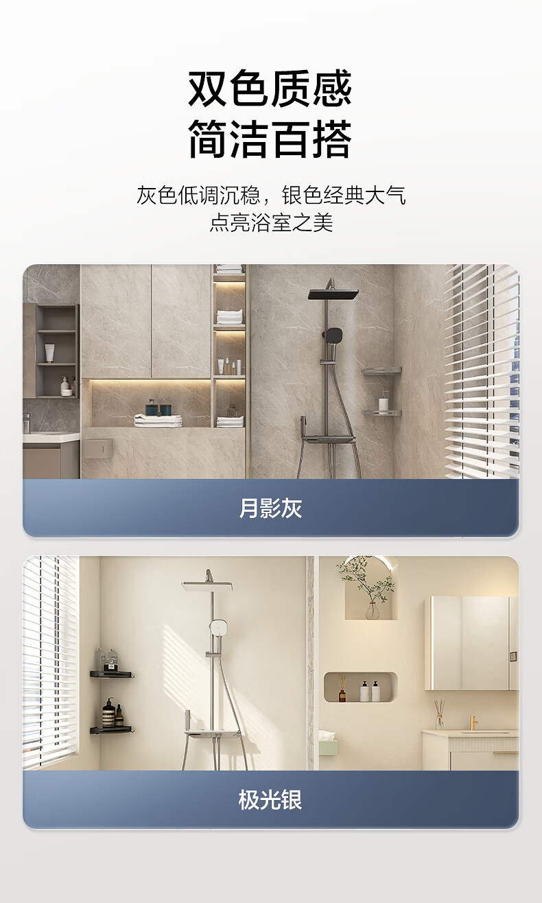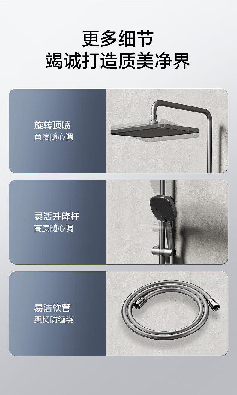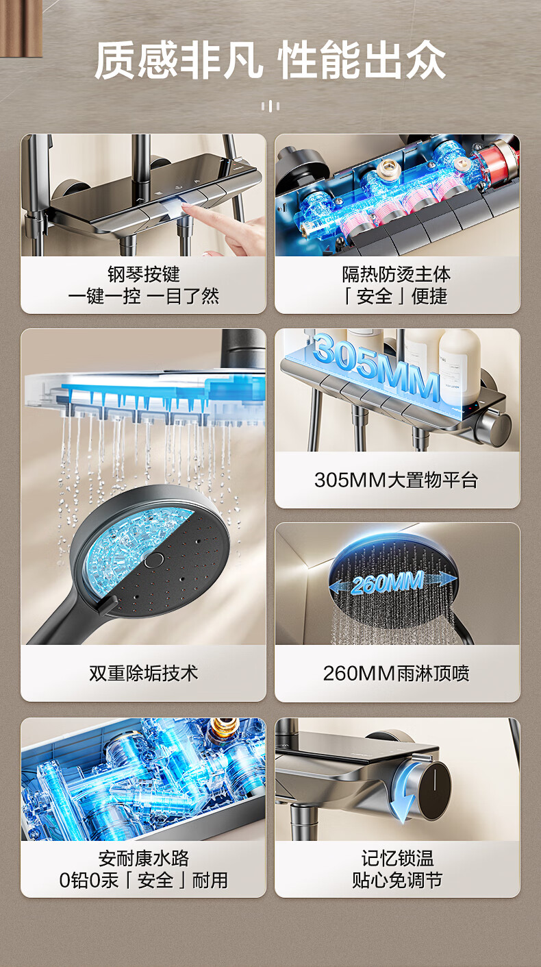 恒洁(HEGII) 淋浴花洒套装 智能除垢大顶喷置物平台多功能可升降花洒全套 【自动除垢方顶喷-银色】HMF936-333