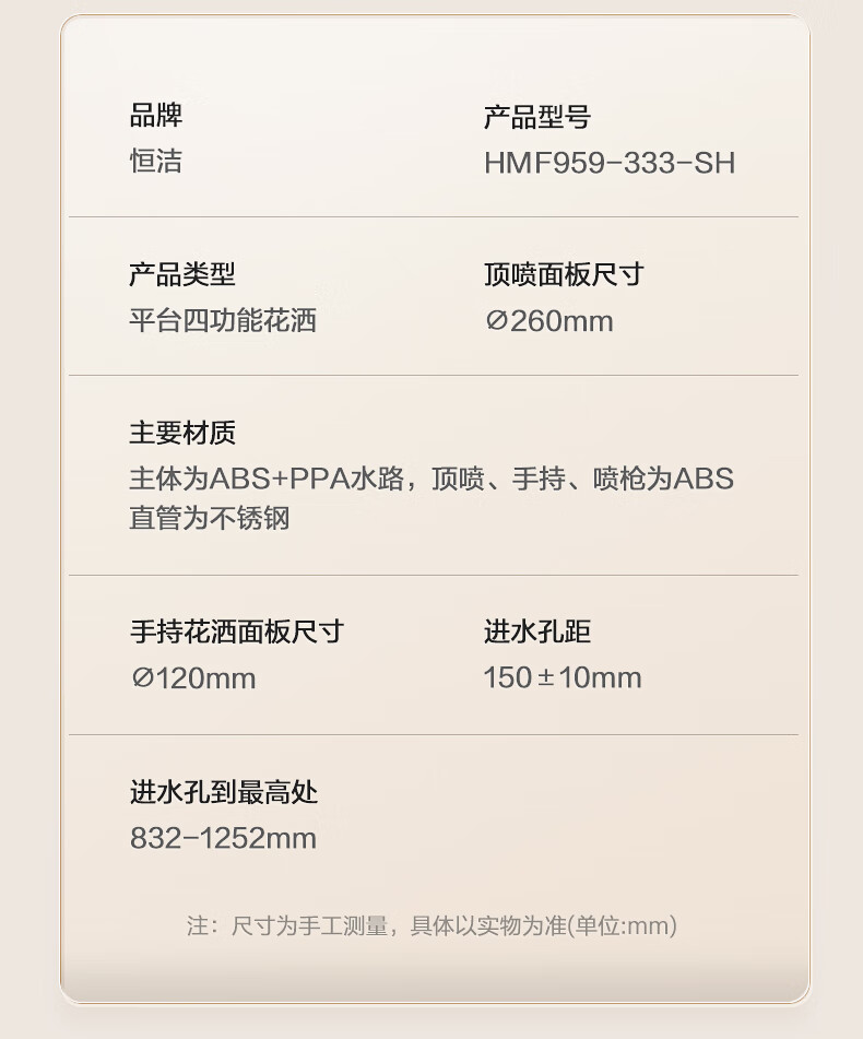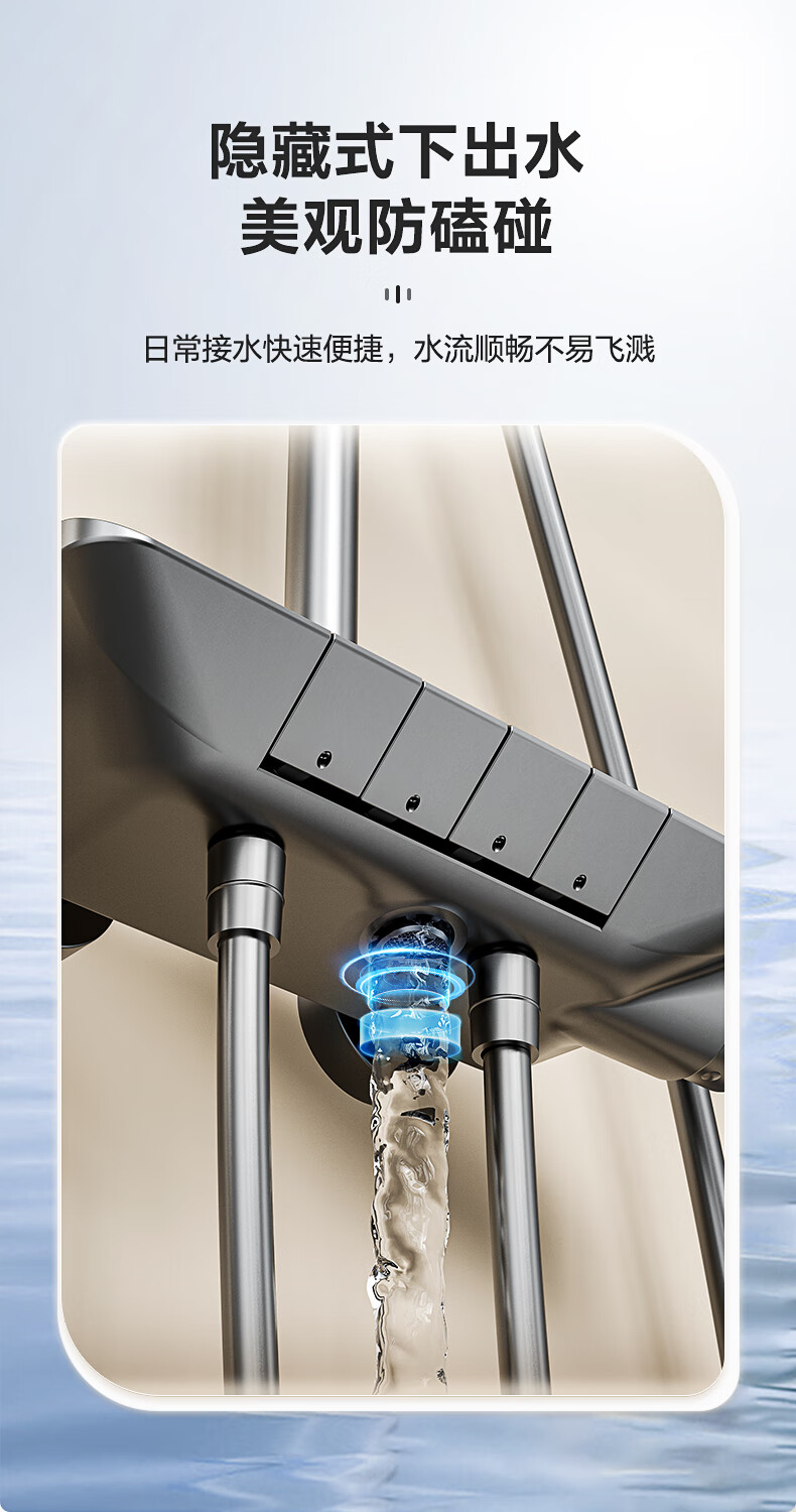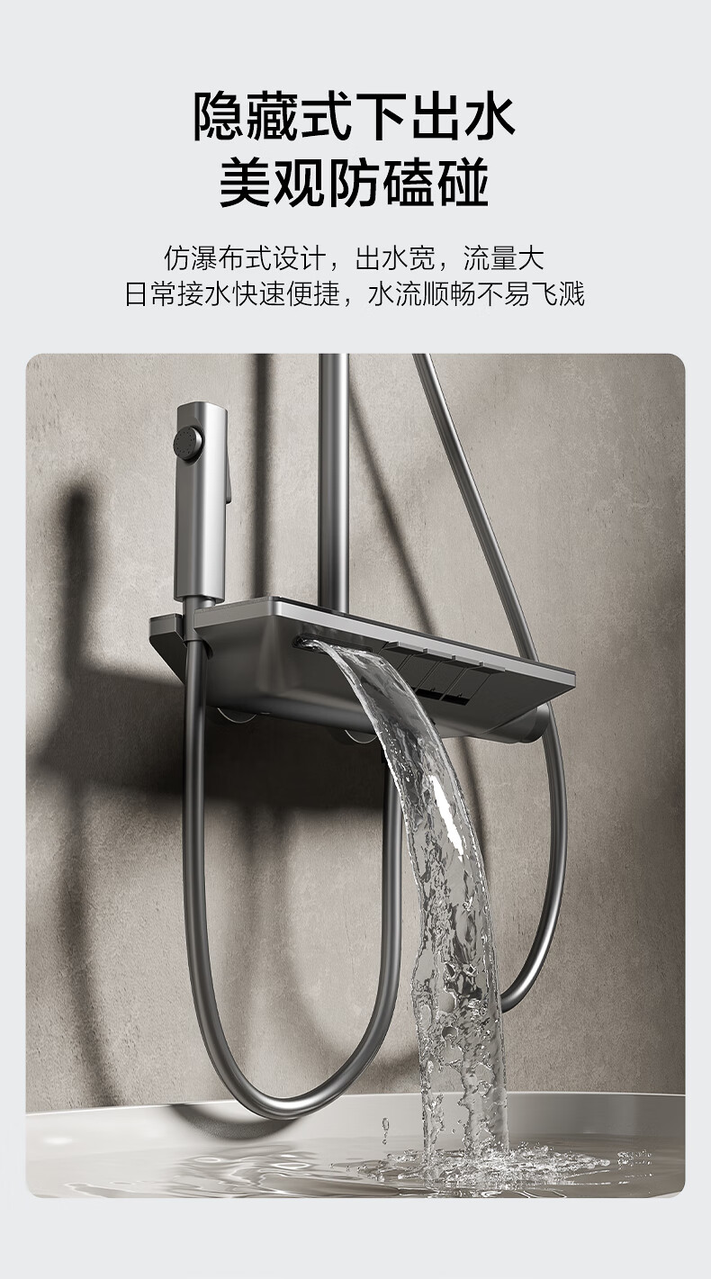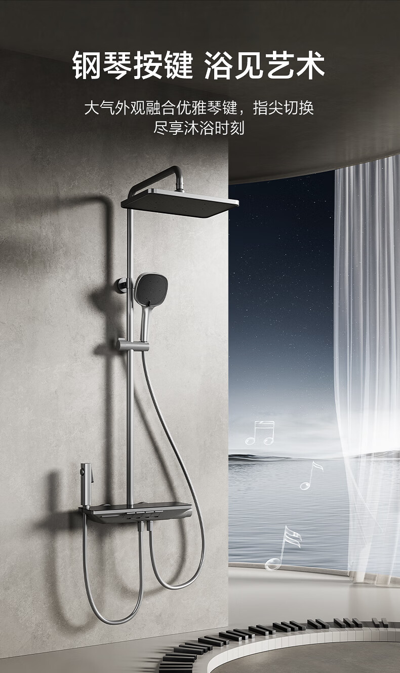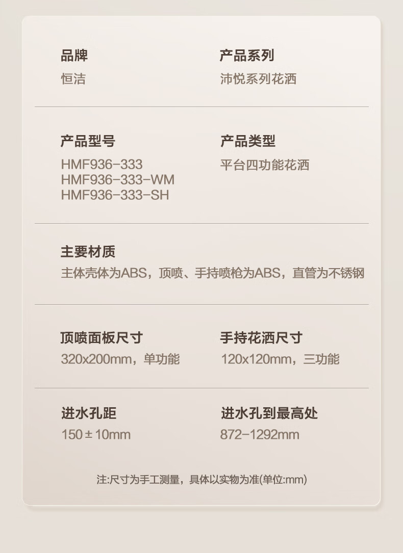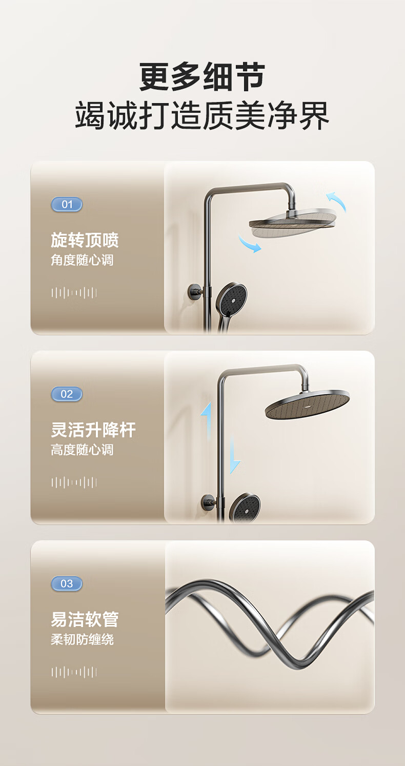 恒洁(HEGII) 淋浴花洒套装 智能除垢大顶喷置物平台多功能可升降花洒全套 【自动除垢方顶喷-银色】HMF936-333