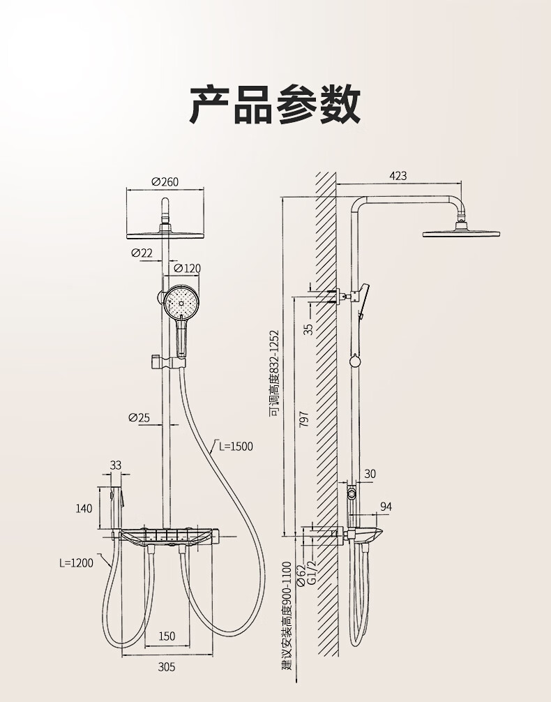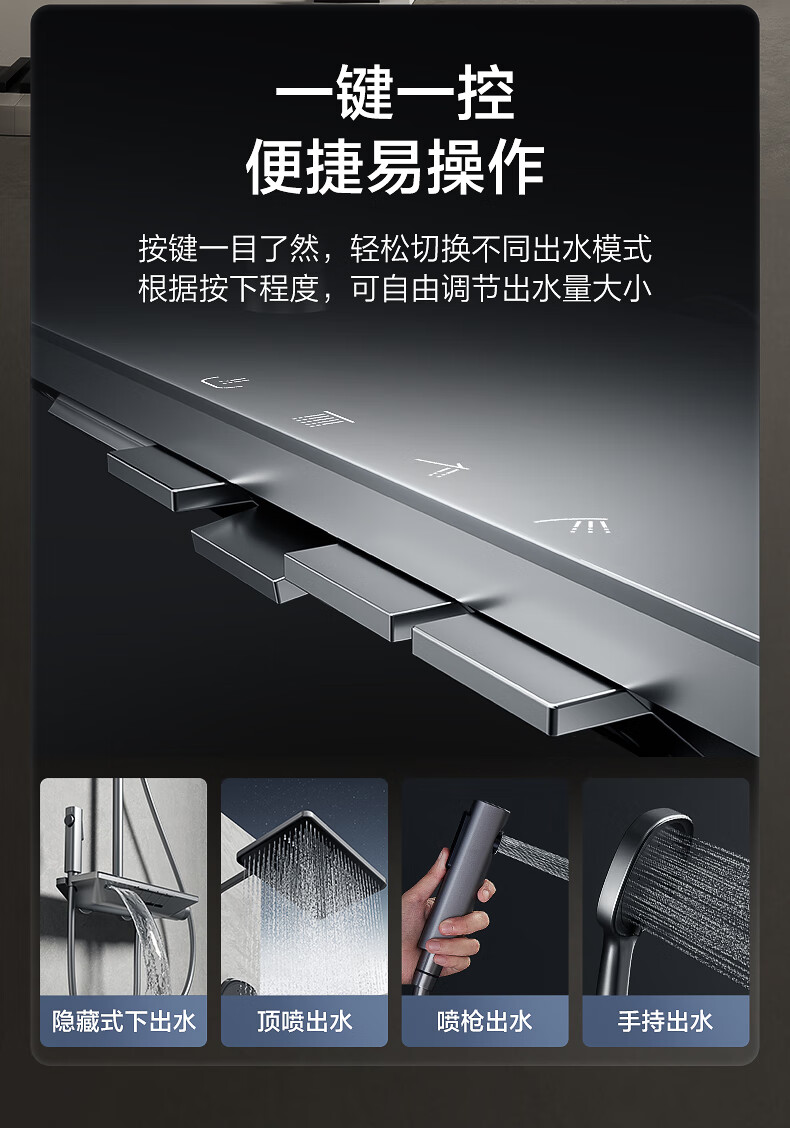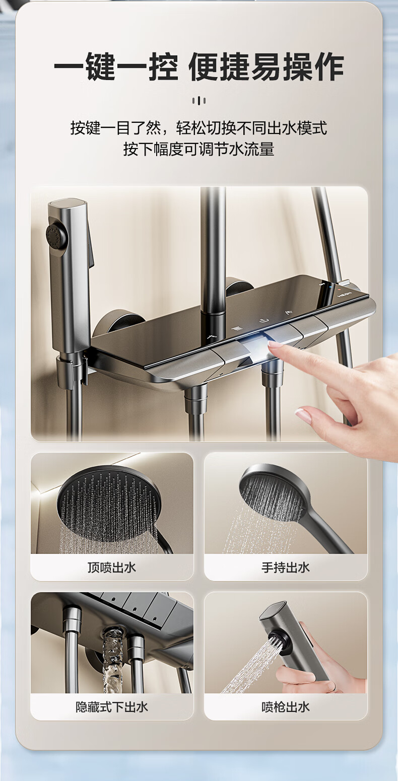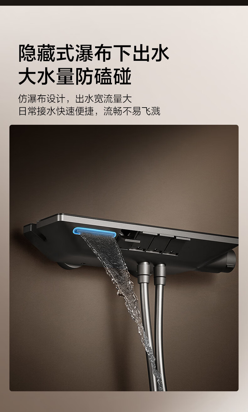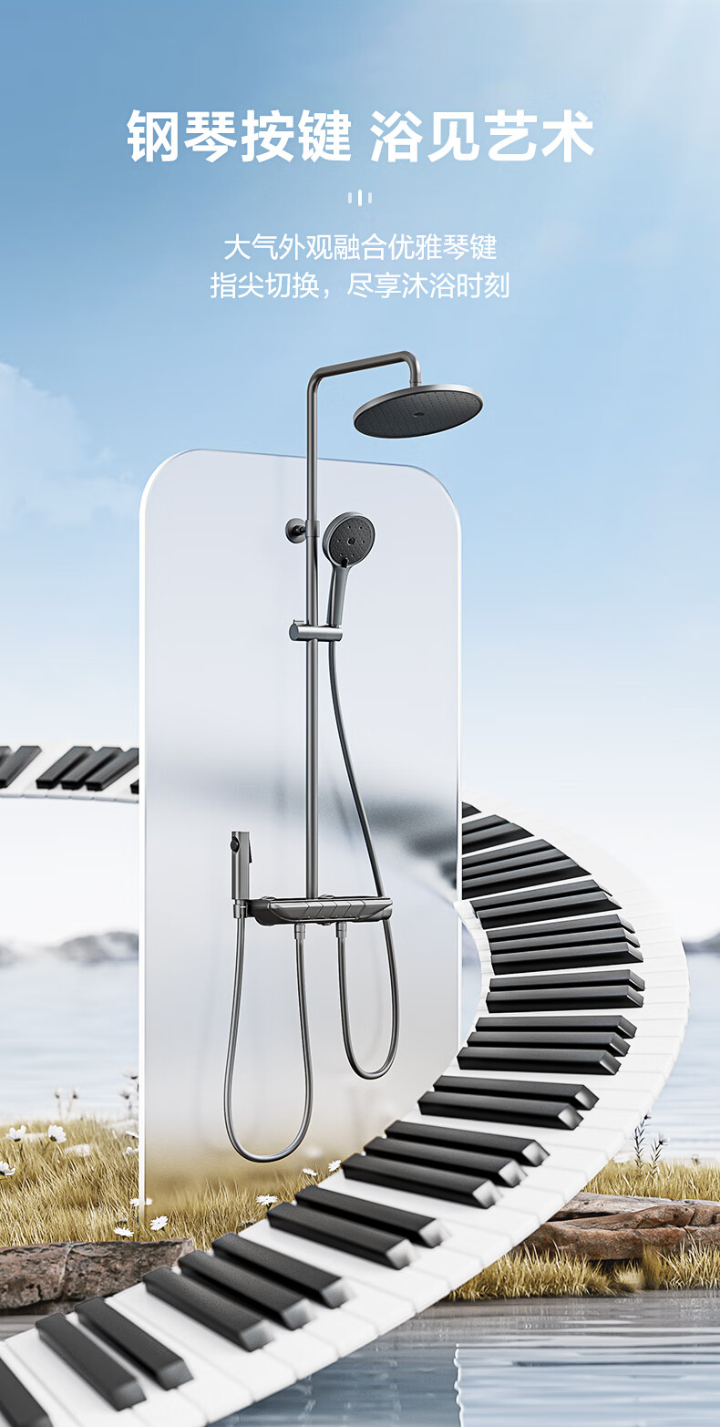 恒洁(HEGII) 淋浴花洒套装 智能除垢大顶喷置物平台多功能可升降花洒全套 【自动除垢方顶喷-银色】HMF936-333