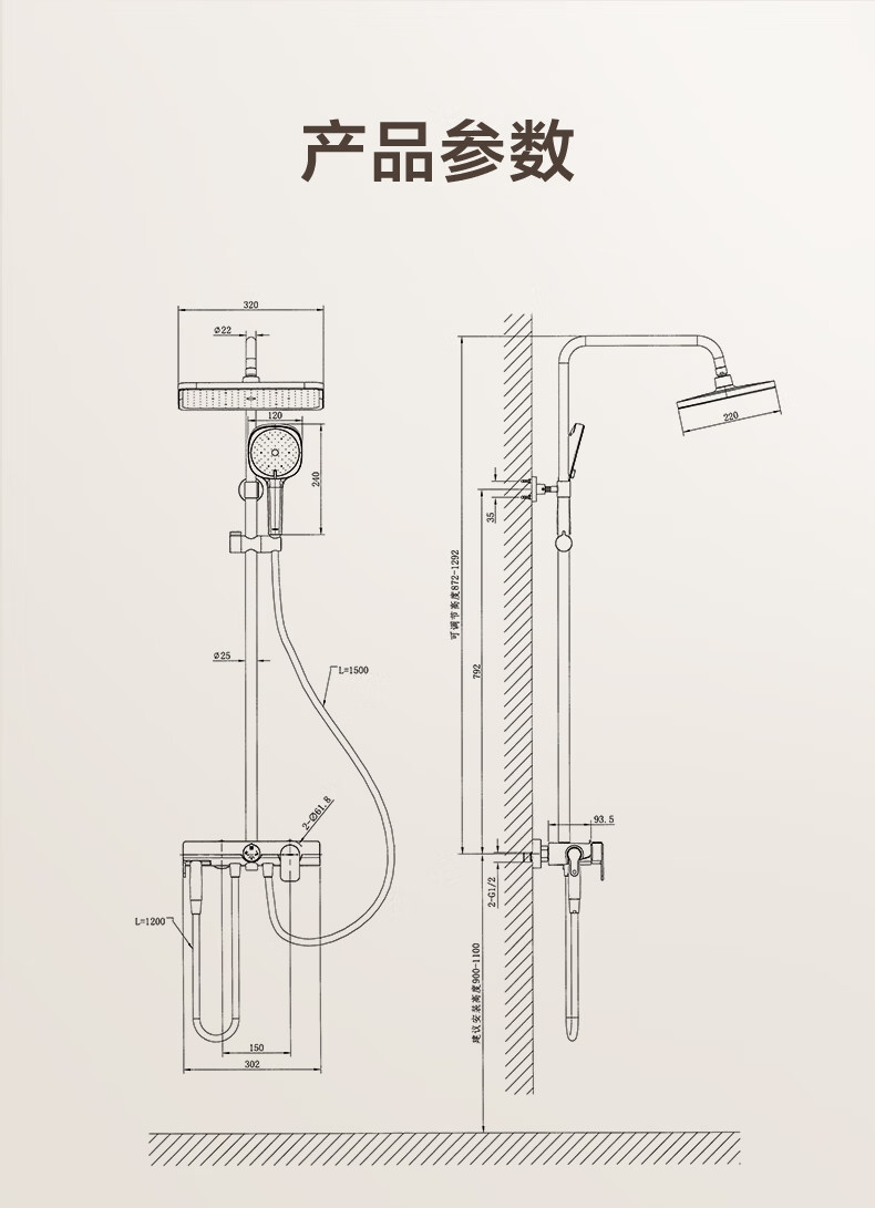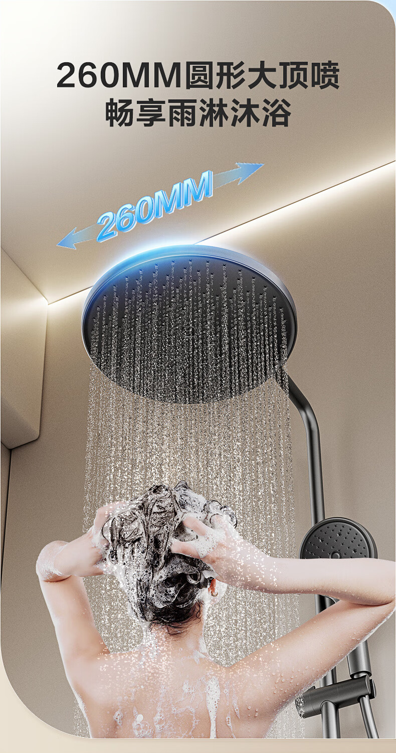 箭牌(ARROW)淋浴花洒套装硅胶除垢增压莲喷头升级下出水洗澡沐浴手持顶喷全套 K100哑白巨幕花洒AE34168MMW