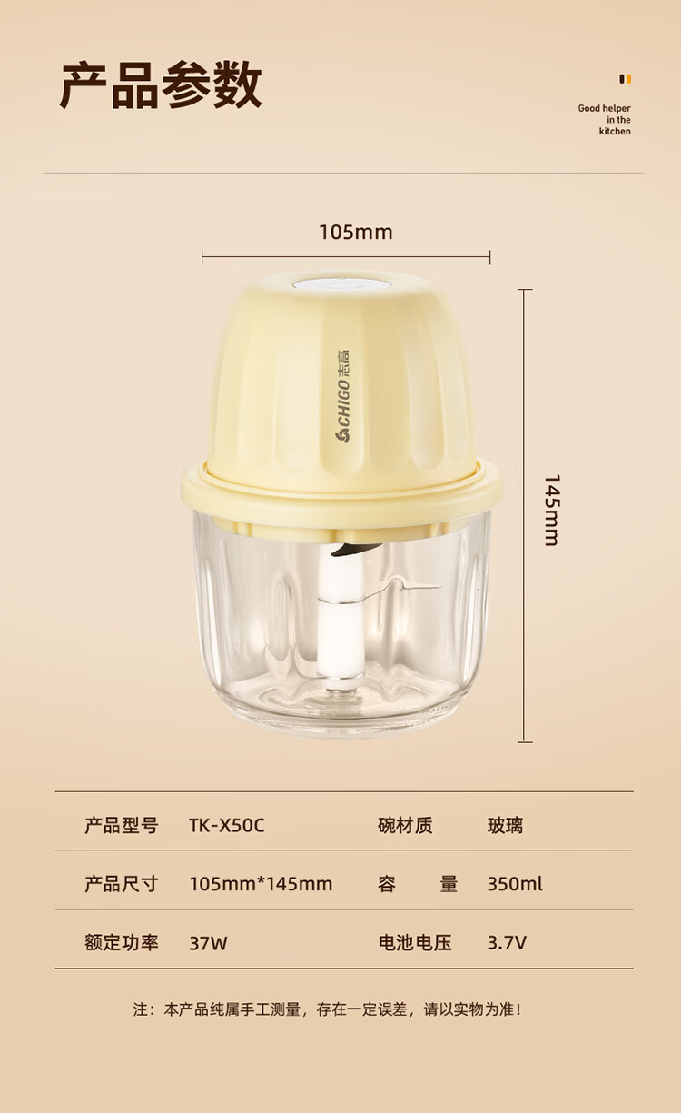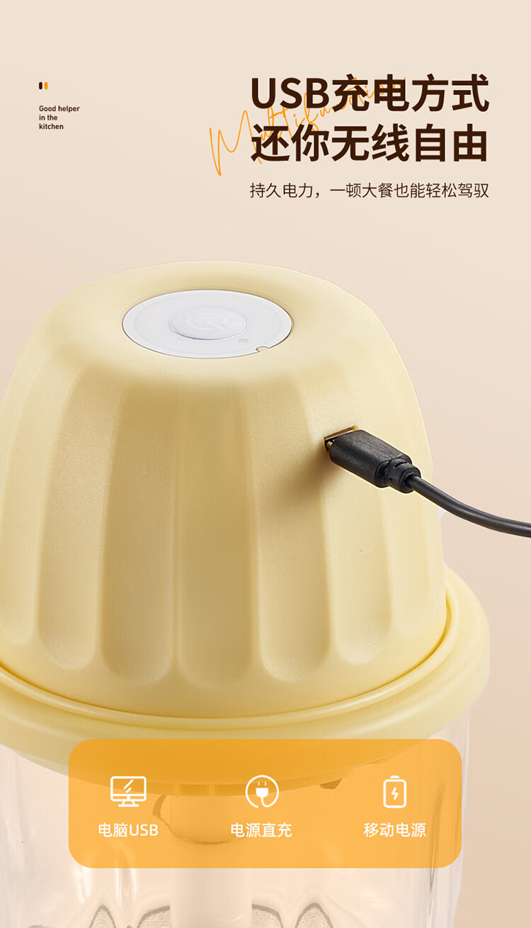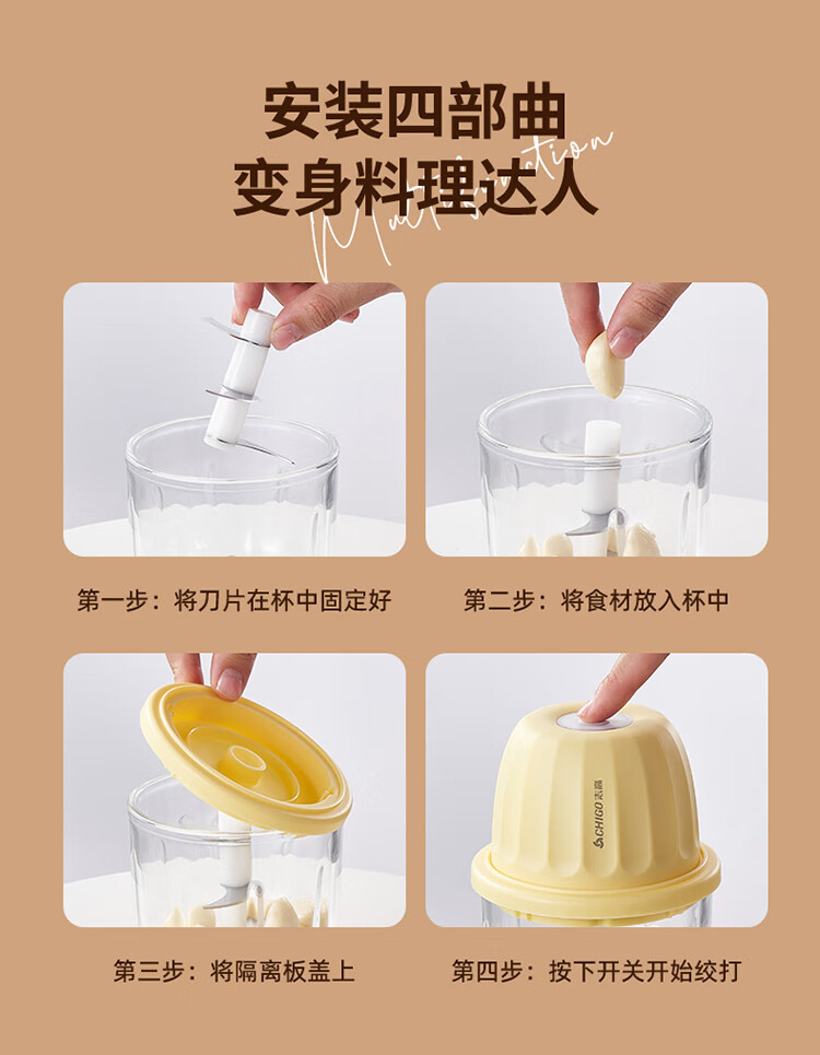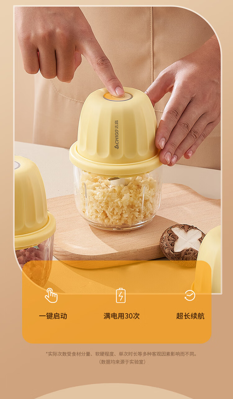 志高(CHIGO)家用辅食机婴儿 捣蒜器蒜泥 捣碎器绞馅机 搅拌机碎肉机辅食料理机 TK-X50C黄色