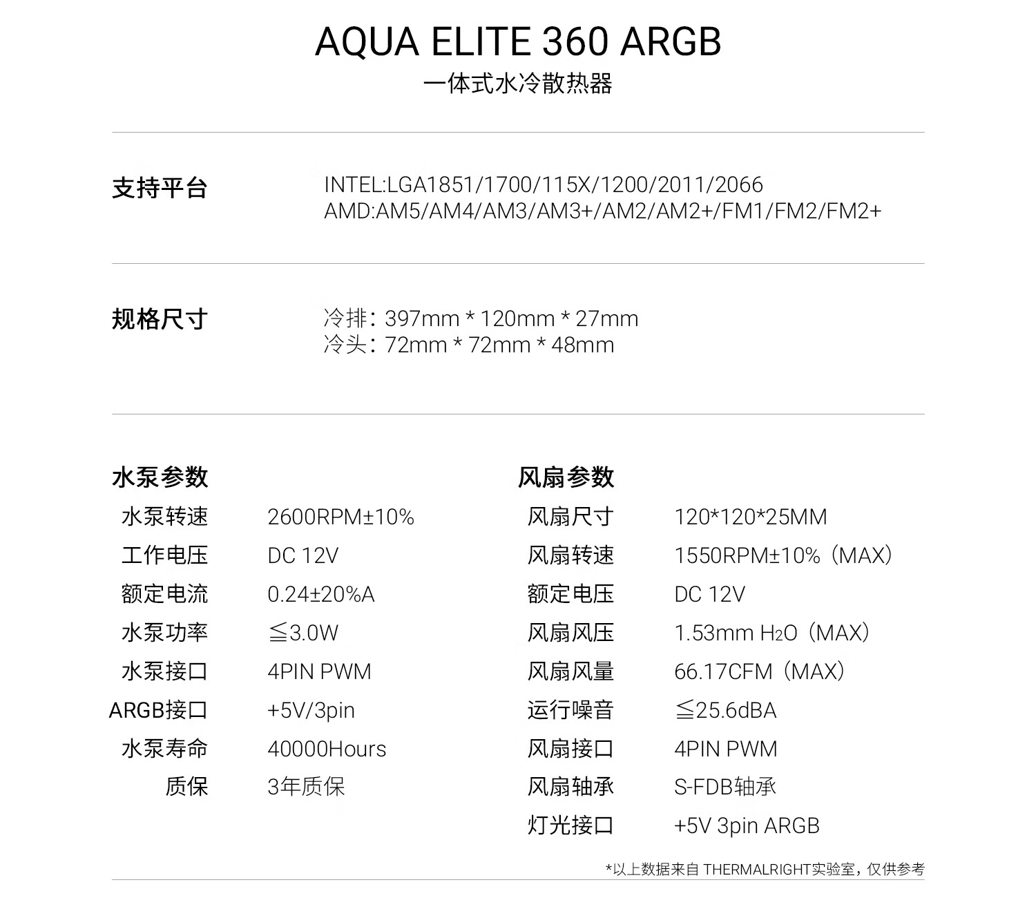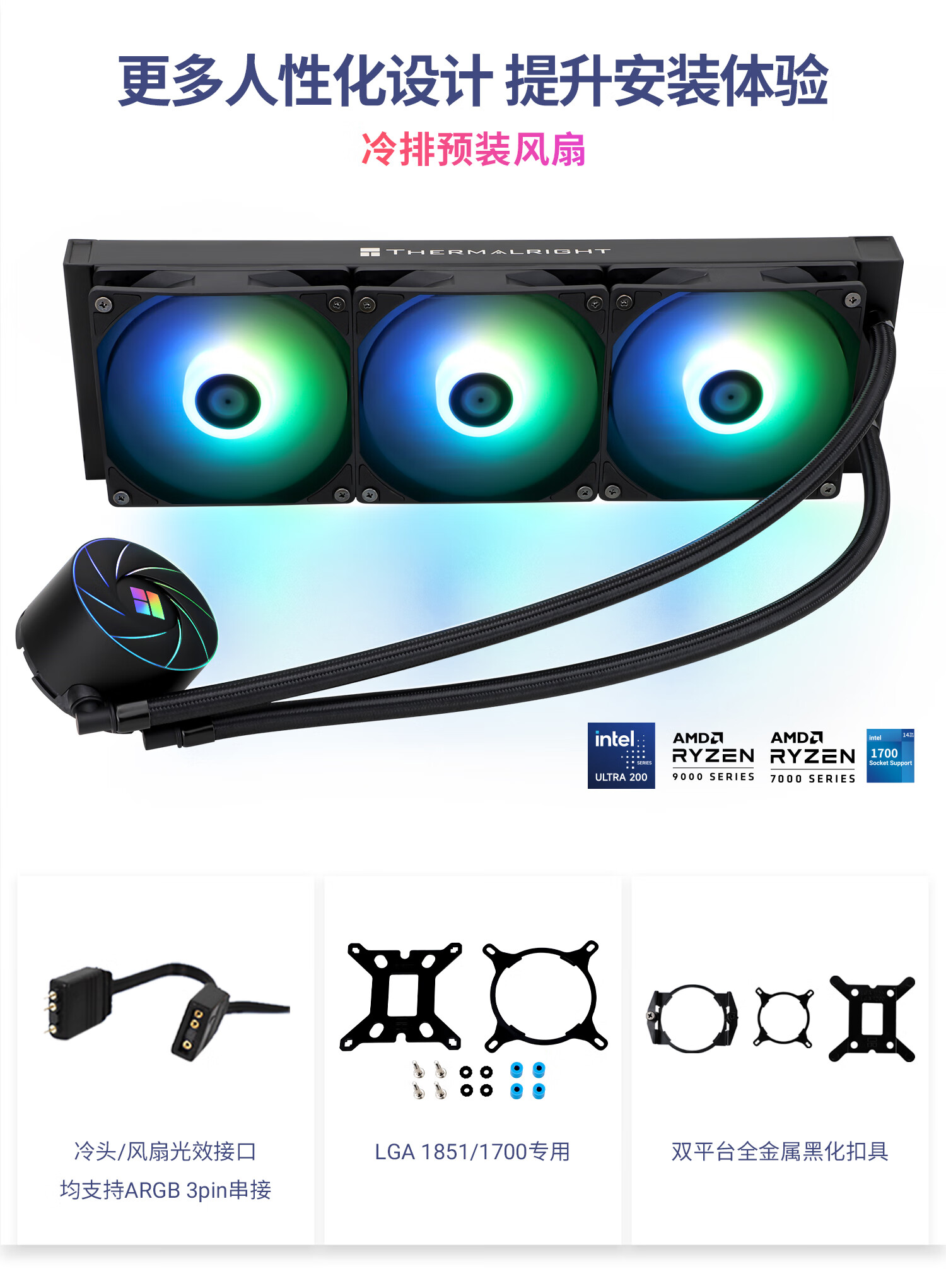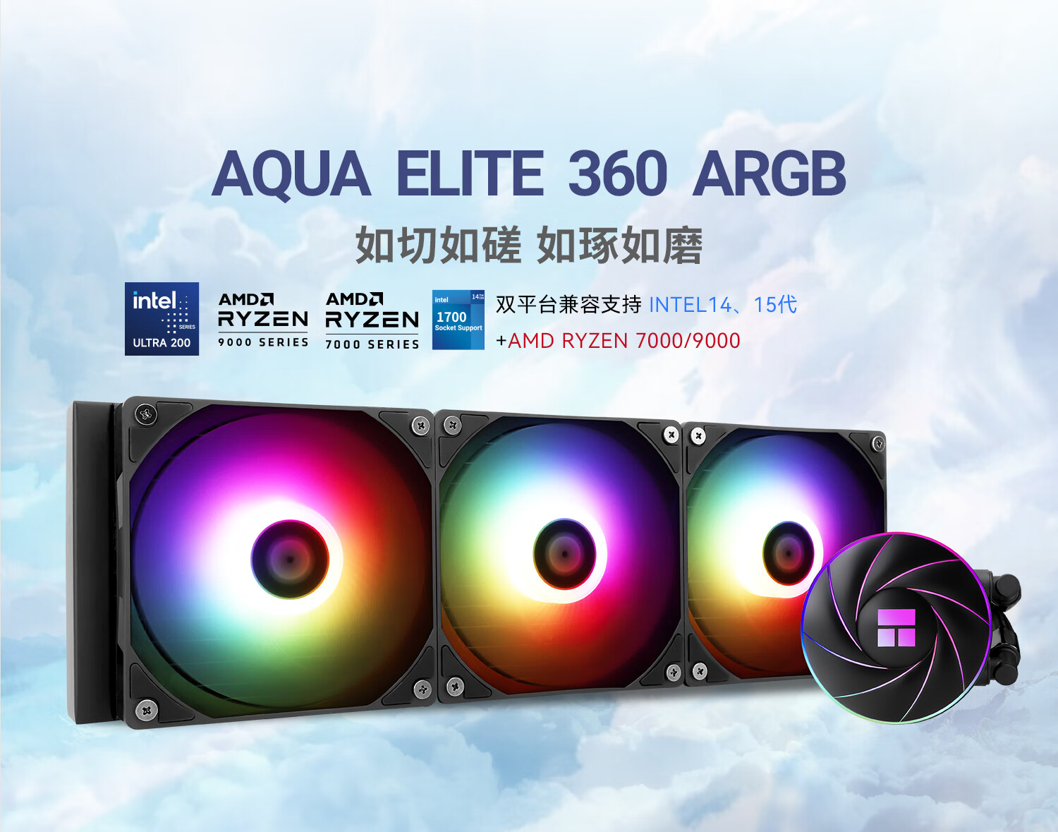 利民(thermalright)AQUA ELITE 360 ARGB 一体式水冷散热器日蚀幻彩光效 全金属扣具ARGB冷头 AE360 ARGB