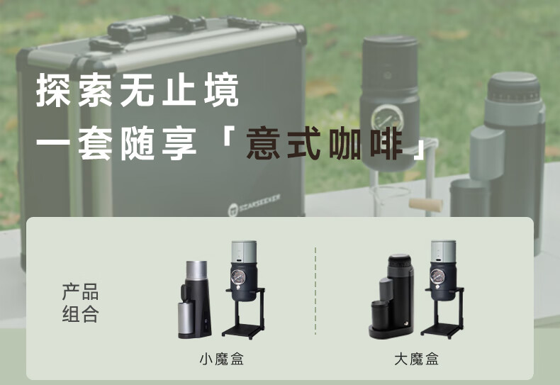 STARSEEKER探索者Super58便携式咖啡机家用小型意式浓缩半自动咖啡机可调压力58MM萃取办公室户外露营 【便携式专业咖啡机】黑色