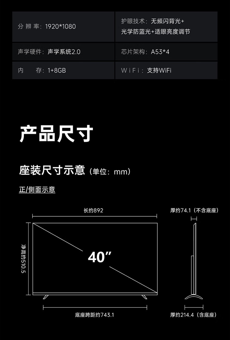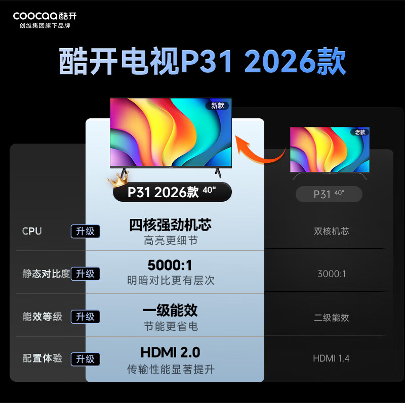 酷开(coocaa)创维电视P31 26款 40英寸电视全高清超薄全面屏 护眼防蓝光智能液晶电视机以旧换新 40P3F 40英寸
