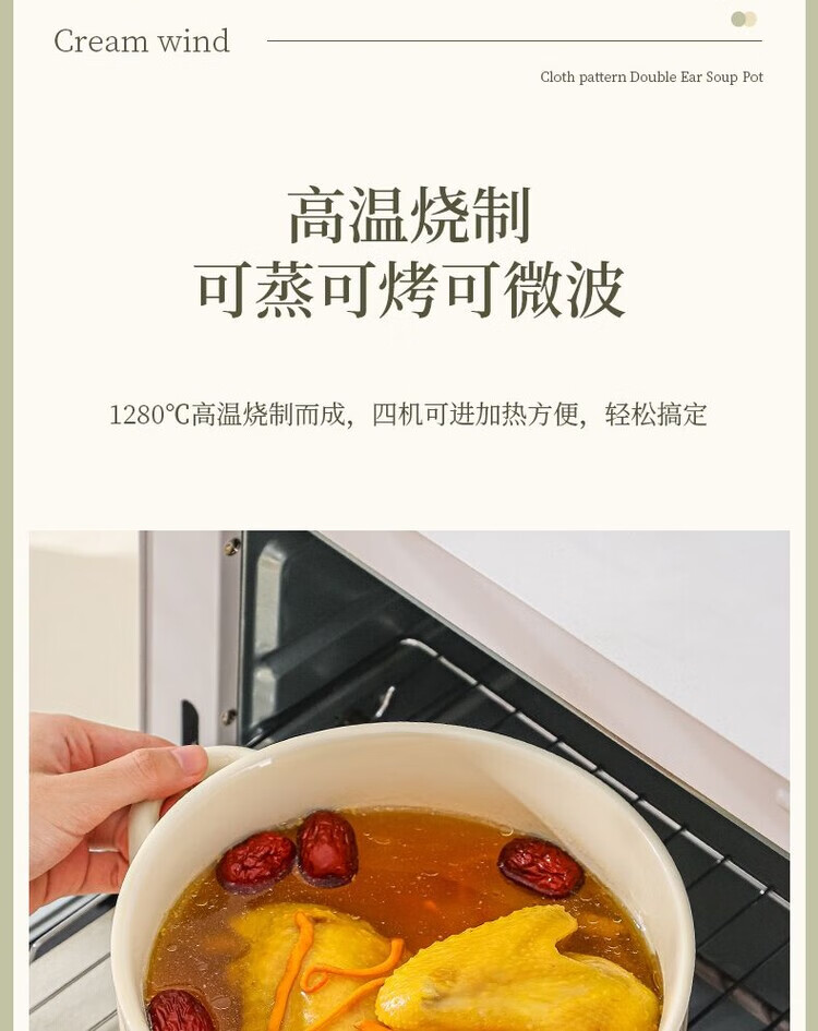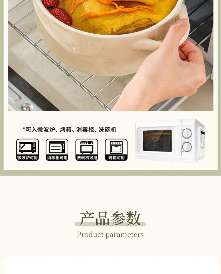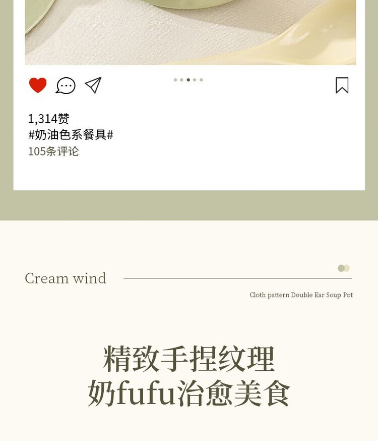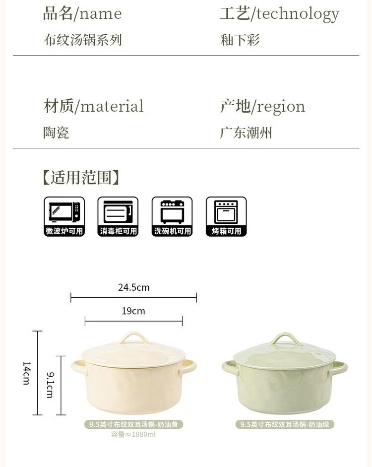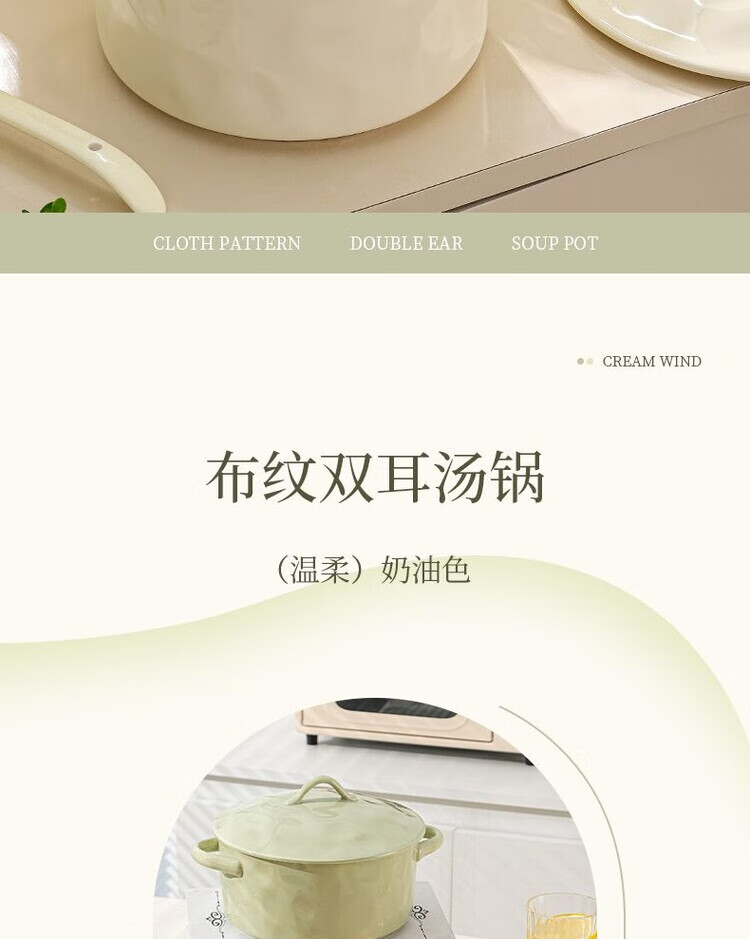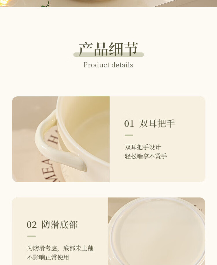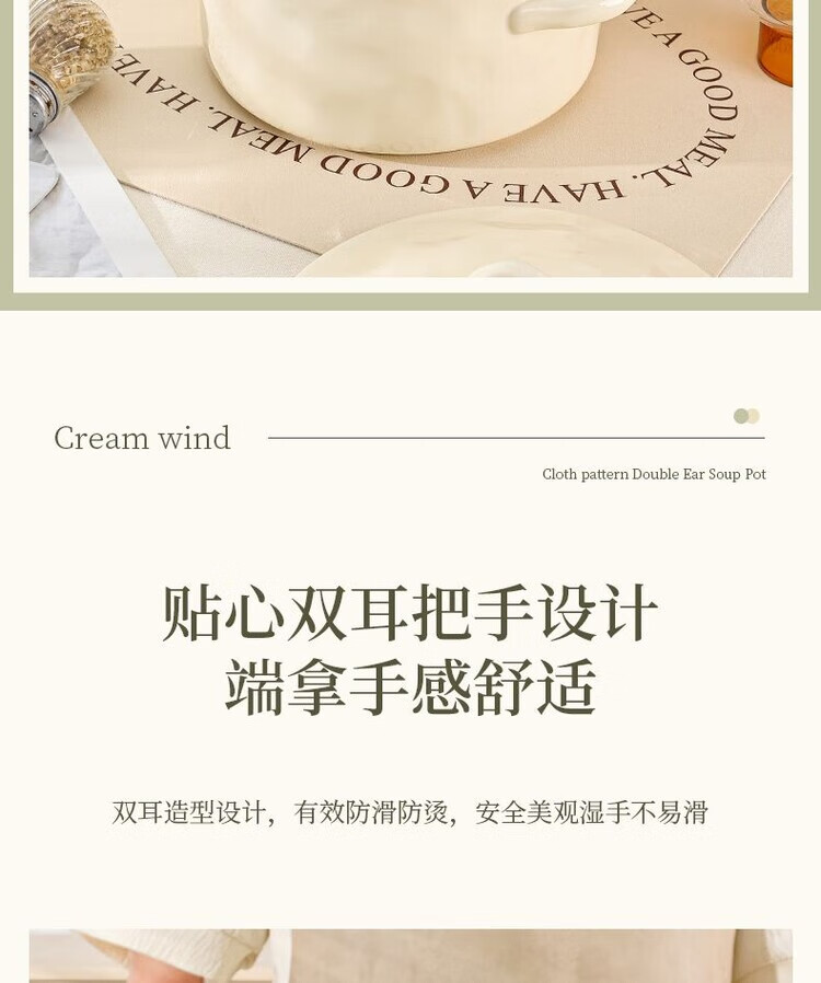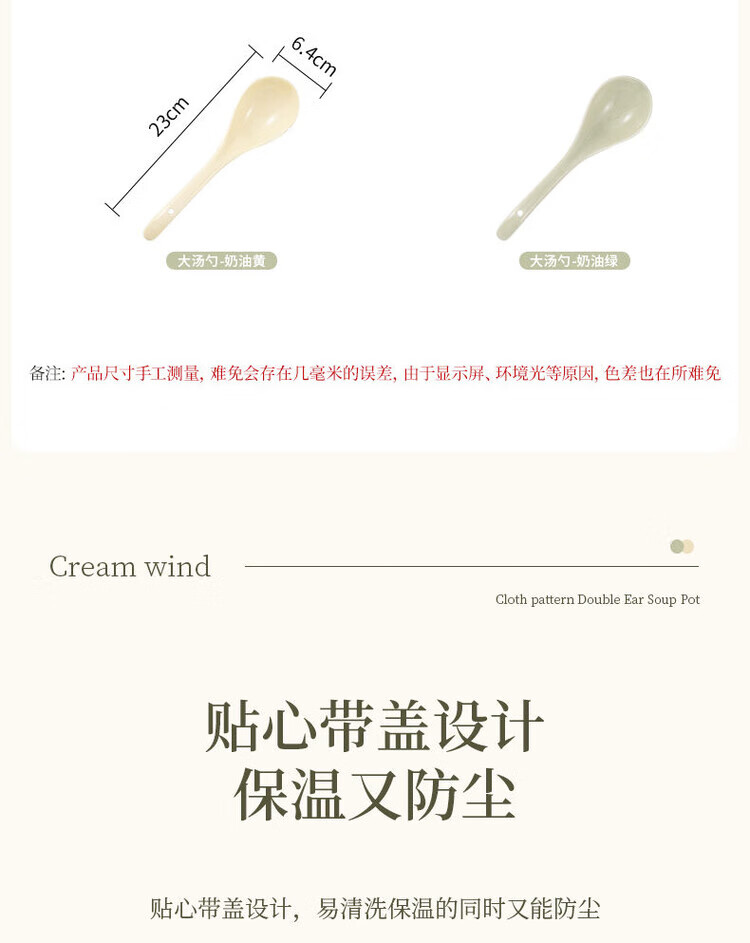 简漾奶油风大碗高颜值轻奢陶瓷双耳汤碗家用带盖大容量酸菜鱼煲汤碗 奶绿/7.5英寸 1cm