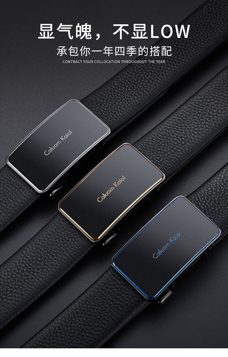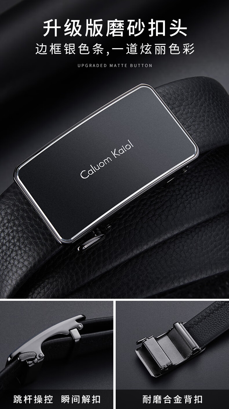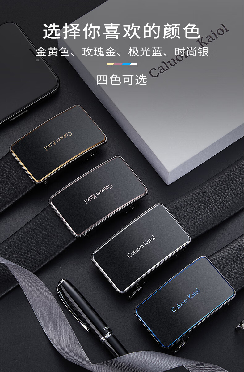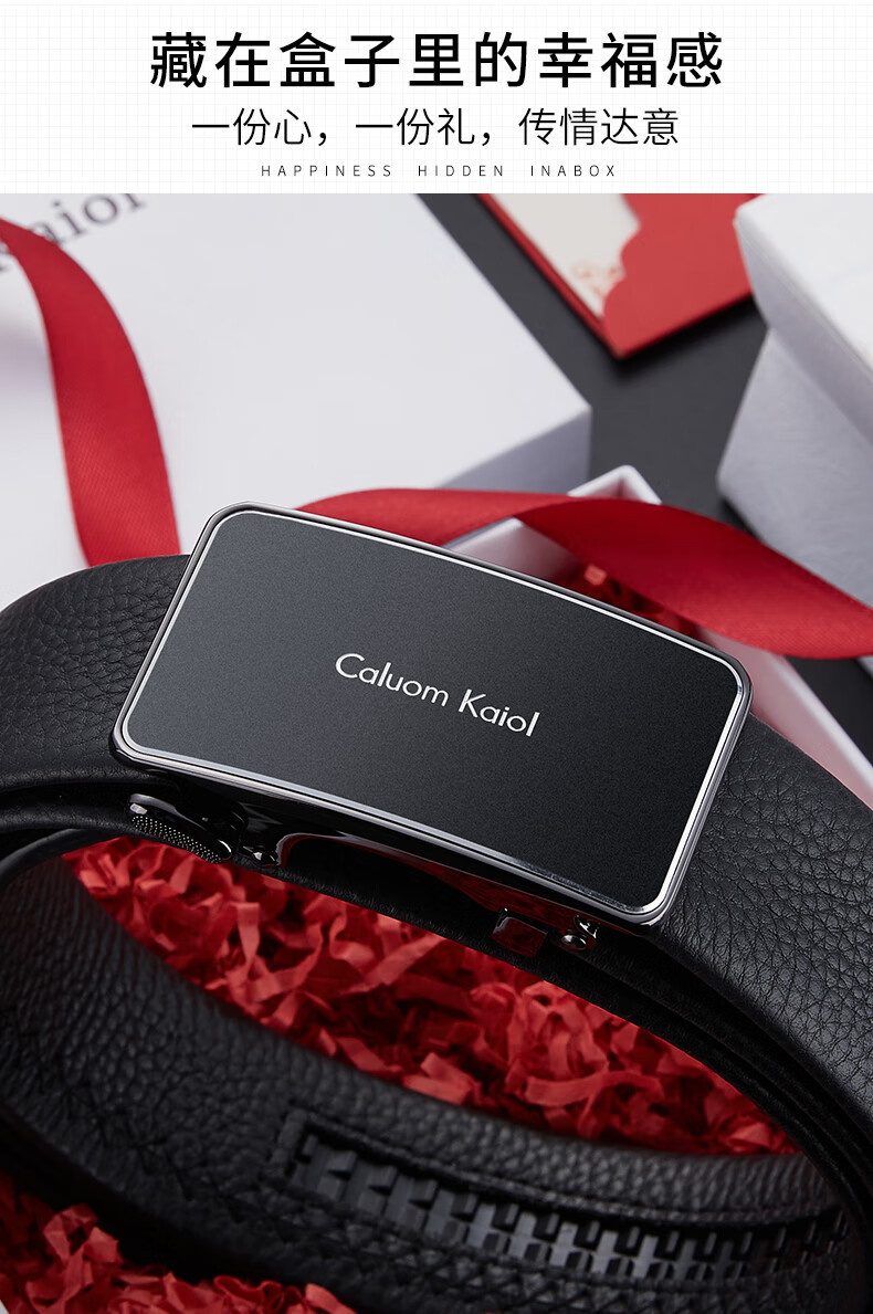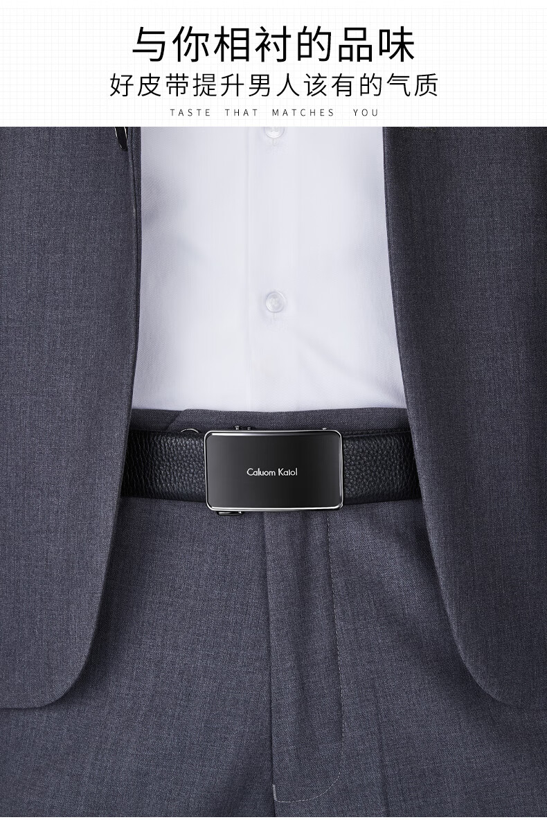 Caluom Kaiol品牌皮带男真皮男士腰带牛皮自动扣商务裤带圣诞礼物送男友老公 【专柜礼盒】8037A银色/内穿式 110cm -130cm默认随机(可修剪)需要其他尺码联系客服