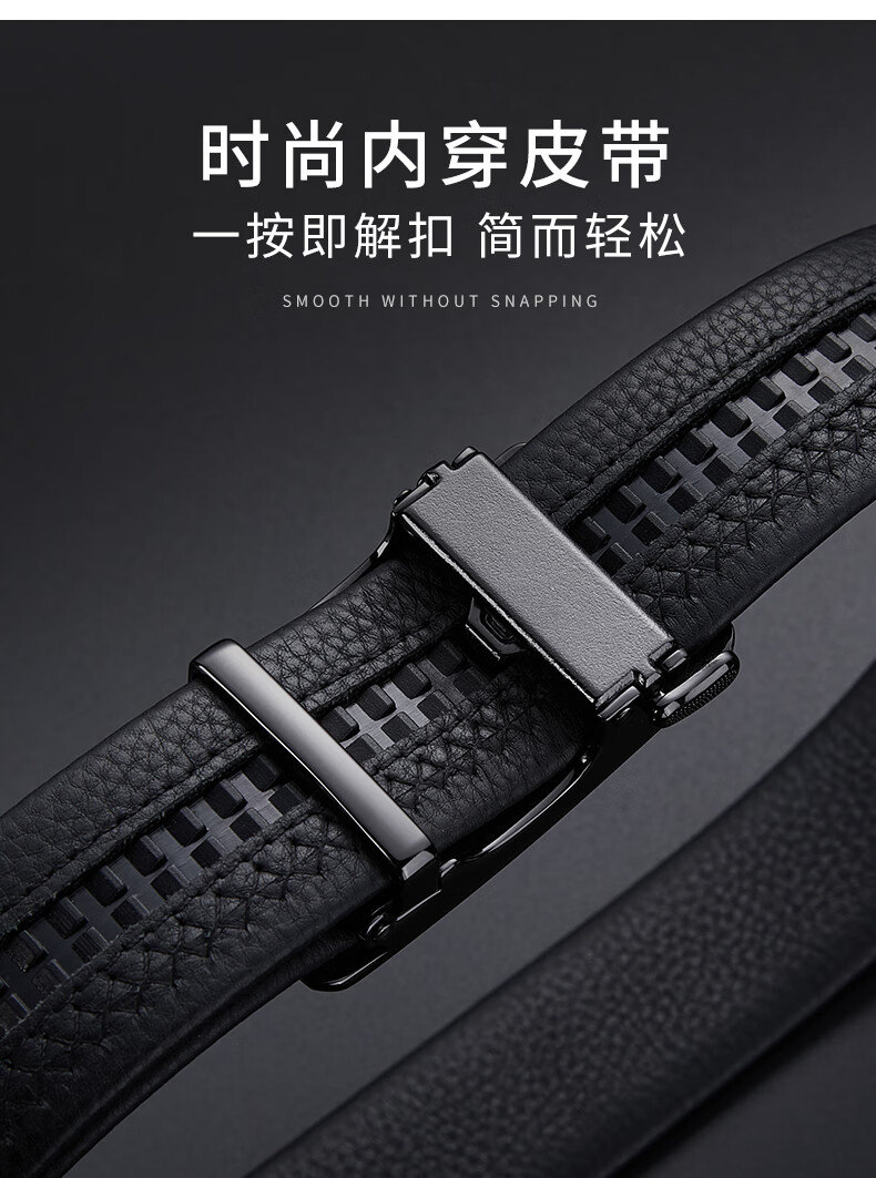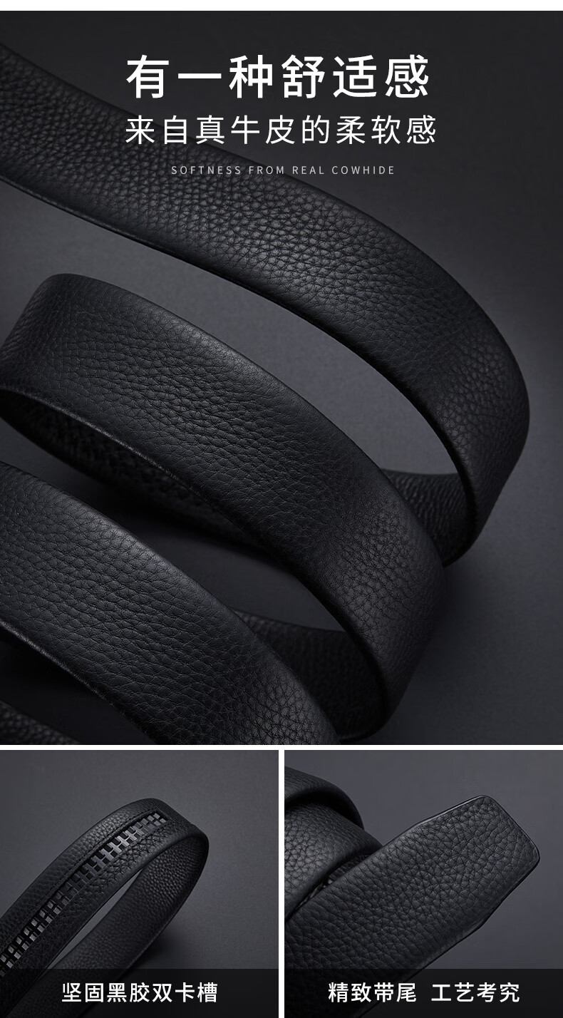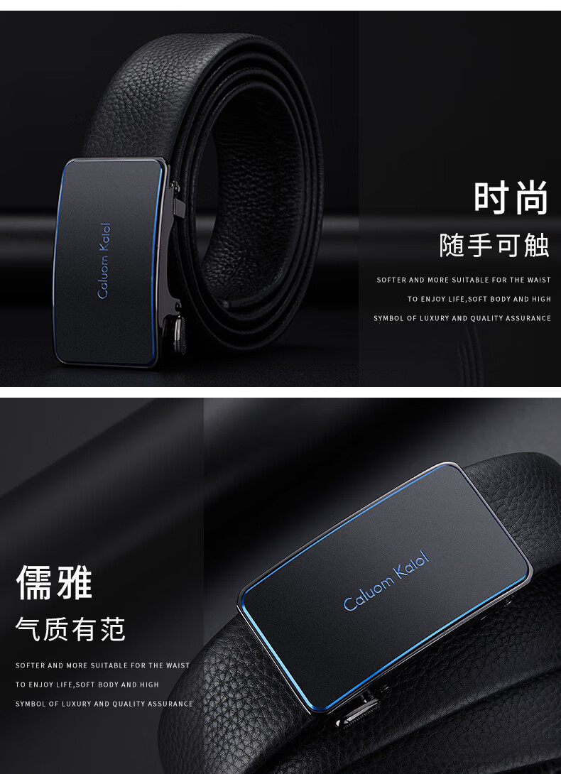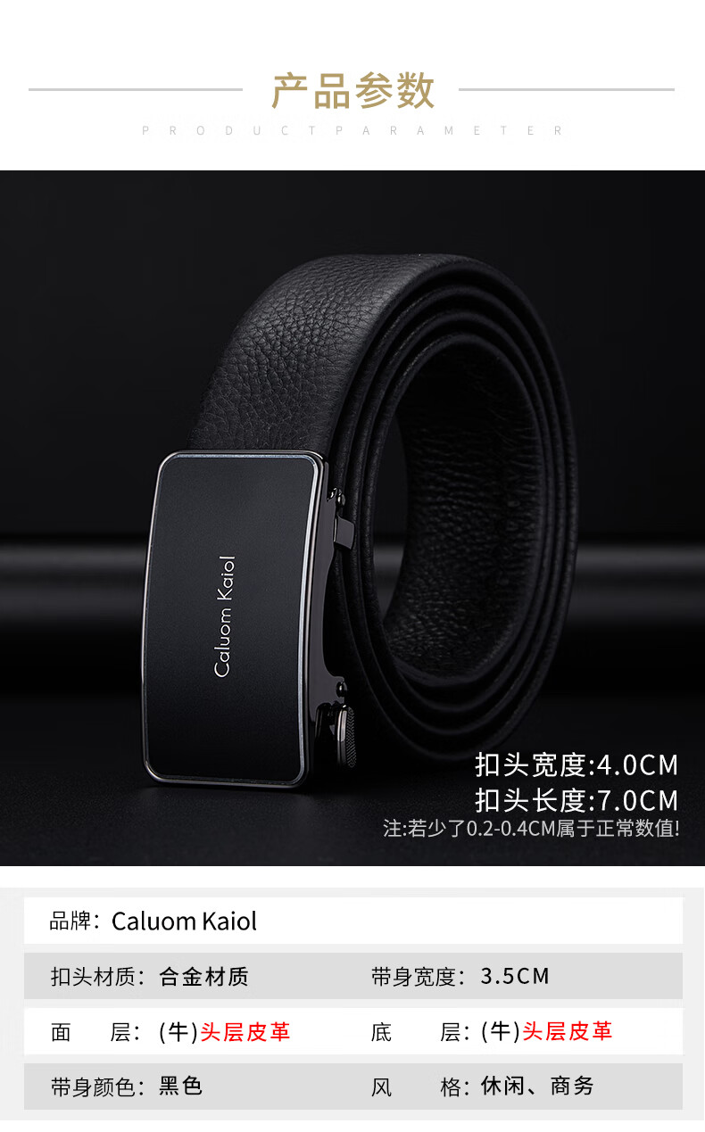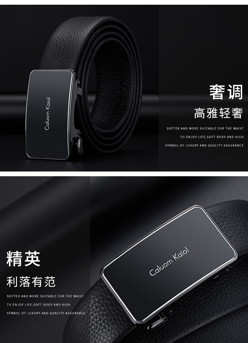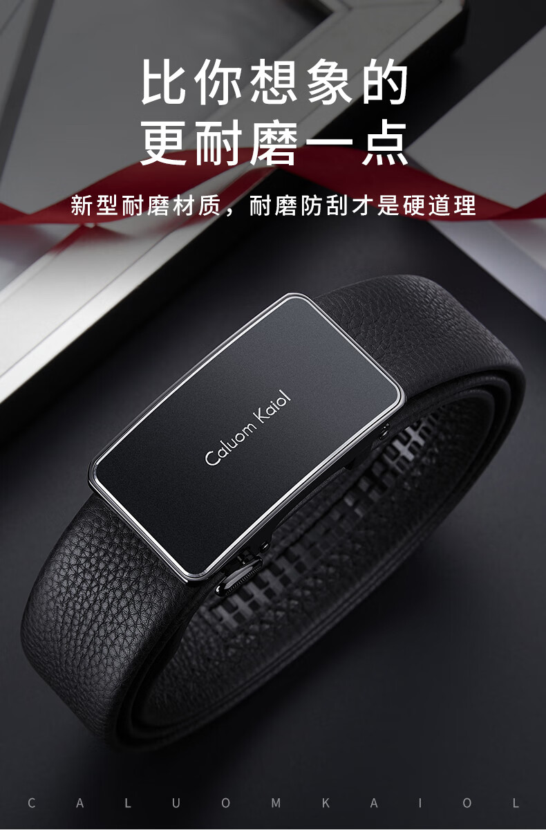 Caluom Kaiol品牌皮带男真皮男士腰带牛皮自动扣商务裤带圣诞礼物送男友老公 【专柜礼盒】8037A银色/内穿式 110cm -130cm默认随机(可修剪)需要其他尺码联系客服