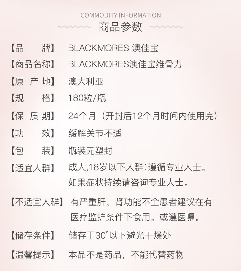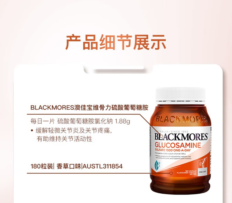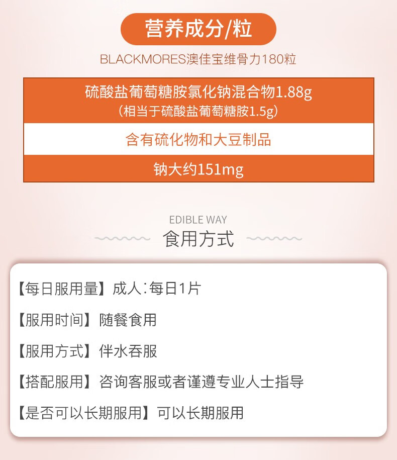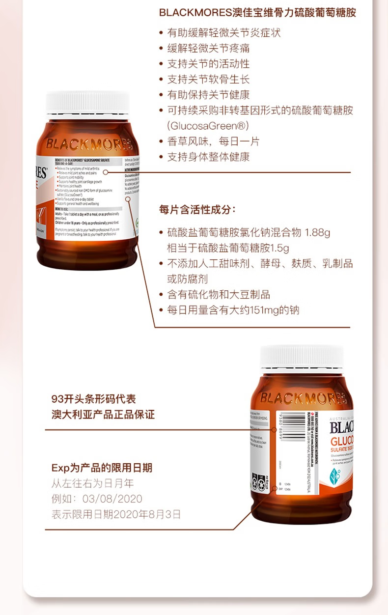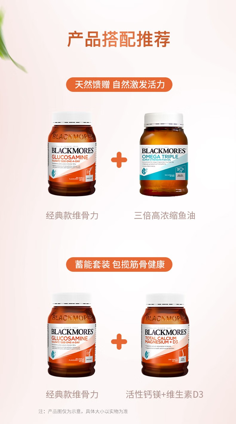 澳佳宝Blackmores氨糖维骨力高浓度1500mg180粒澳洲进口有效期27年初 氨糖维骨力180粒*1瓶