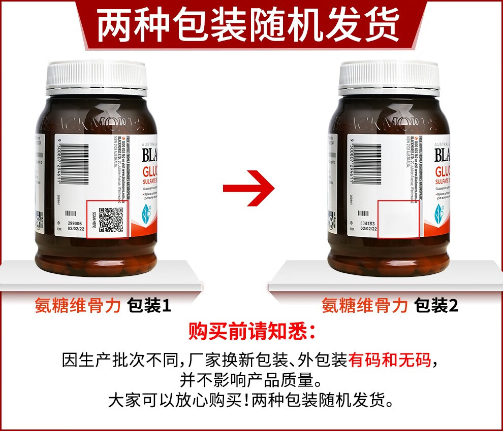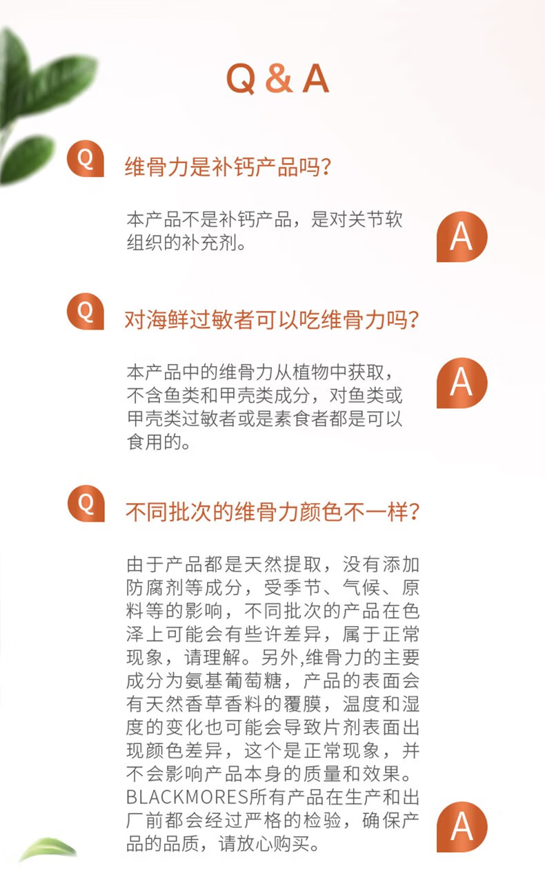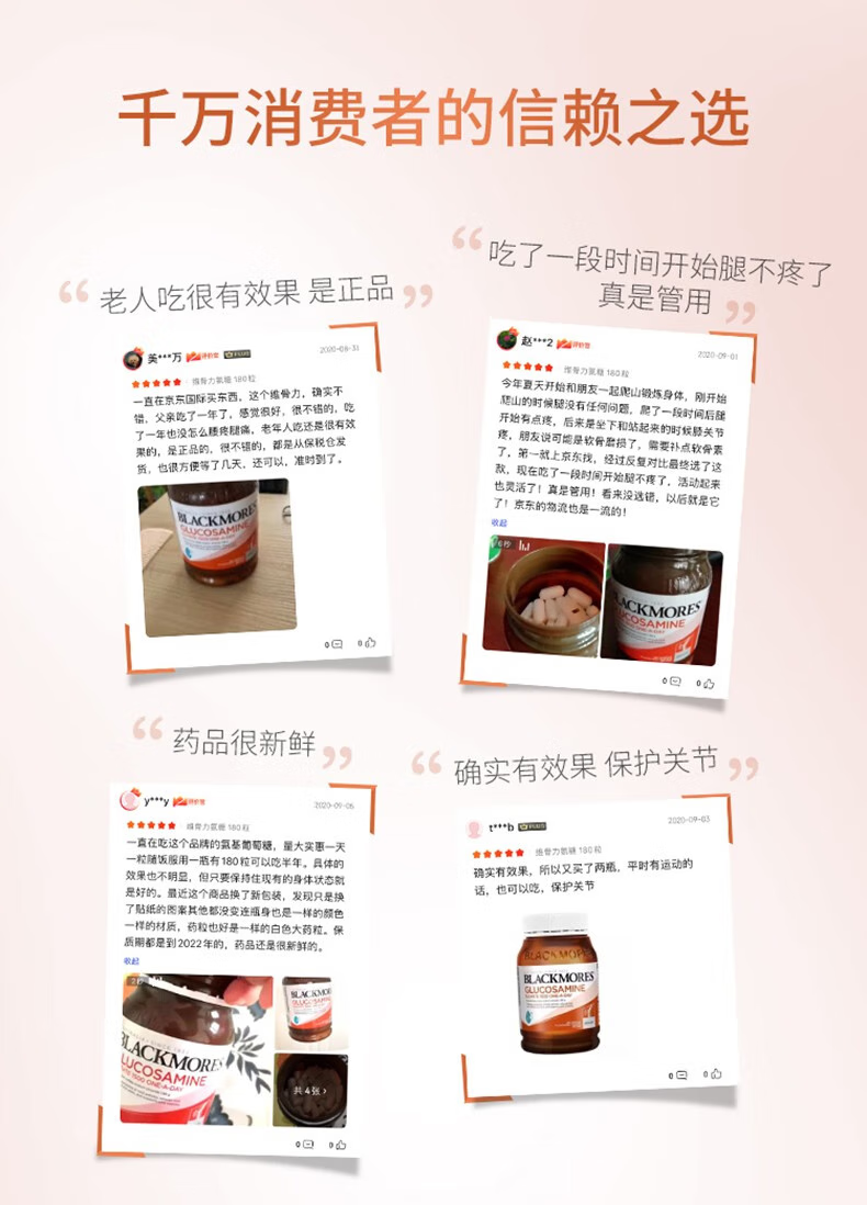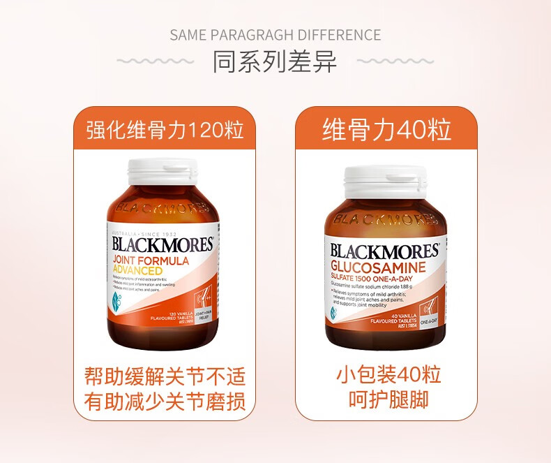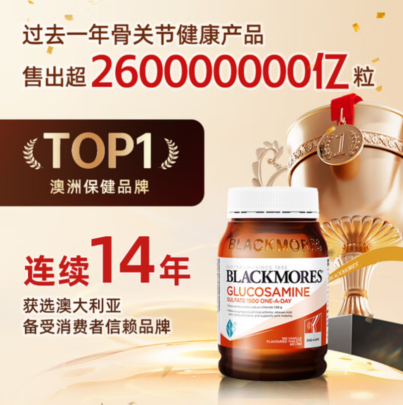 澳佳宝Blackmores氨糖维骨力高浓度1500mg180粒澳洲进口有效期27年初 氨糖维骨力180粒*1瓶