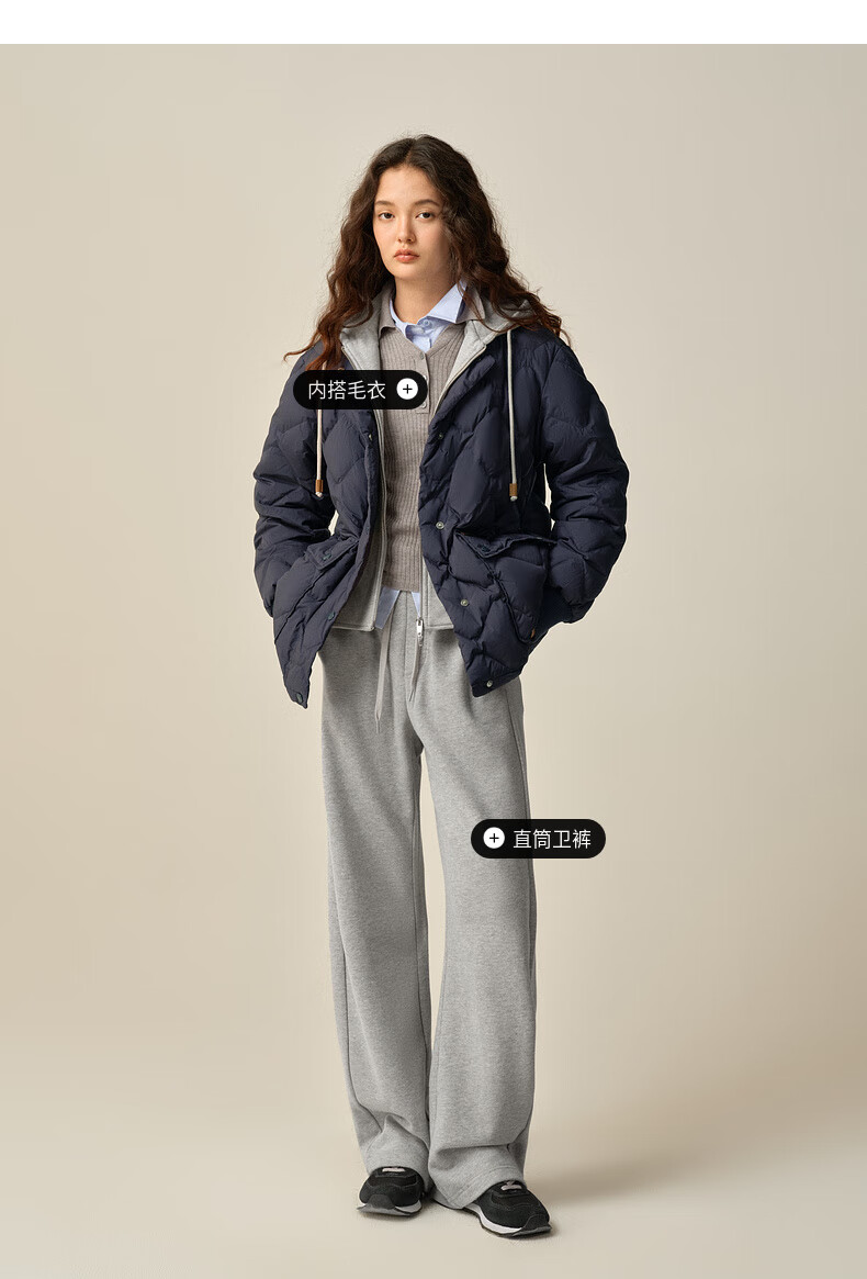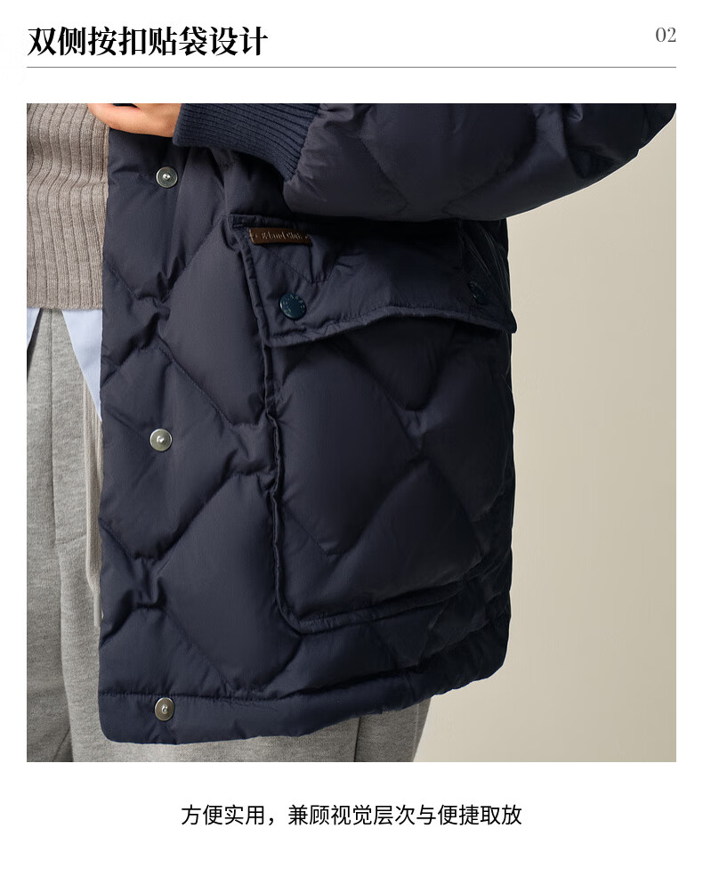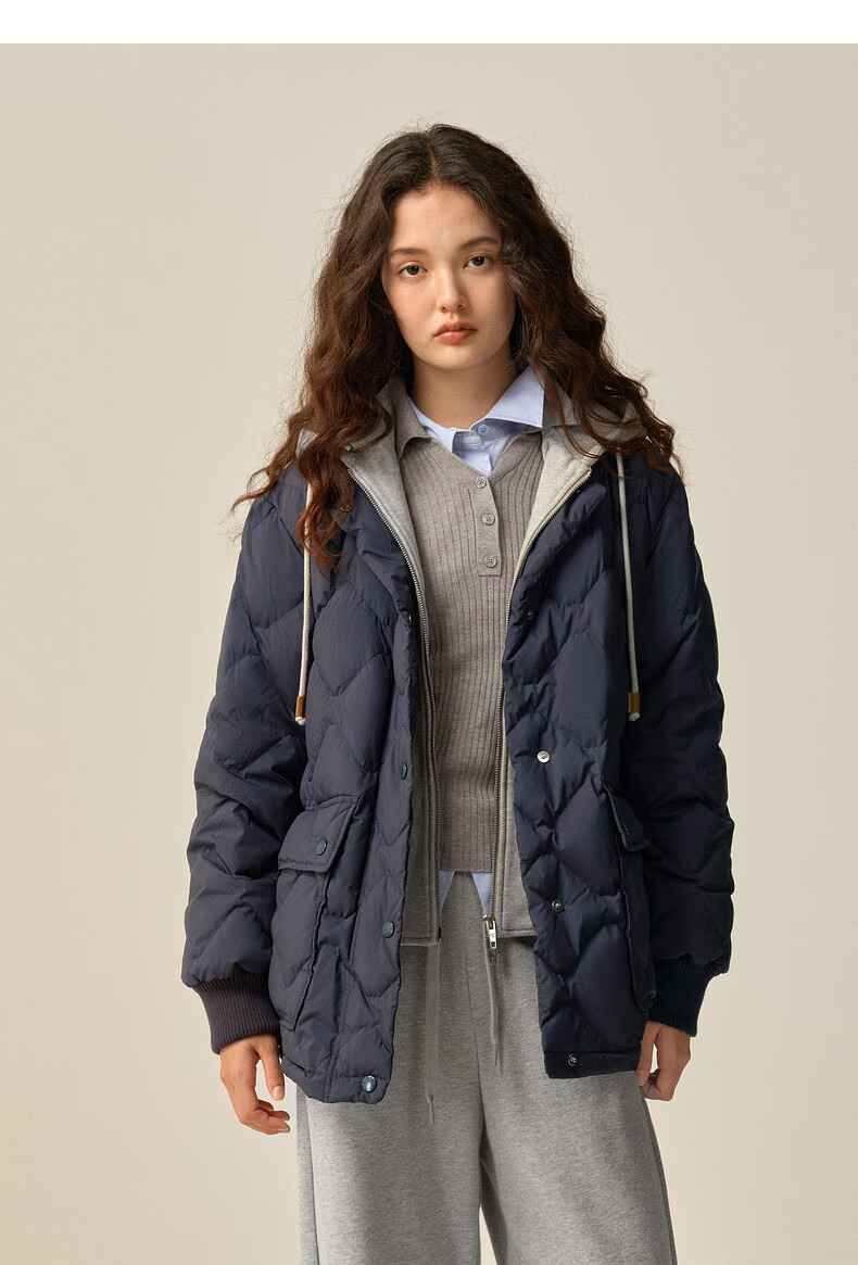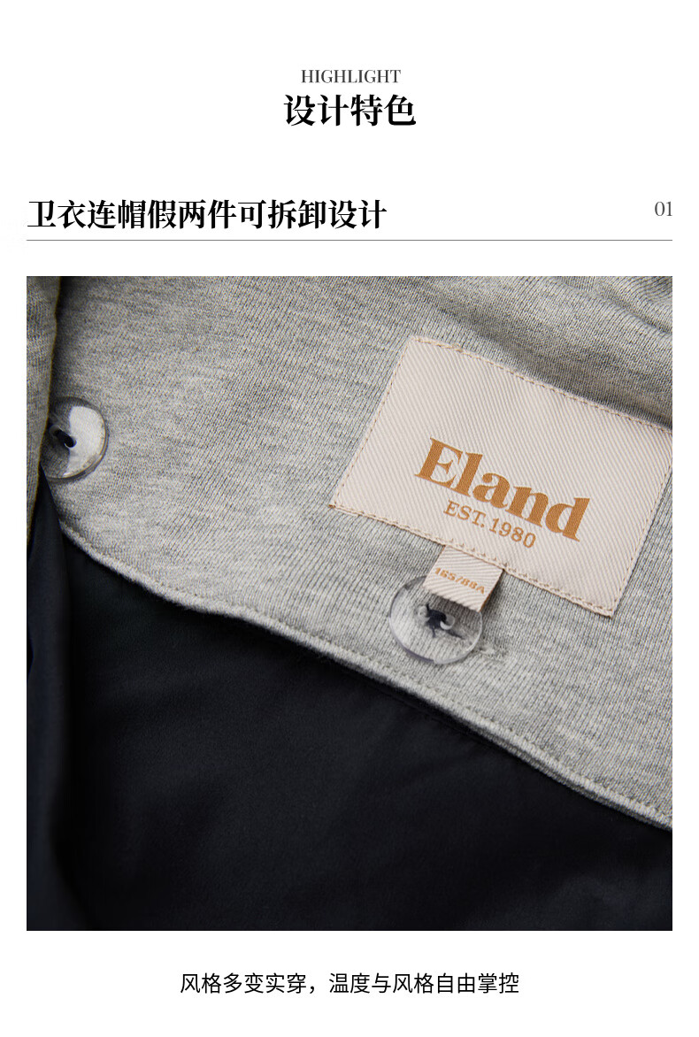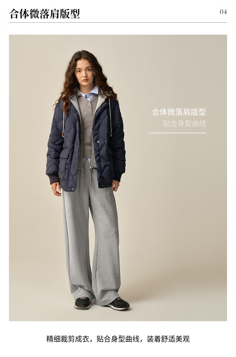 ELAND衣恋羽绒服女单排扣鸭绒户外休闲外套2025冬季新款 藏青色(59)Navy M /165