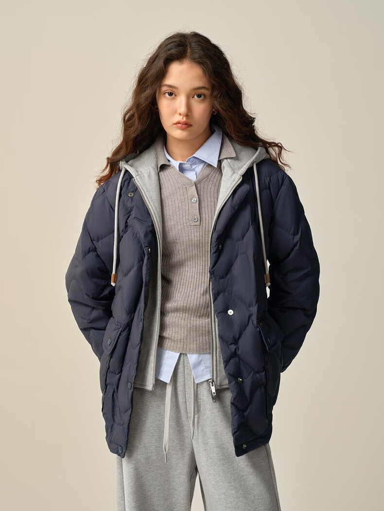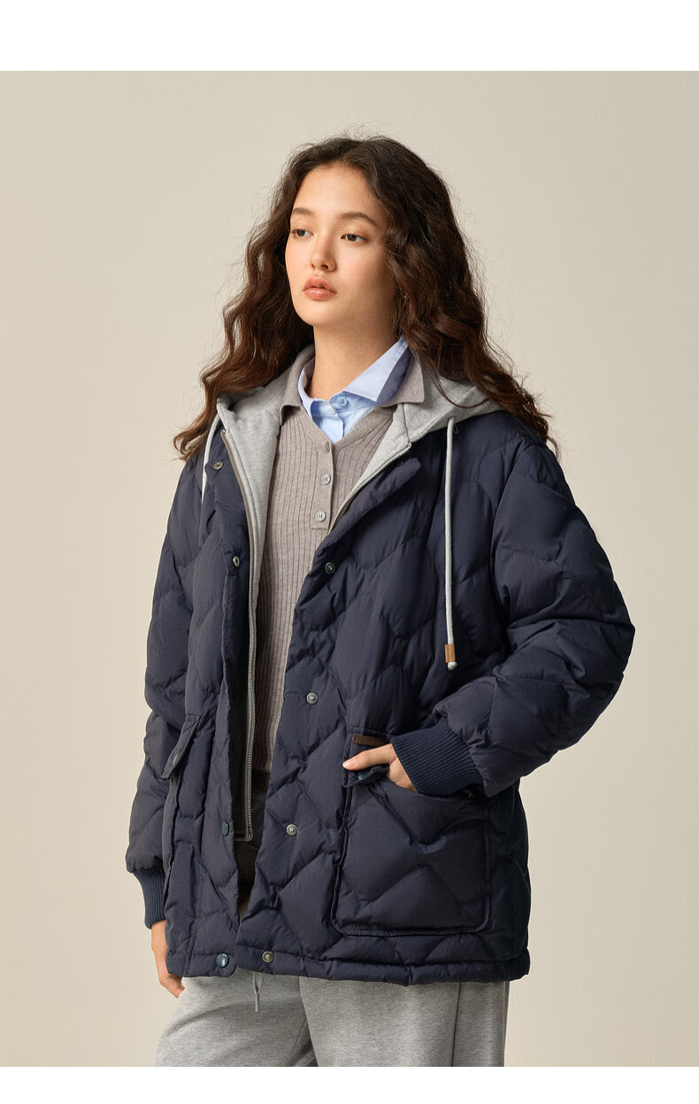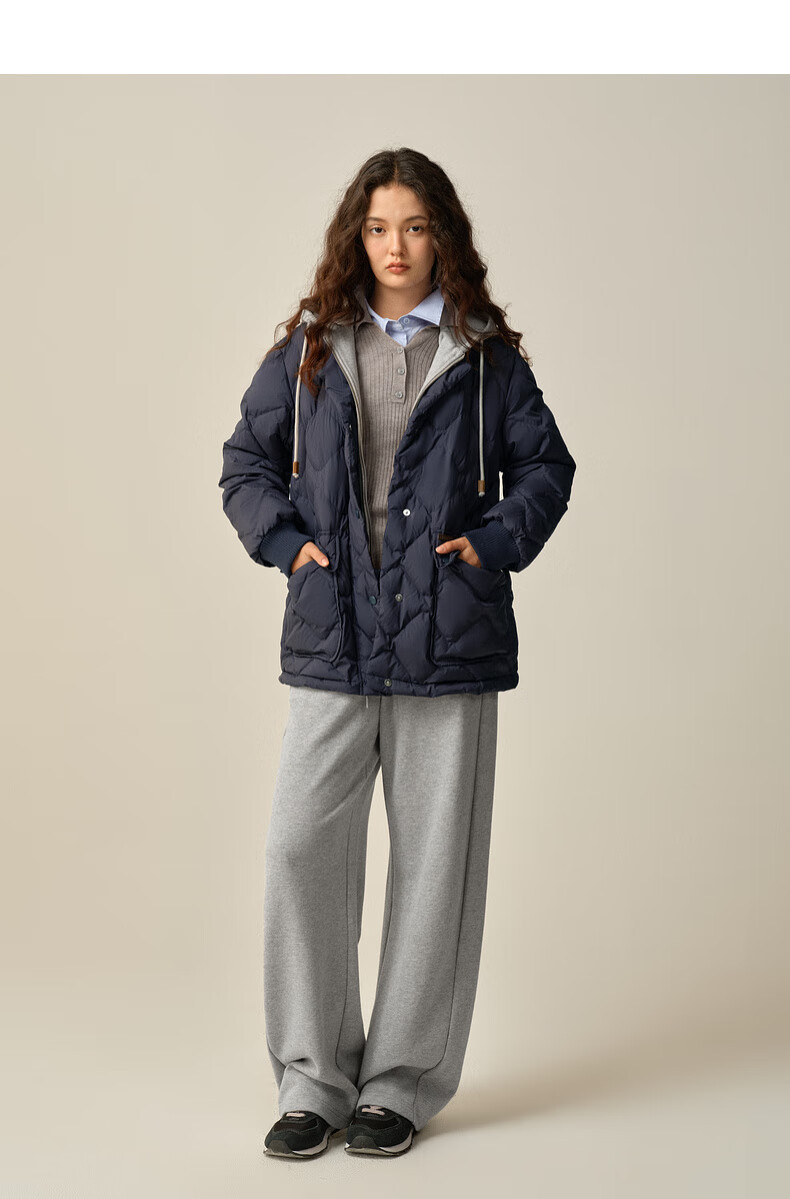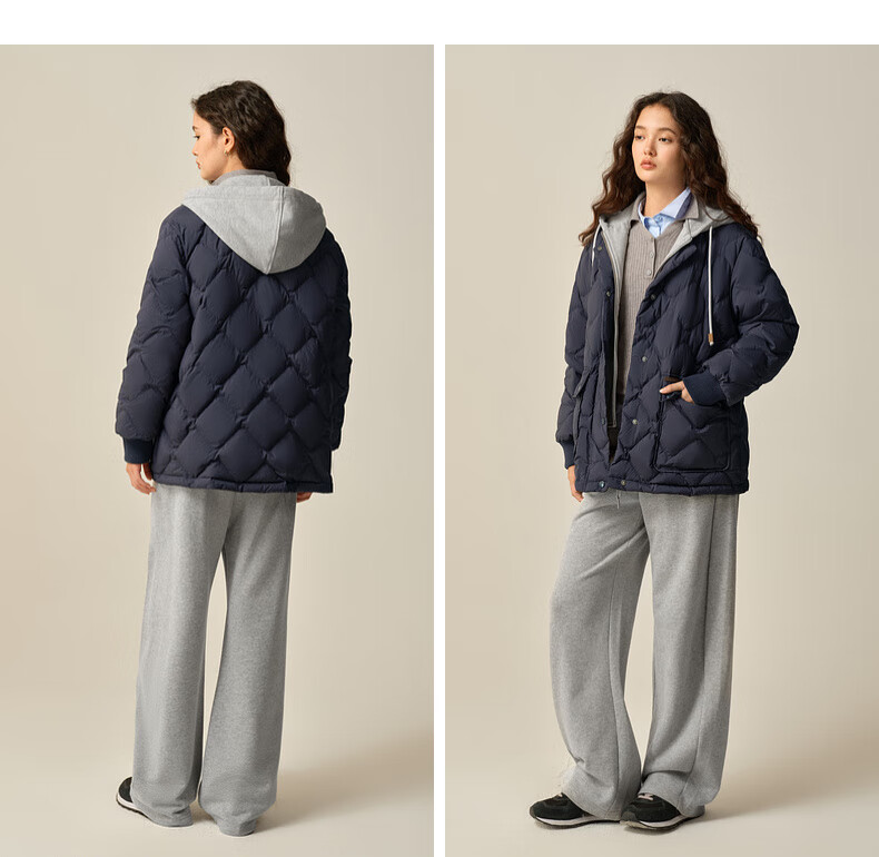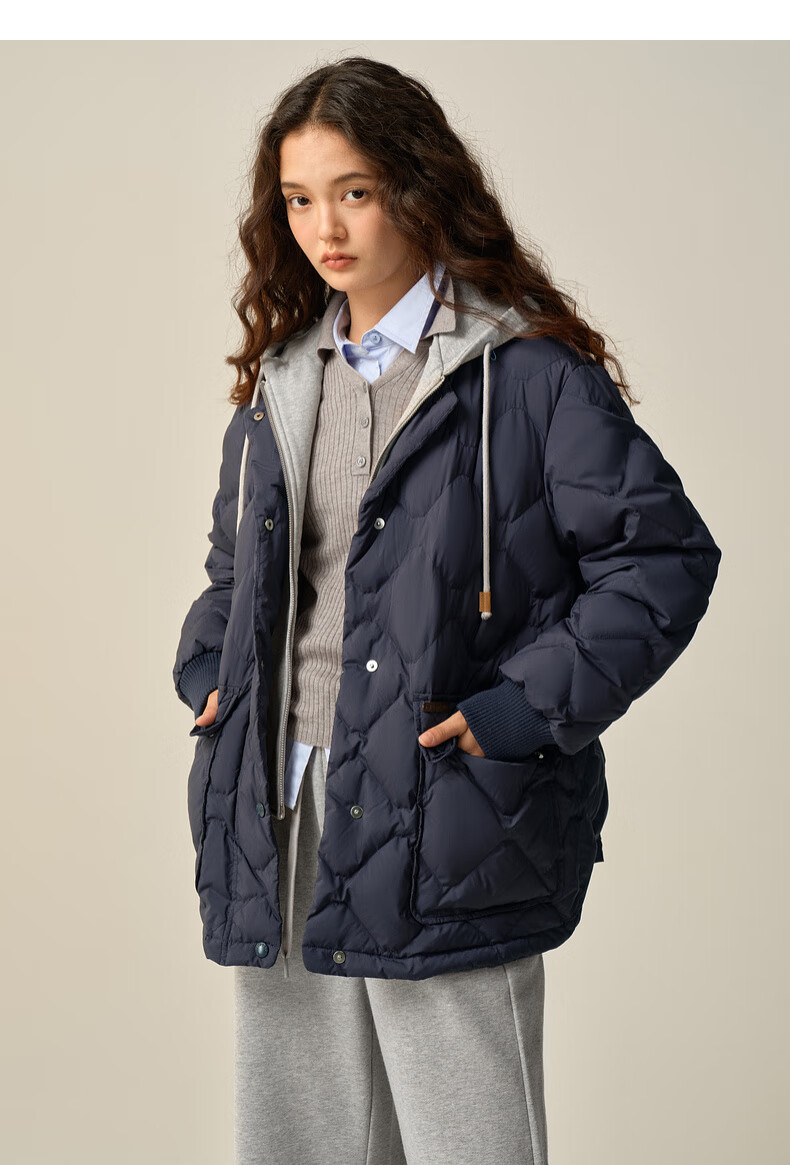 ELAND衣恋羽绒服女单排扣鸭绒户外休闲外套2025冬季新款 藏青色(59)Navy M /165