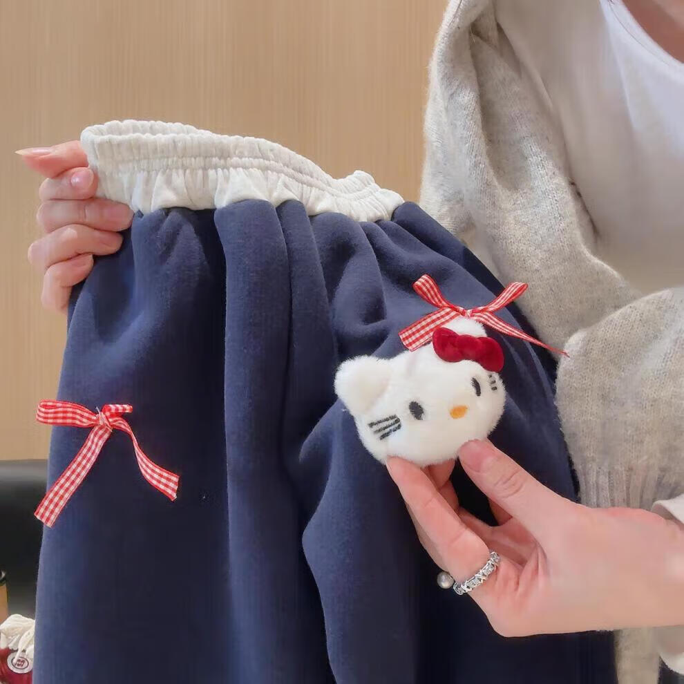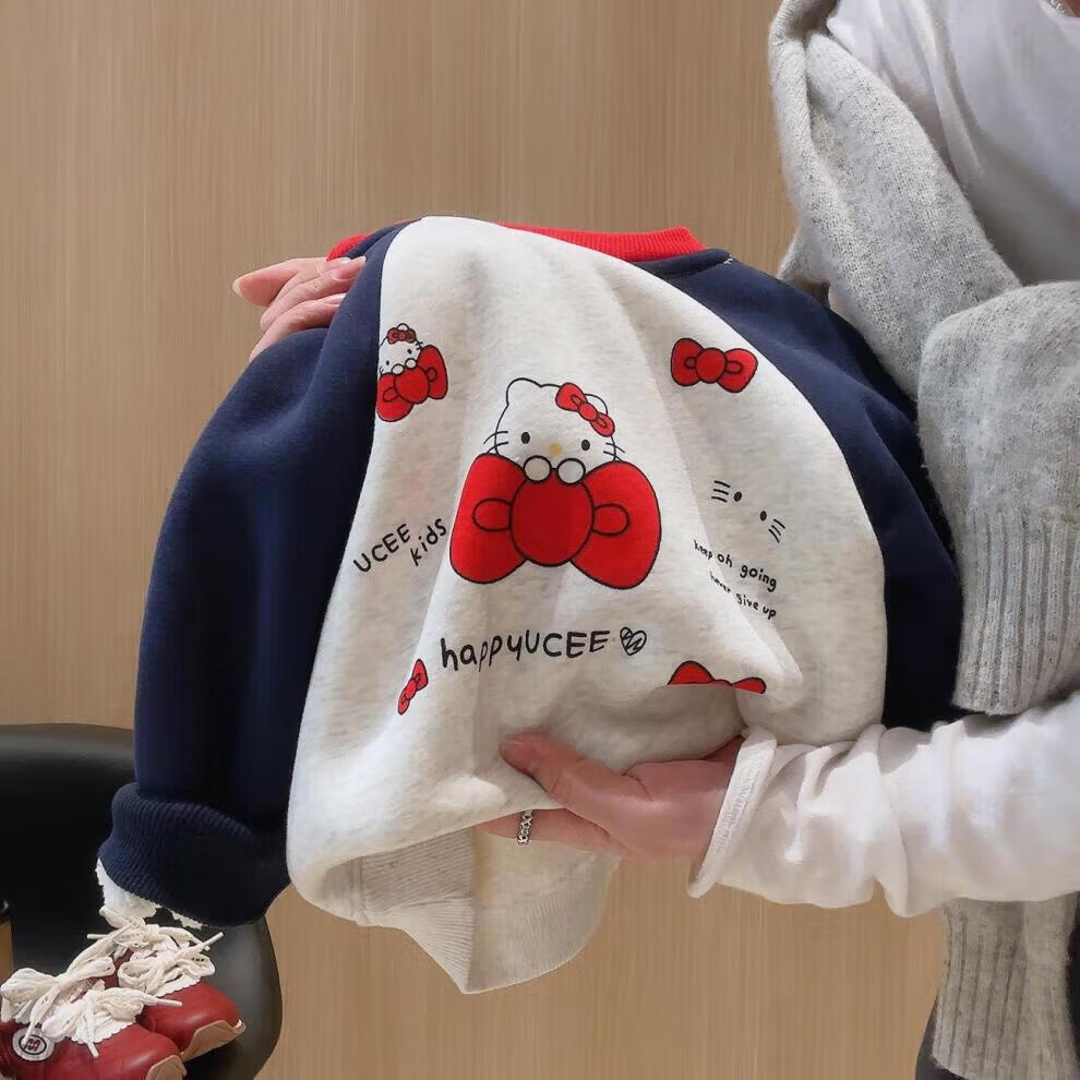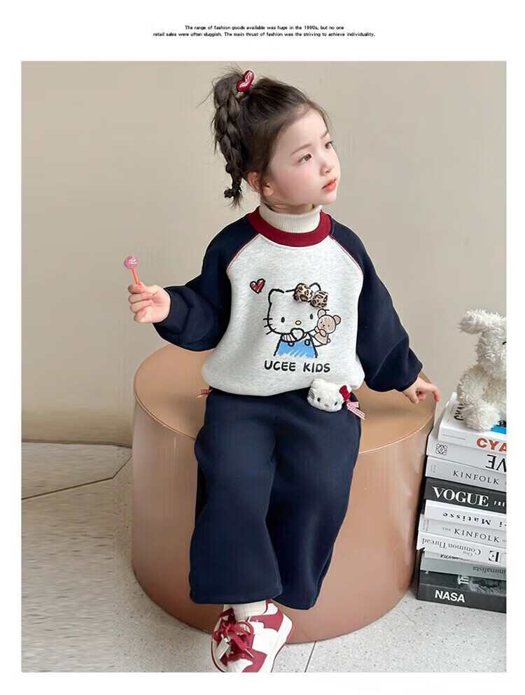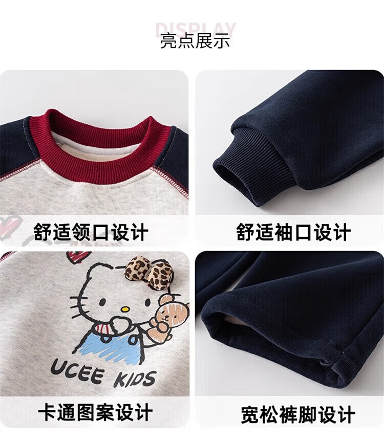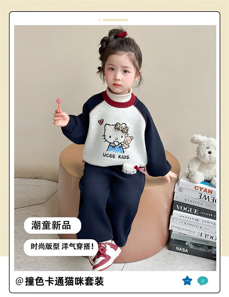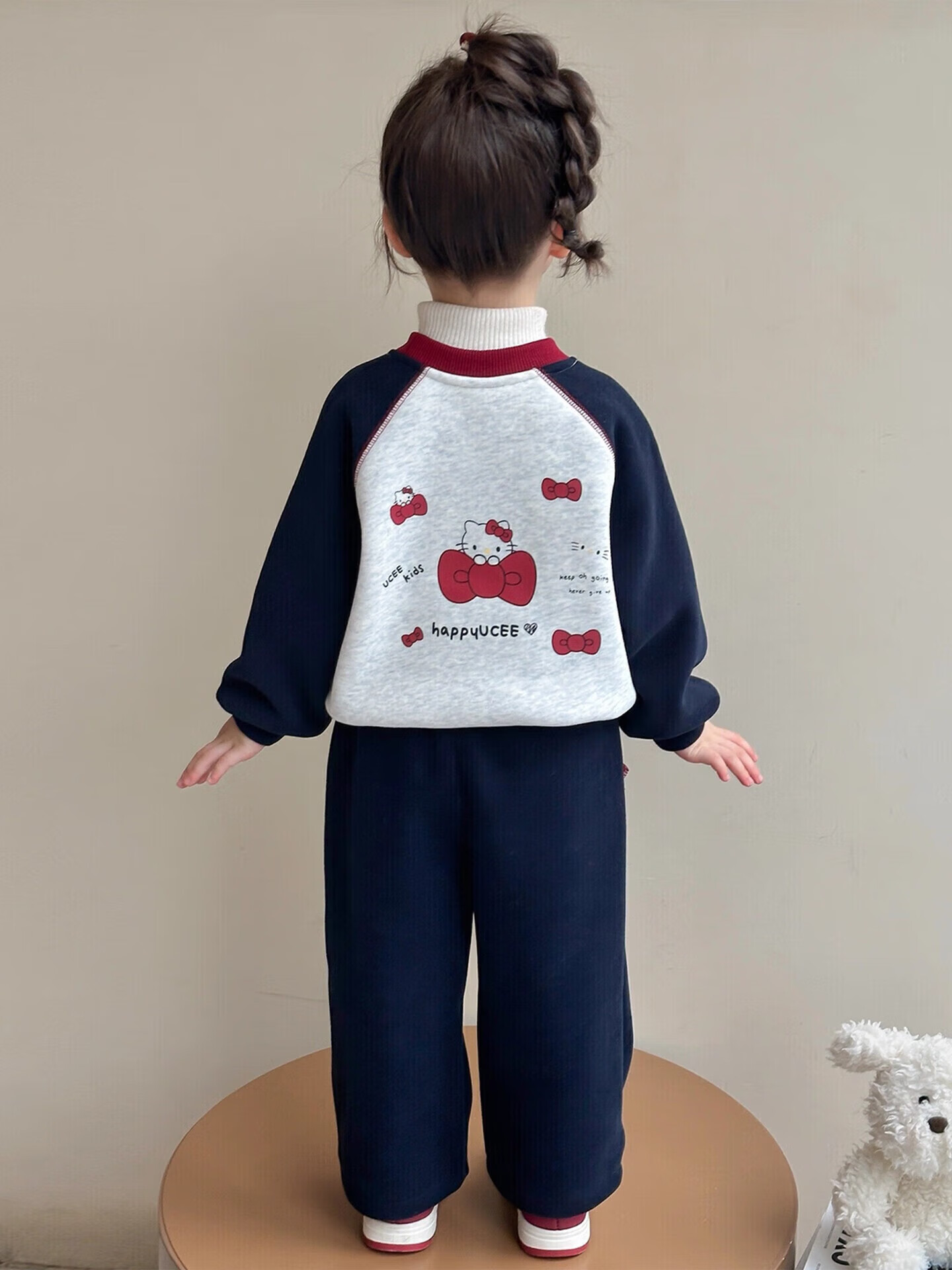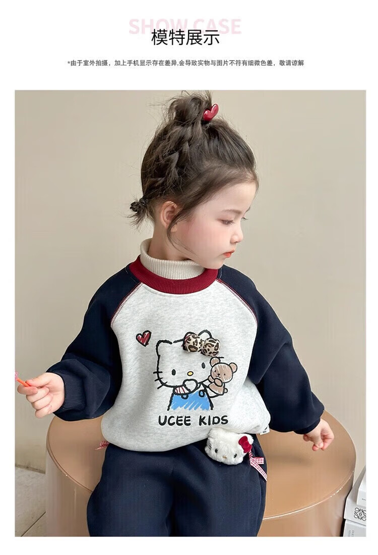 小猪班纳(PEPCO)女童套装可爱立体玩偶卡通猫咪秋冬季新款加绒加厚卫衣裤子两件套 KX【撞色KT小猫】 加绒 150 (建议身高140-150cm)