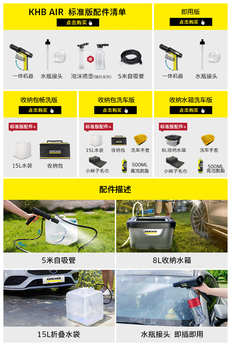 KARCHER德国卡赫无线洗车机KHBAir便携洗车机家用高压水枪【采销推荐】
