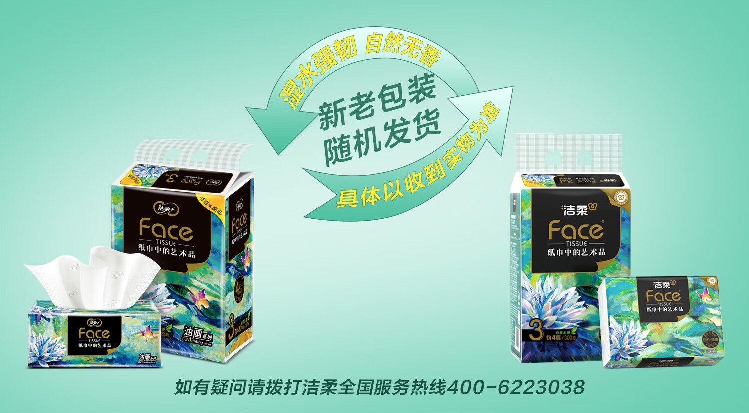 洁柔抽纸 艺术油画Face4层100抽*3包 可湿水面巾纸湿水柔韧 亲肤细腻