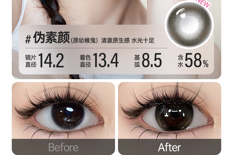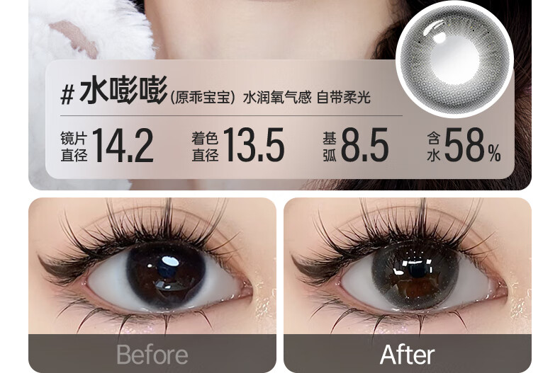 可啦啦(Kilala)玻尿酸氛围感美瞳日抛10片自然彩色近视隐形眼镜水星灰 200度