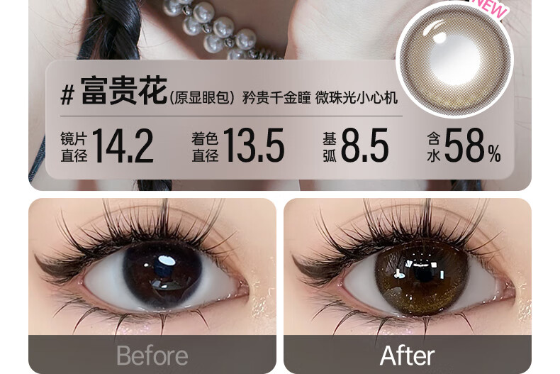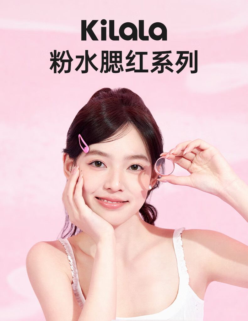 可啦啦(Kilala)眼上腮红B12粉水美瞳日抛10片三明治彩色近视隐形眼镜浓颜黑475度