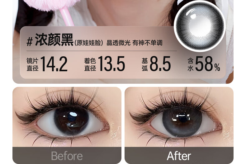 可啦啦(Kilala)镜头感玻尿酸美瞳日抛 彩色隐形近视眼镜10片装冷光黑胶黑200度