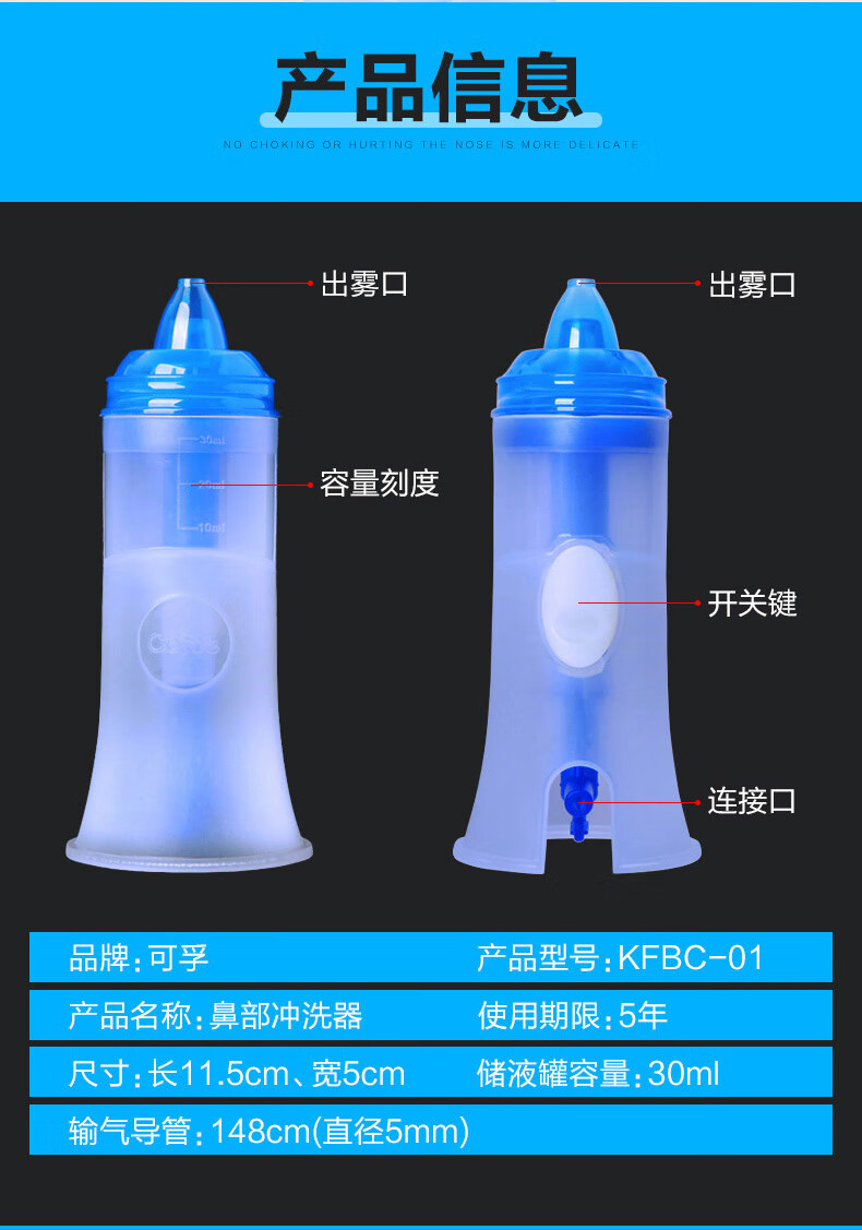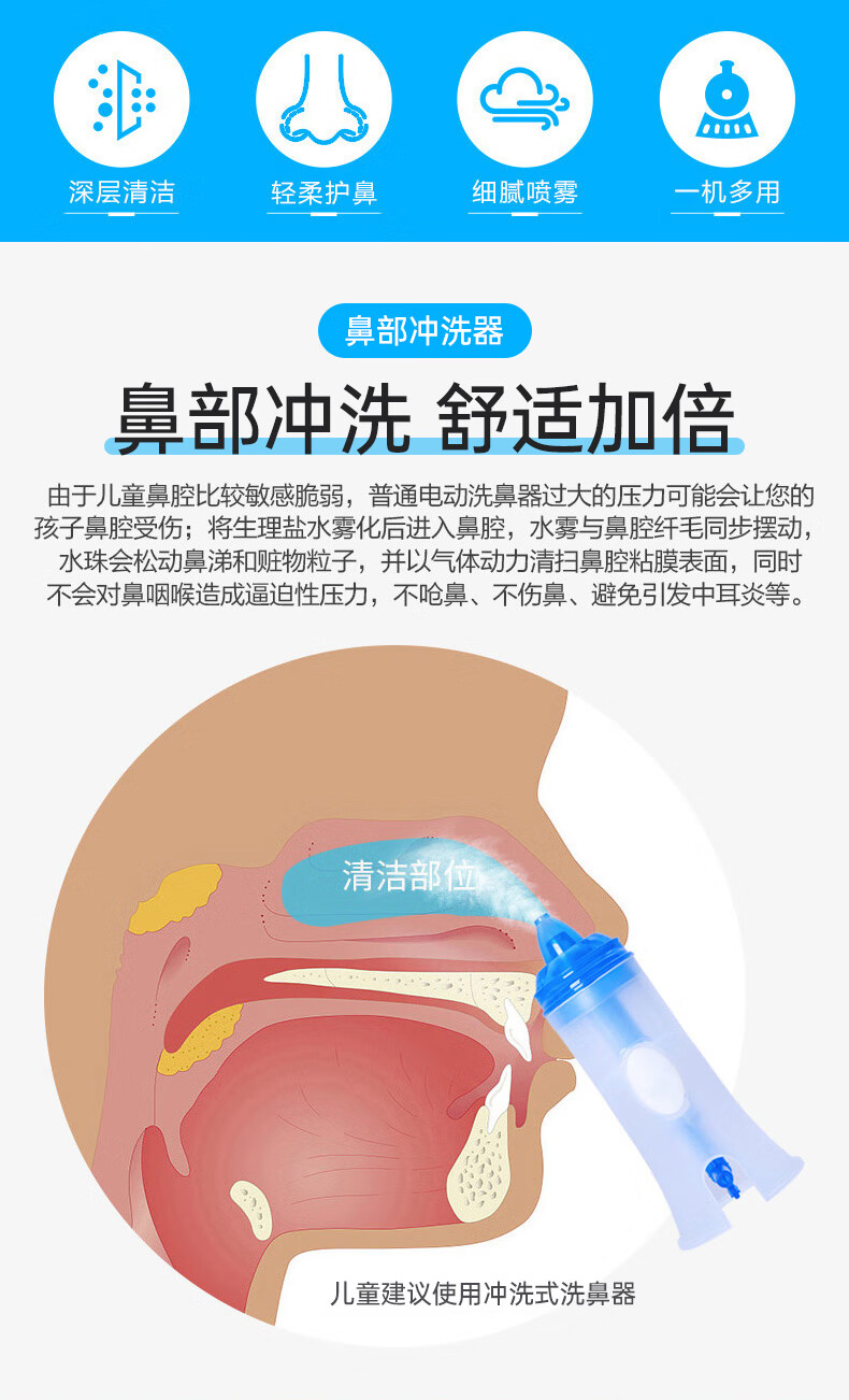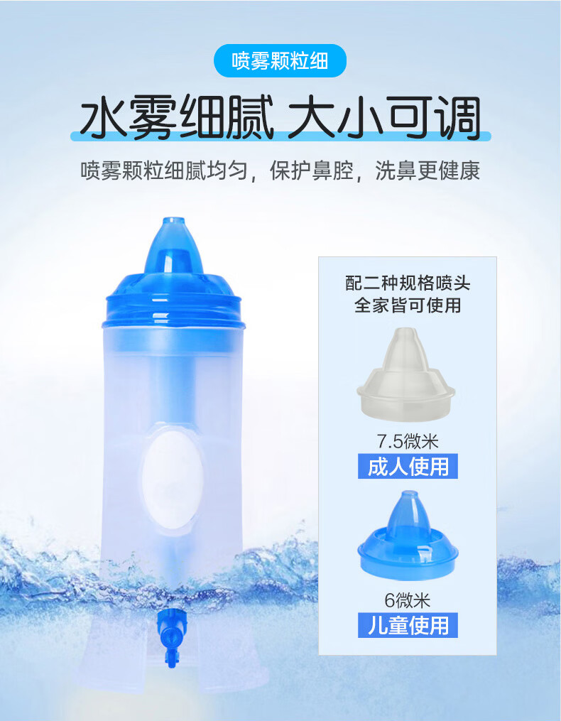可孚 家用鼻部冲洗器儿童医用喷鼻鼻塞吸鼻洗鼻壶电动喷雾式*10支盐水