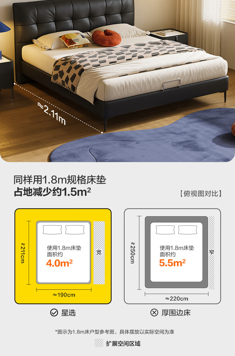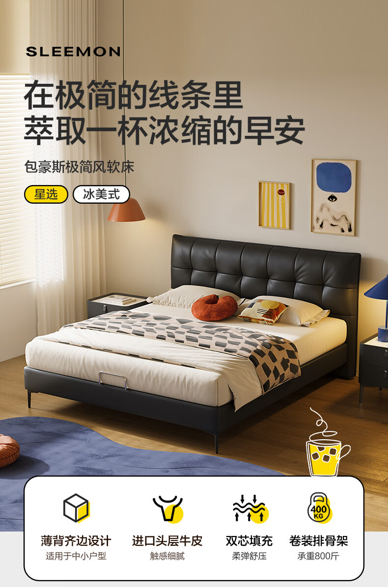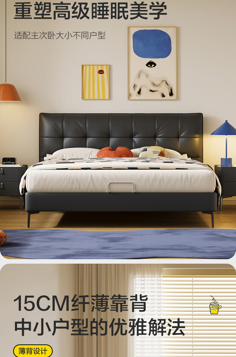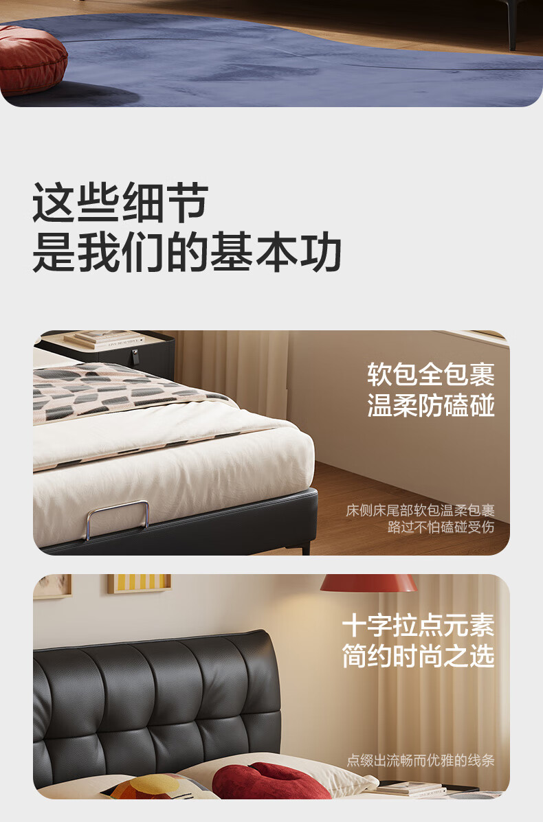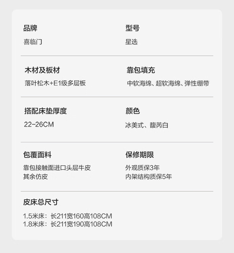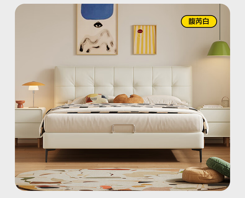 喜临门【MD3】星选套餐皮艺真皮双人床现代简约高脚2025新款[床架] 馥芮白+白骑士典藏 1.8*2米