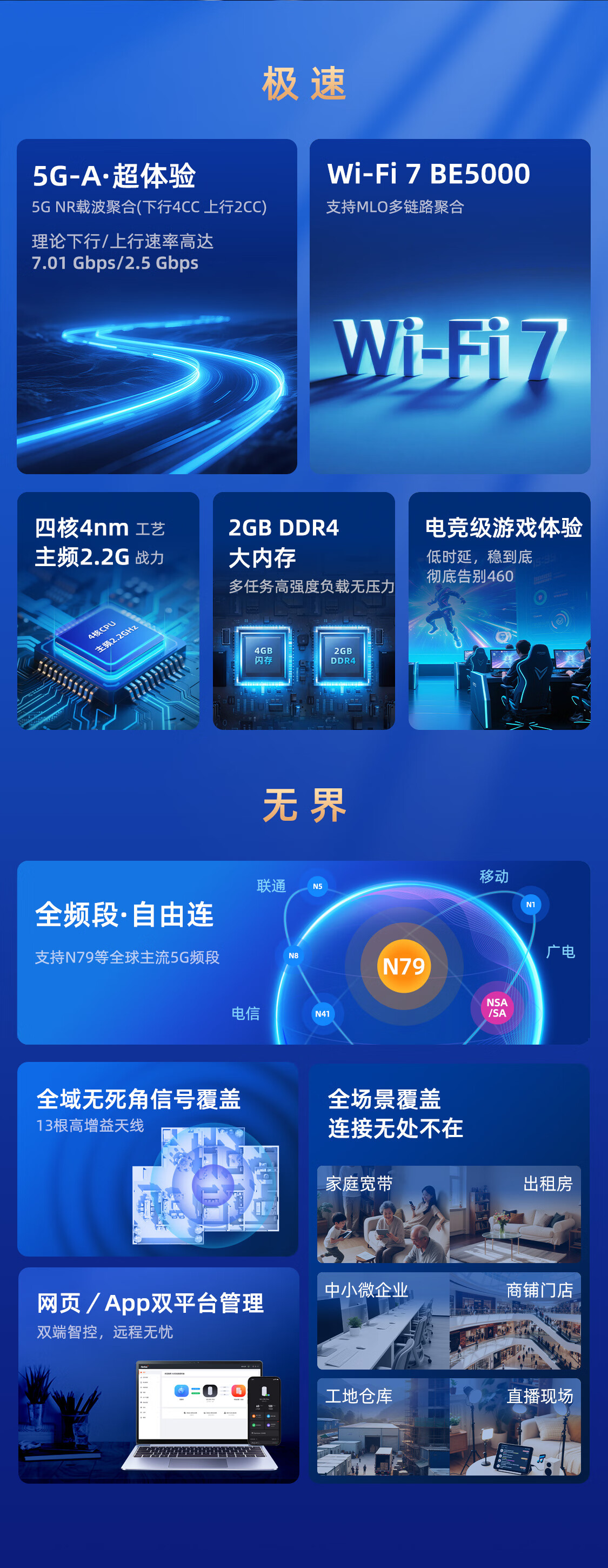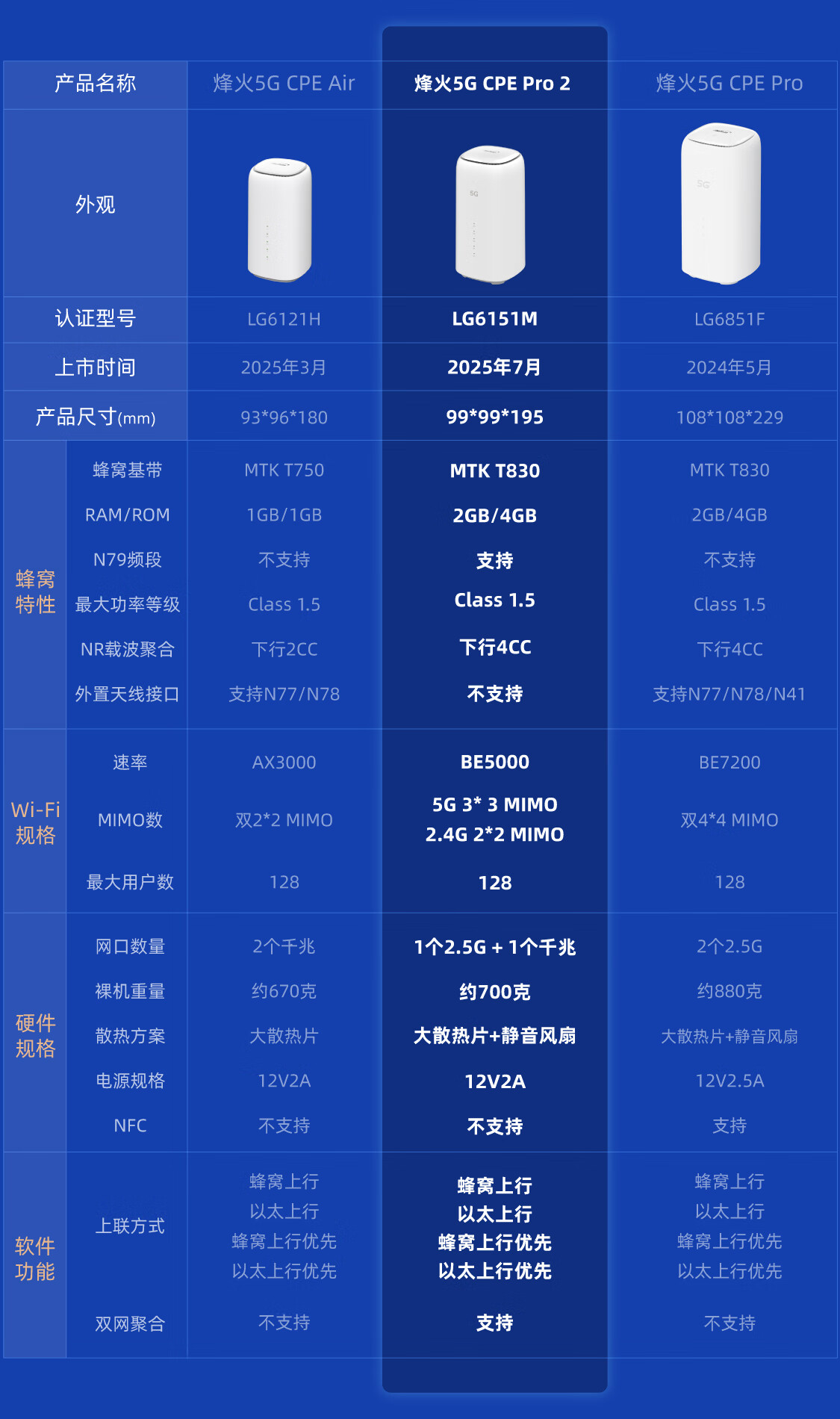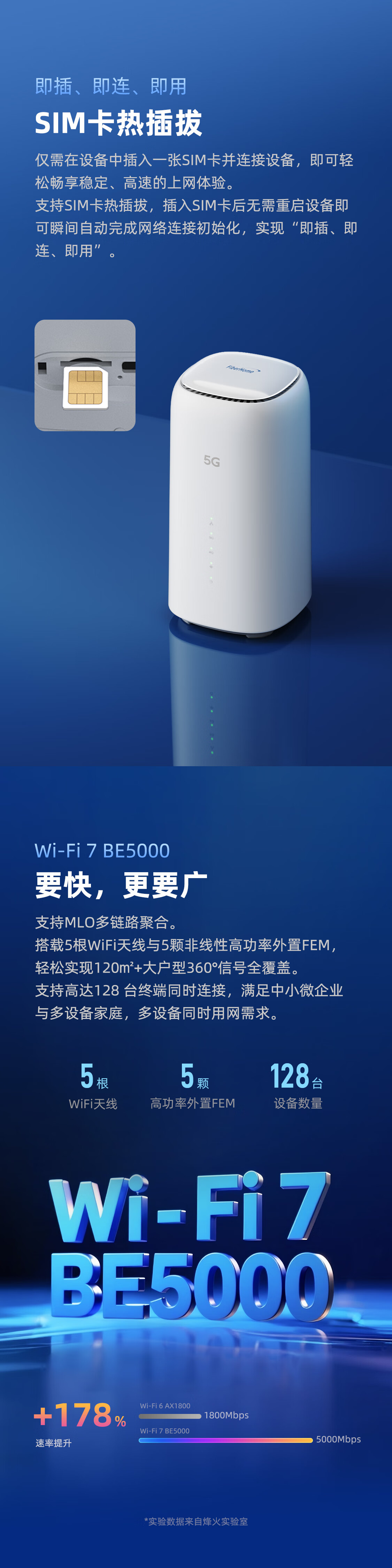 FiberHome烽火5G CPE Pro 2移动路由器 SIM卡插卡上网 全频段 支持5G-A WiFi7 BE5000 2.5G网口【2025新款】
