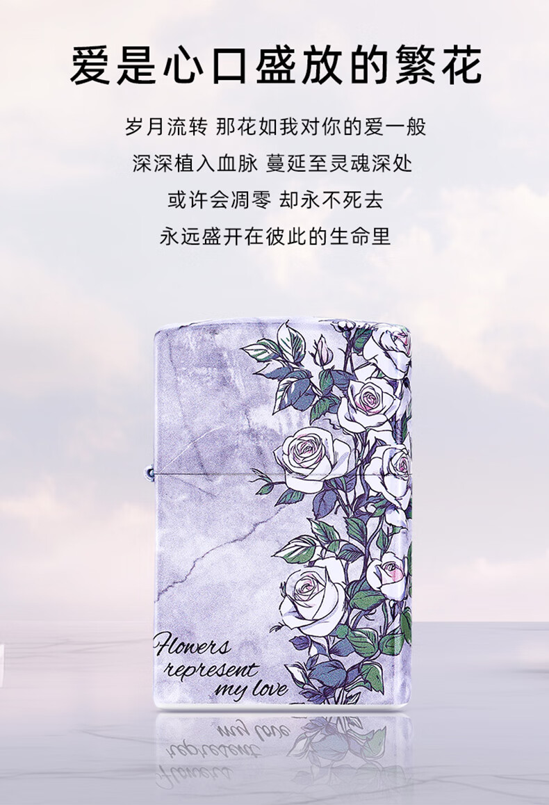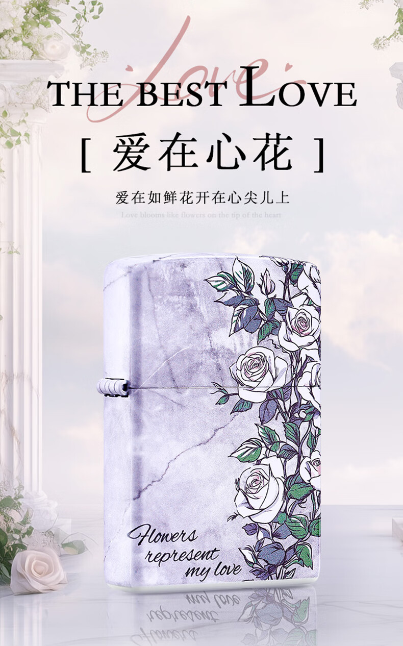ZIPPO防风煤油打火机 爱在心花 男士情侣礼物高级感轻奢高颜值定制 专属装(礼盒礼袋+小油)