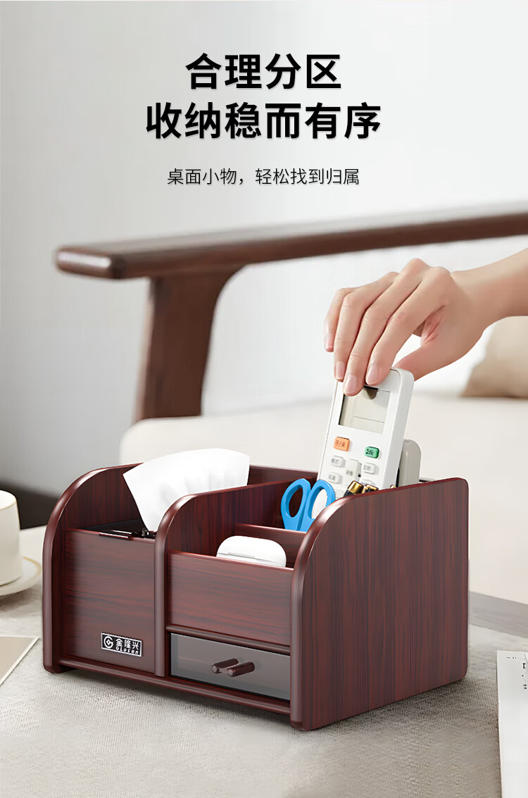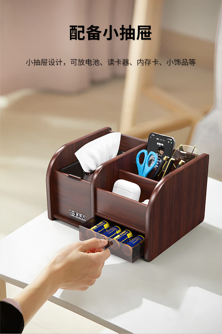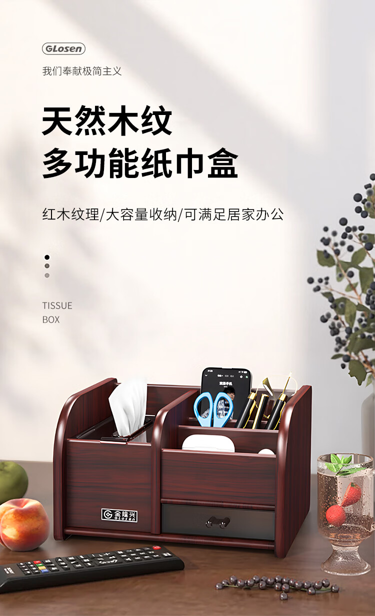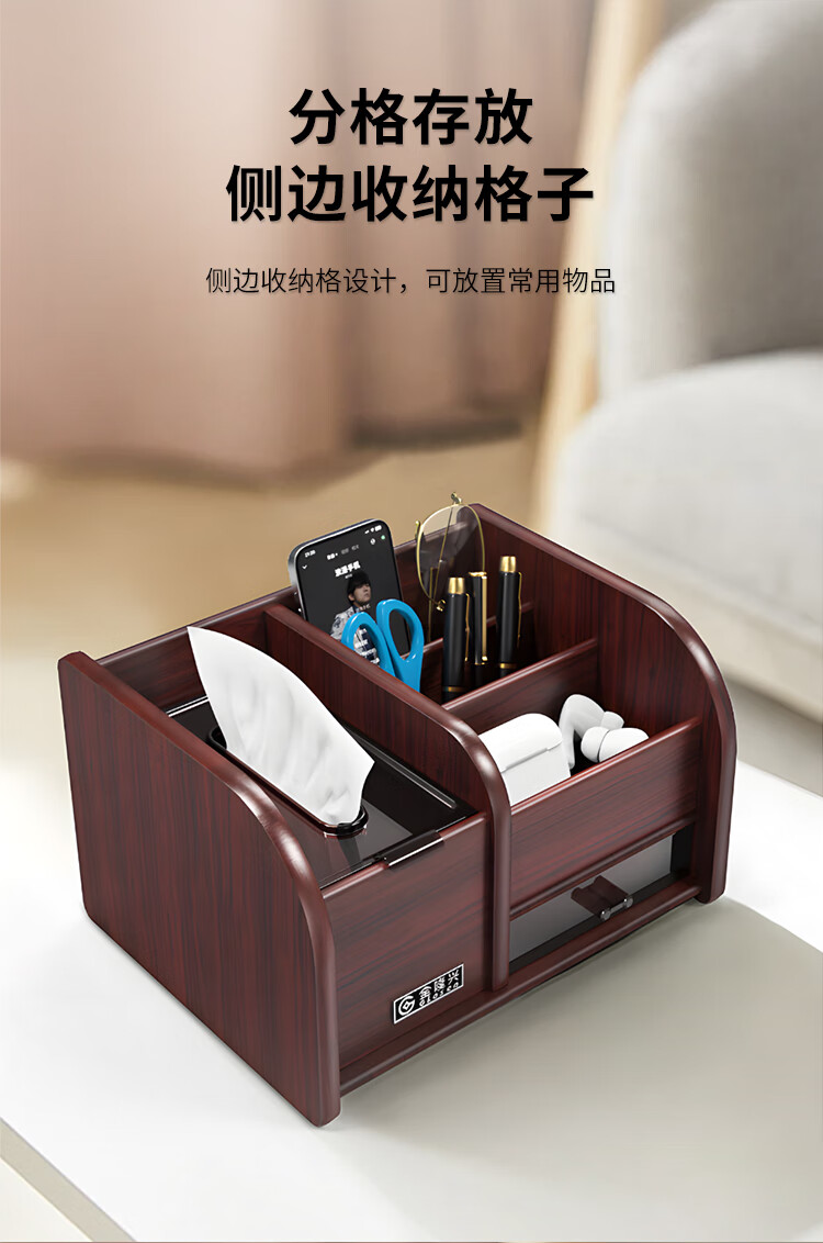 金隆兴多功能轻奢木质桌面纸巾盒办公家用客厅茶几遥控器收纳盒抽纸盒
