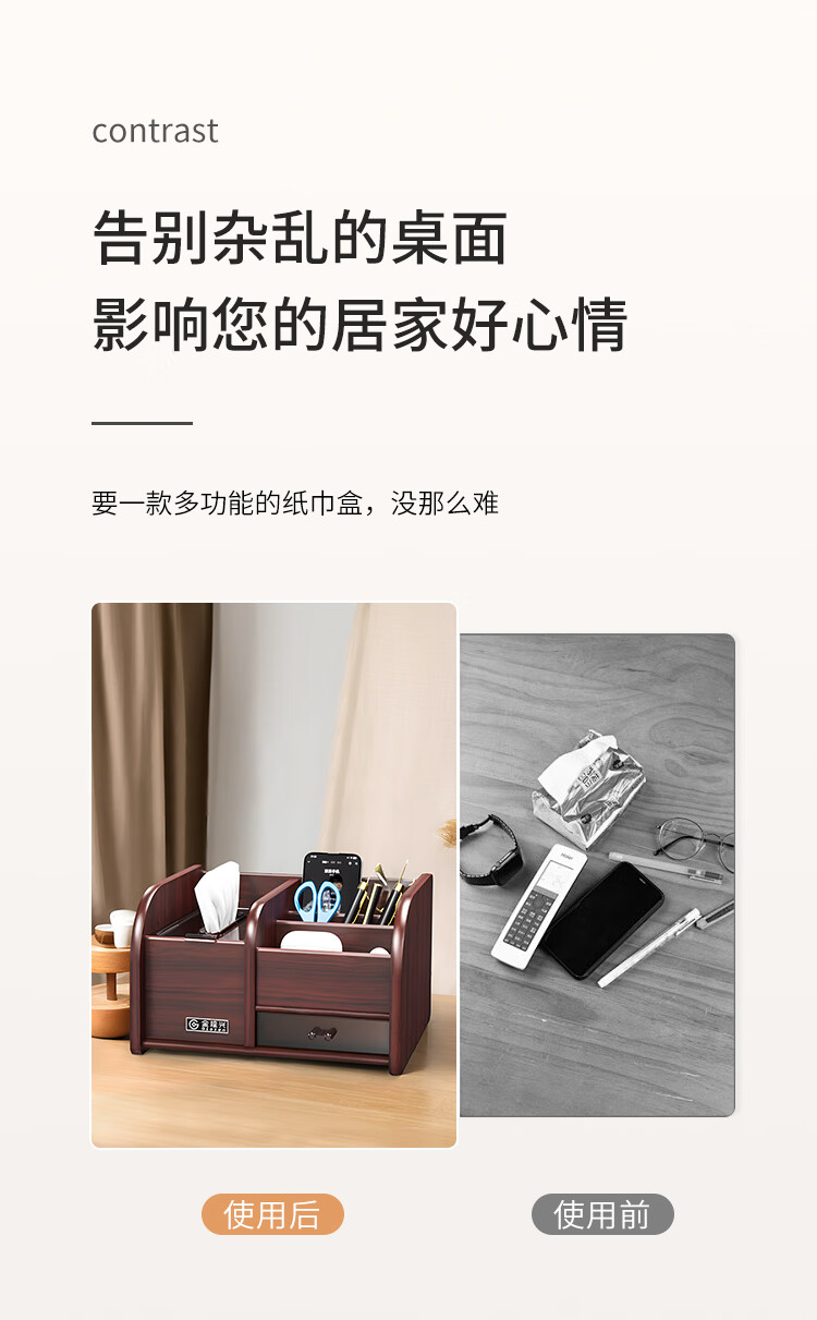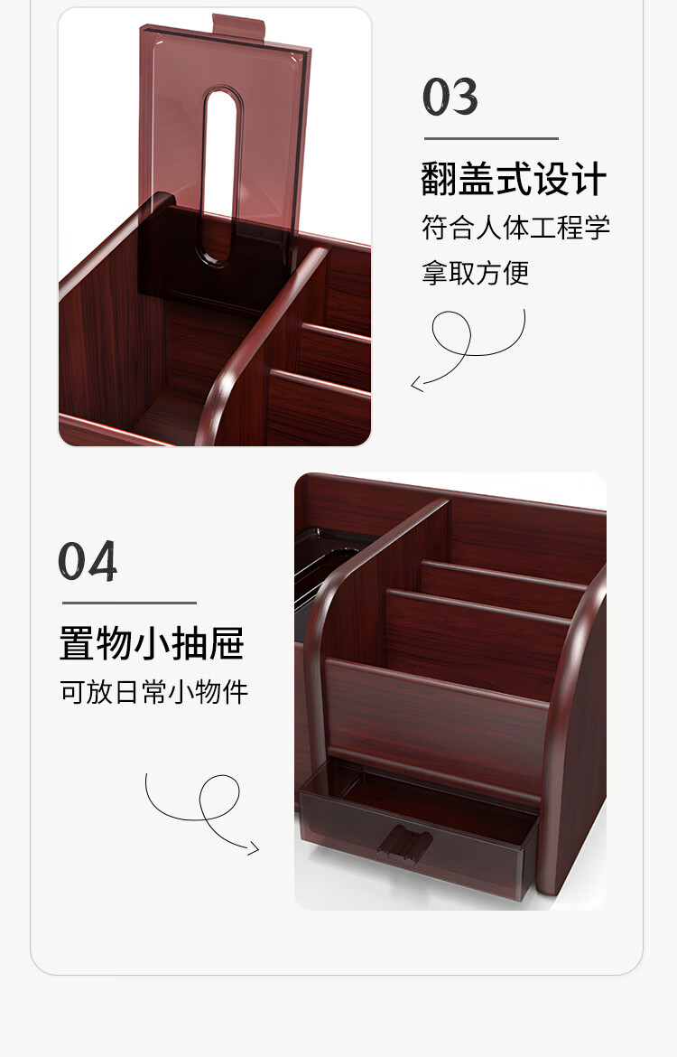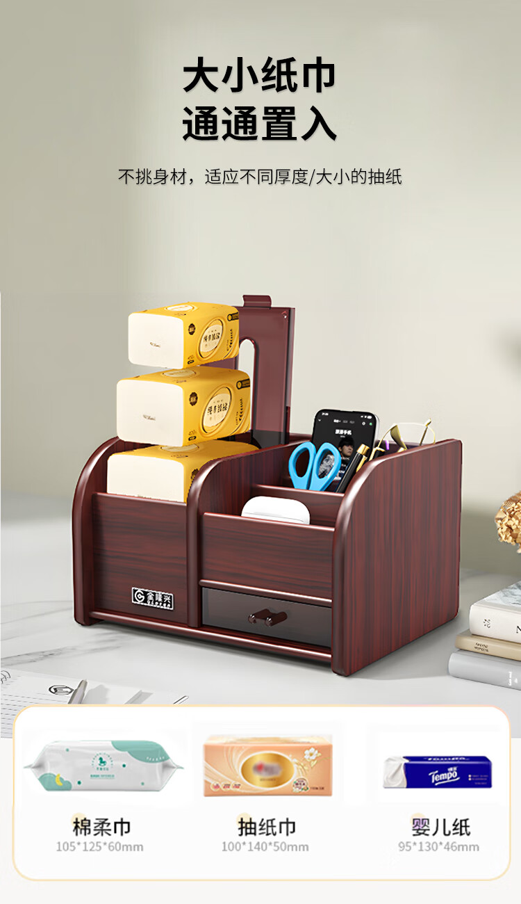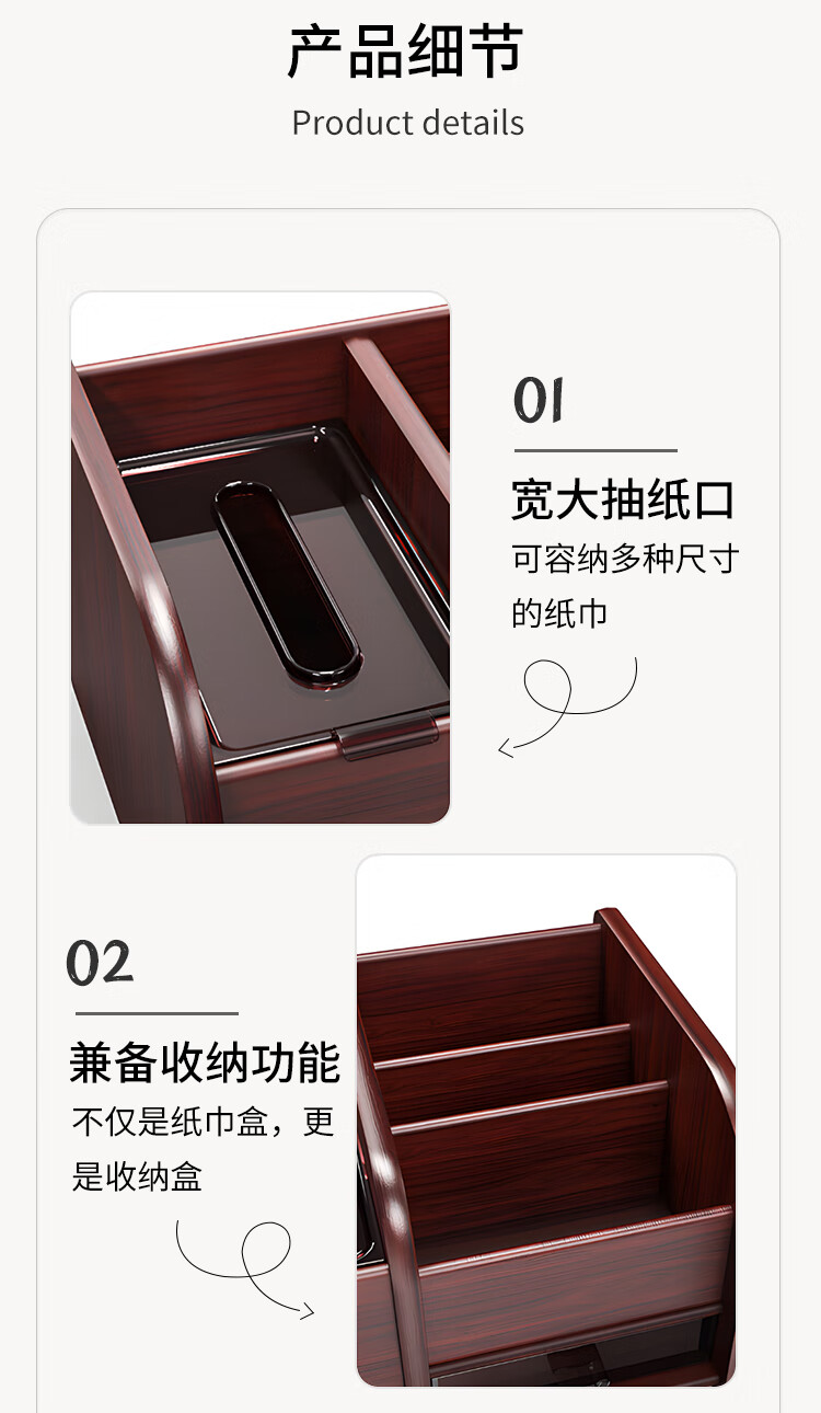 金隆兴多功能轻奢木质桌面纸巾盒办公家用客厅茶几遥控器收纳盒抽纸盒