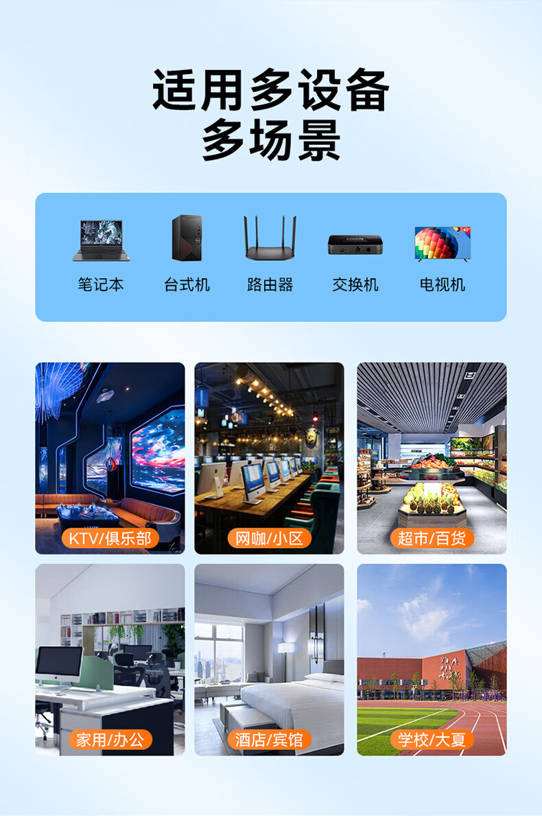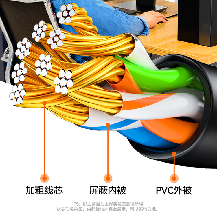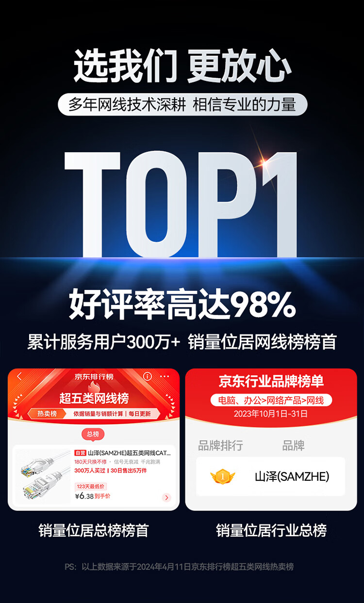 山泽 六类网线 1.5米千兆高速网络宽带线 6类家用电脑路由器监控线 CAT6八芯双绞成品跳线黑色 WD6015