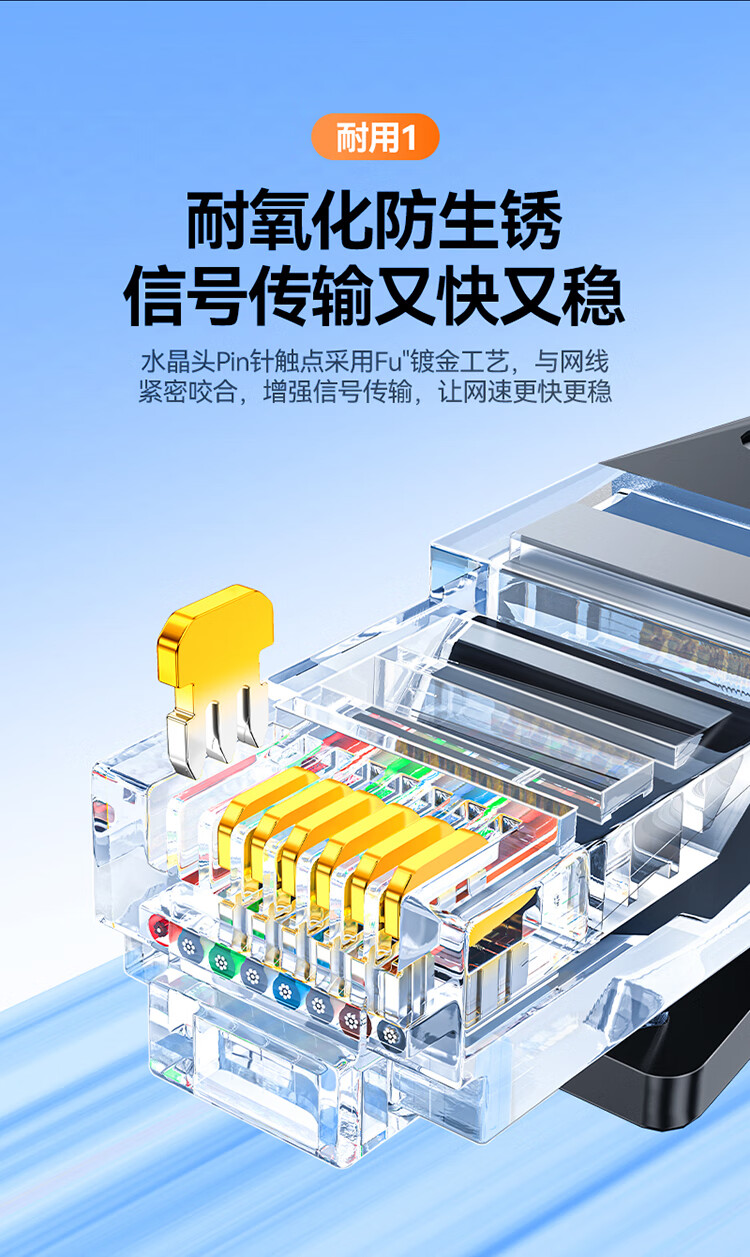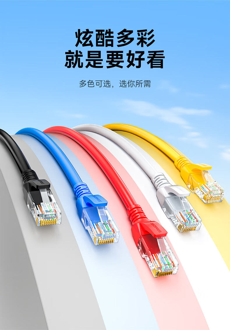 毕亚兹 六类CAT6类网线 5米 千兆网络连接线 工程家用电脑宽带监控非屏蔽8芯双绞成品跳线带头 WX8