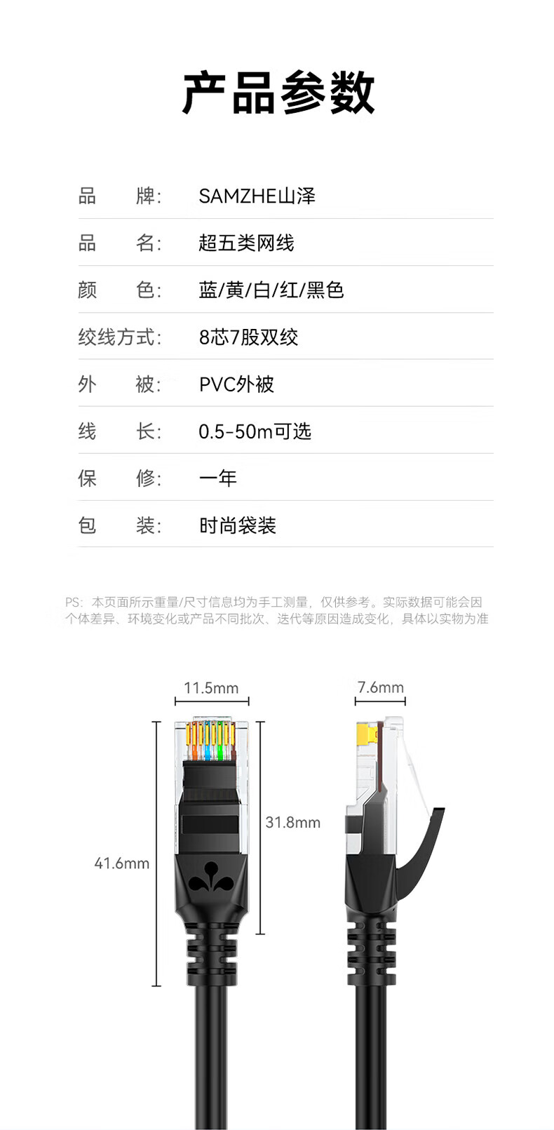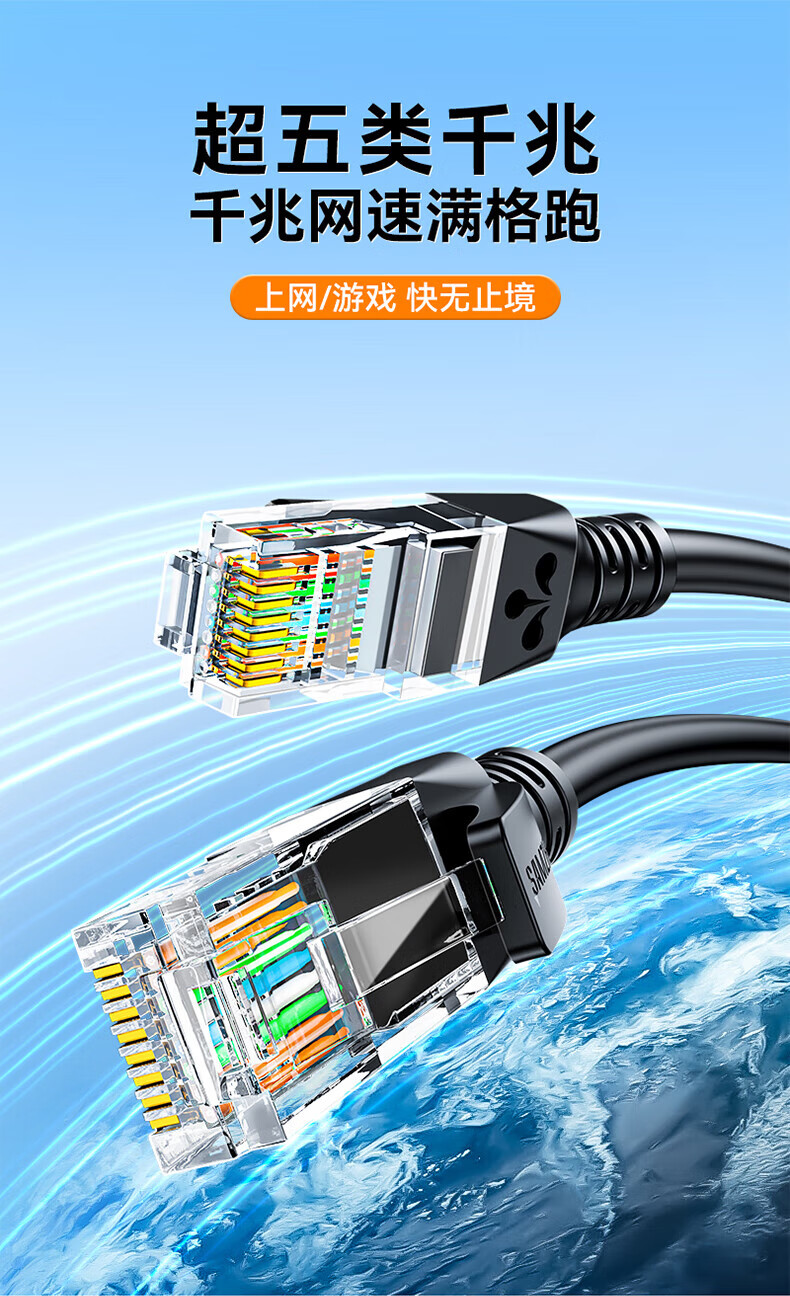 山泽(SAMZHE)超五类网线 CAT5e类高速千兆网线 2米 工程/宽带电脑家用连接跳线 成品网线 黑色 SH-1020