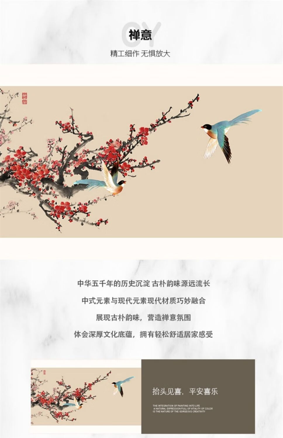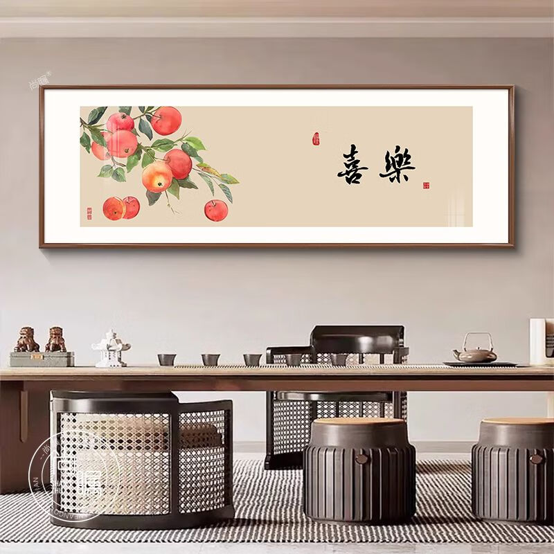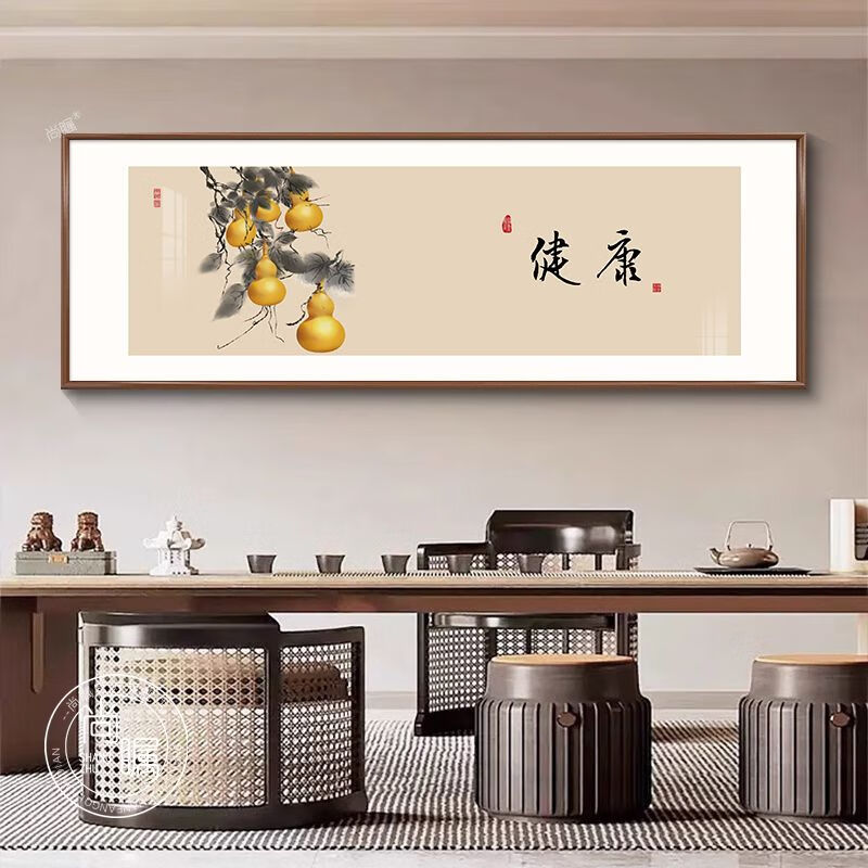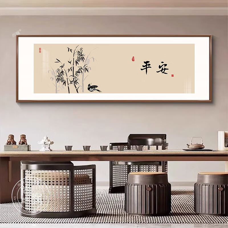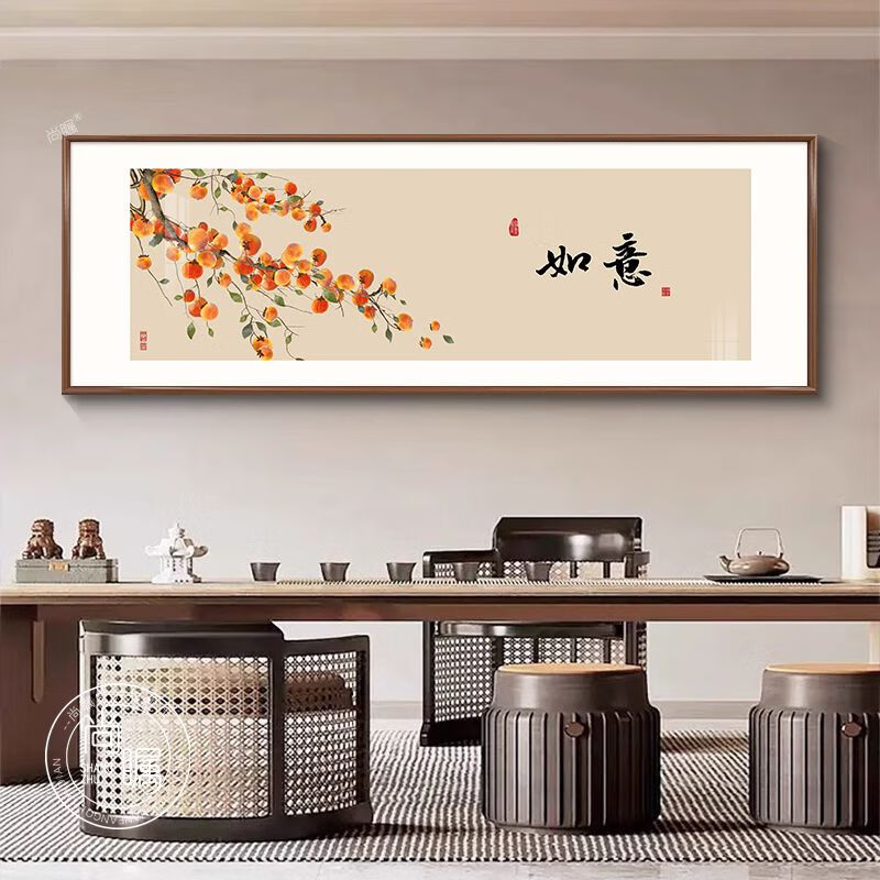 OYKTN中式字画茶室挂画客厅沙发背景墙装饰画餐厅禅意办公室花鸟壁画 C款-如意 30*90超透晶瓷面+尊雅铝合金黑框