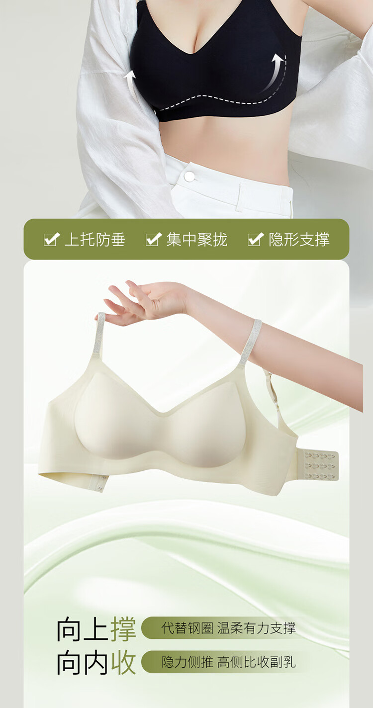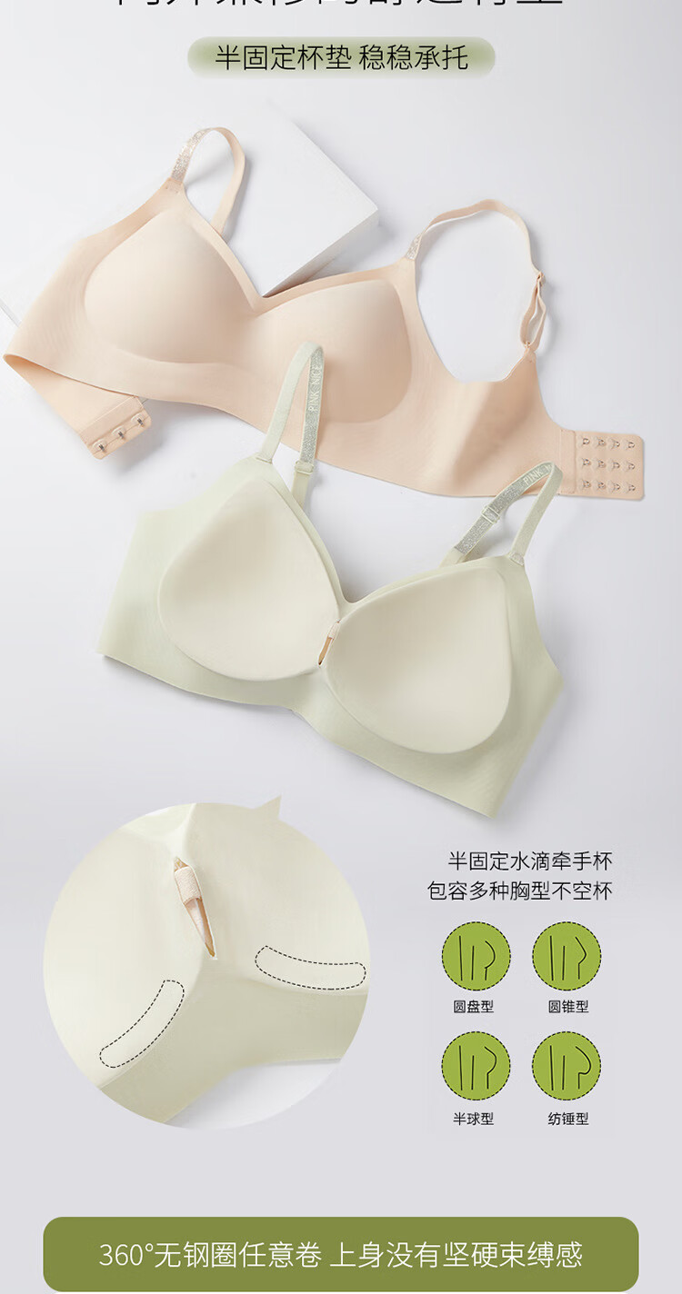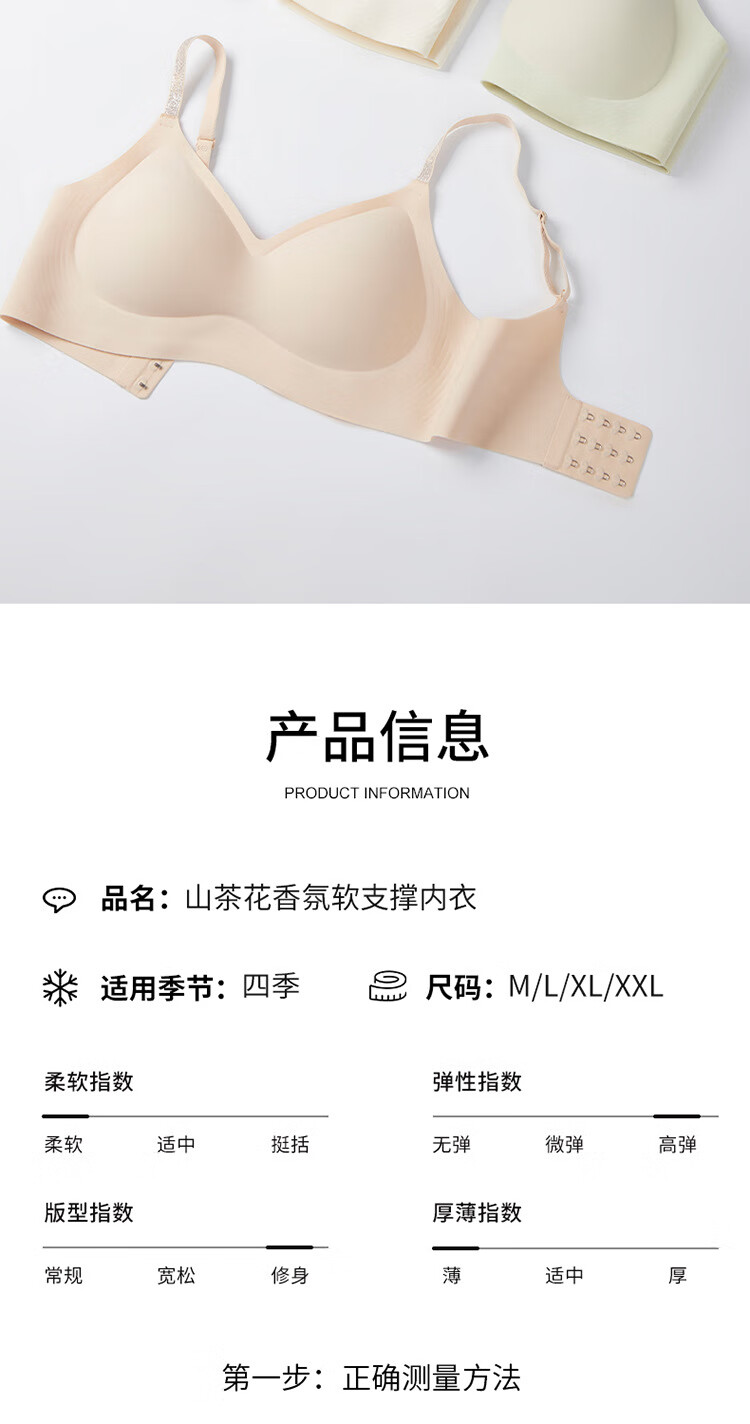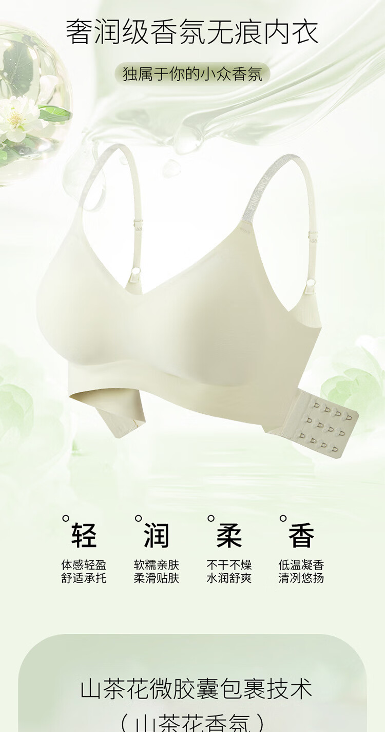 芬腾可安山茶花香氛软支撑内衣无痕内衣女士无钢圈文胸聚拢文胸 香槟色 M (90-105斤)