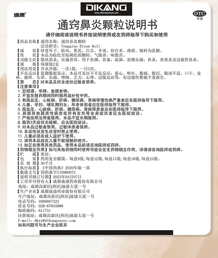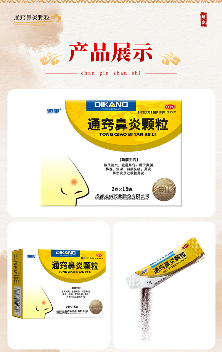 迪康通窍鼻炎颗粒2g*15袋鼻渊通窍颗粒甲流感鼻涕倒流鼻血鼻出血中成药治过敏性鼻炎慢性鼻炎消炎药鼻塞流鼻涕鼻子痒打喷嚏非鼻炎喷雾剂玉屏风颗粒苍耳子鼻窦炎口服液鼻炎宁颗粒胶囊苍鹅鼻炎片成人