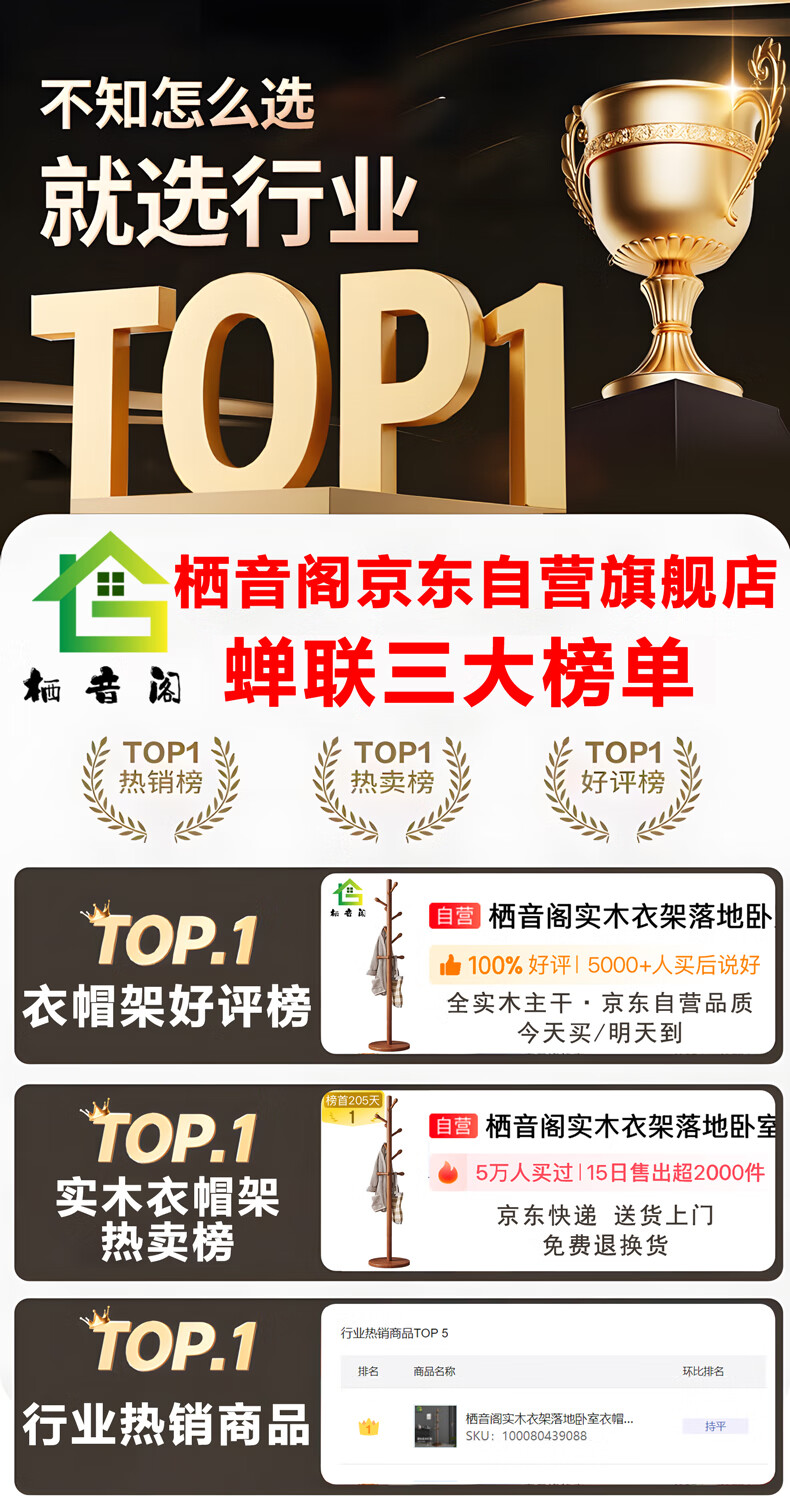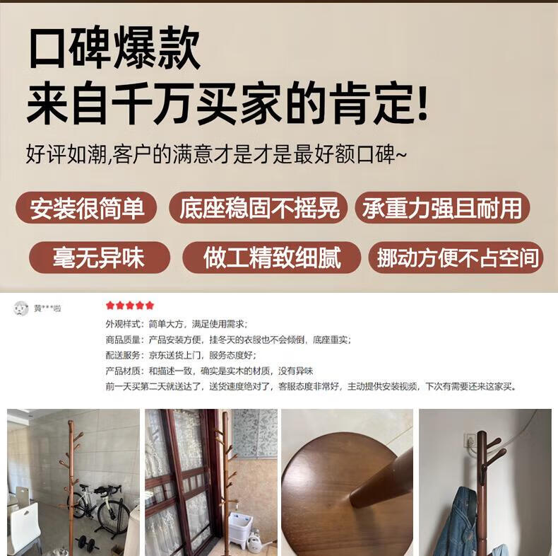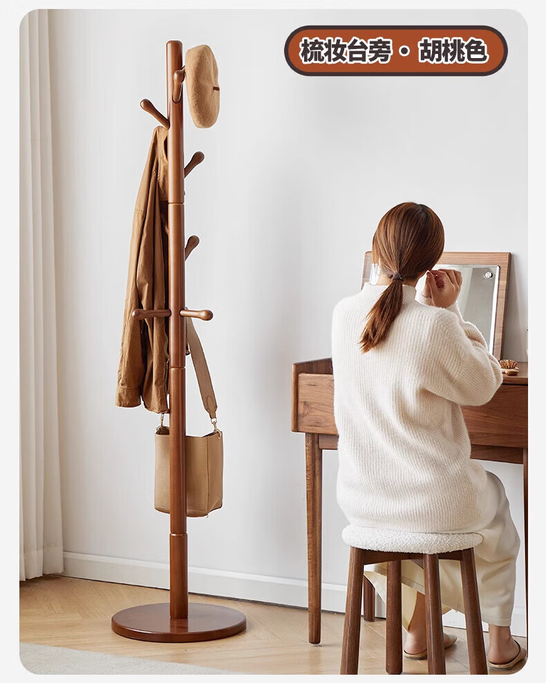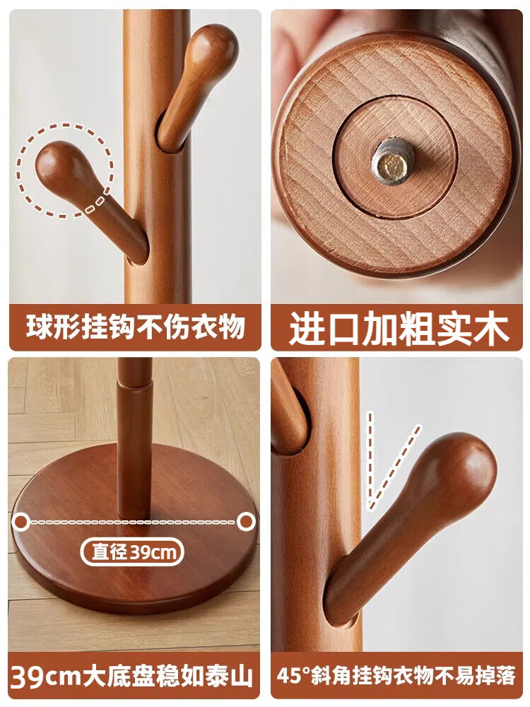 栖音阁实木衣架落地卧室衣帽架客厅挂衣服架子落地衣架家用立式挂包架