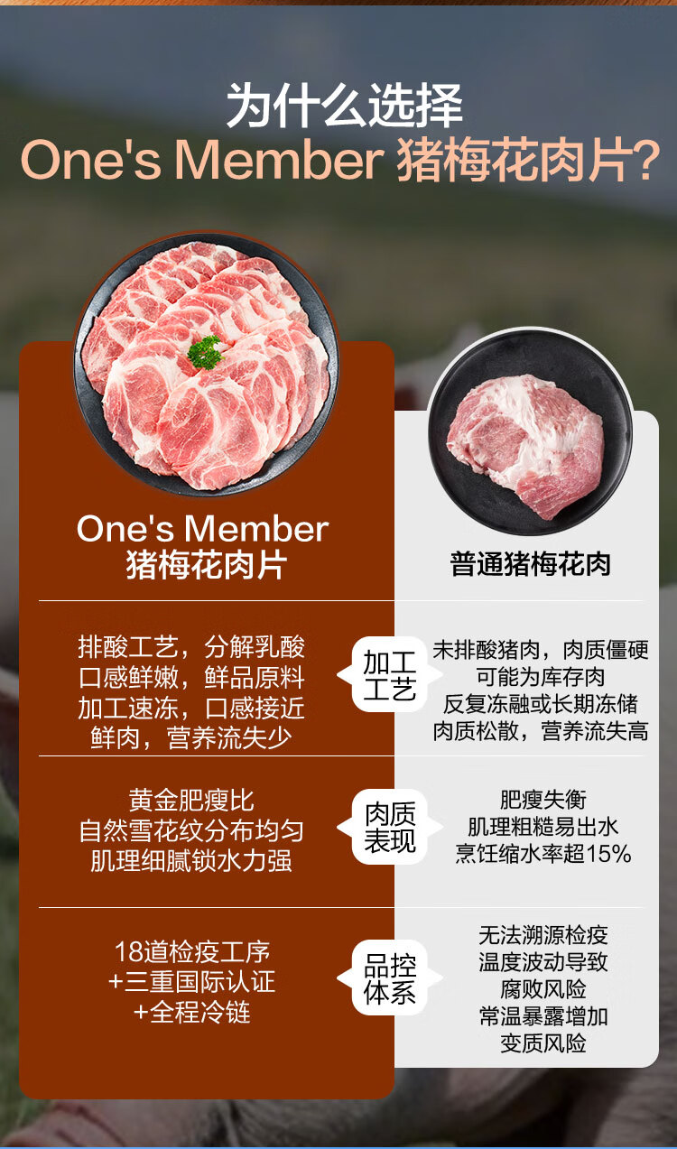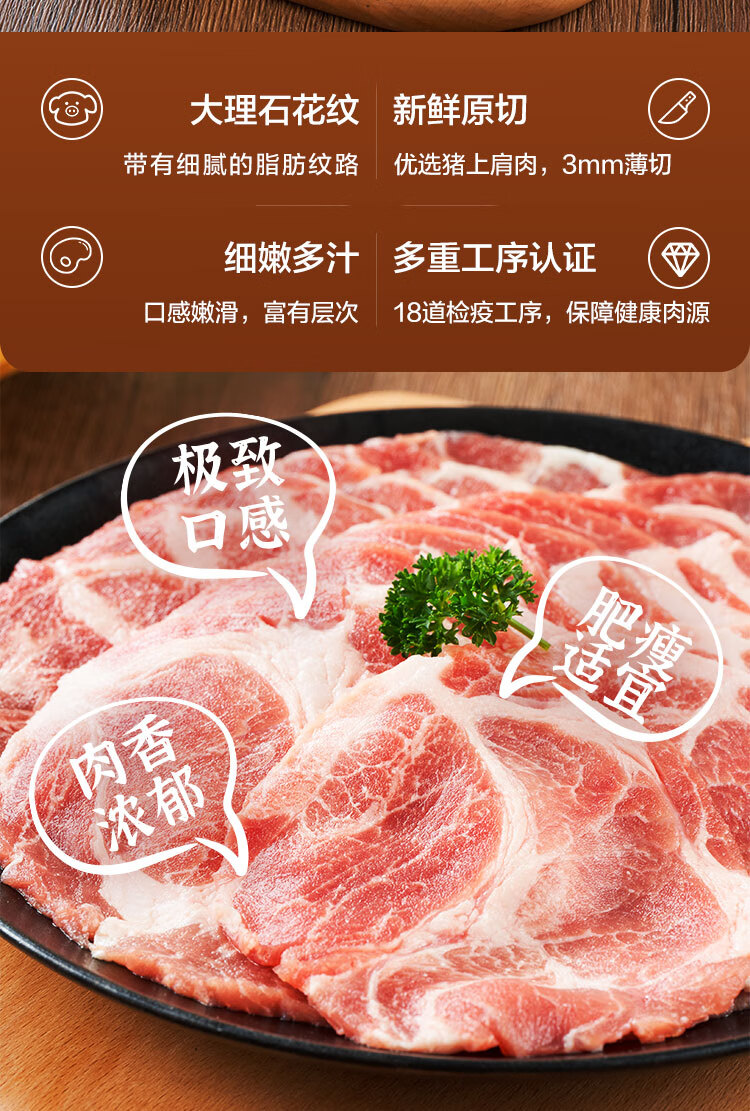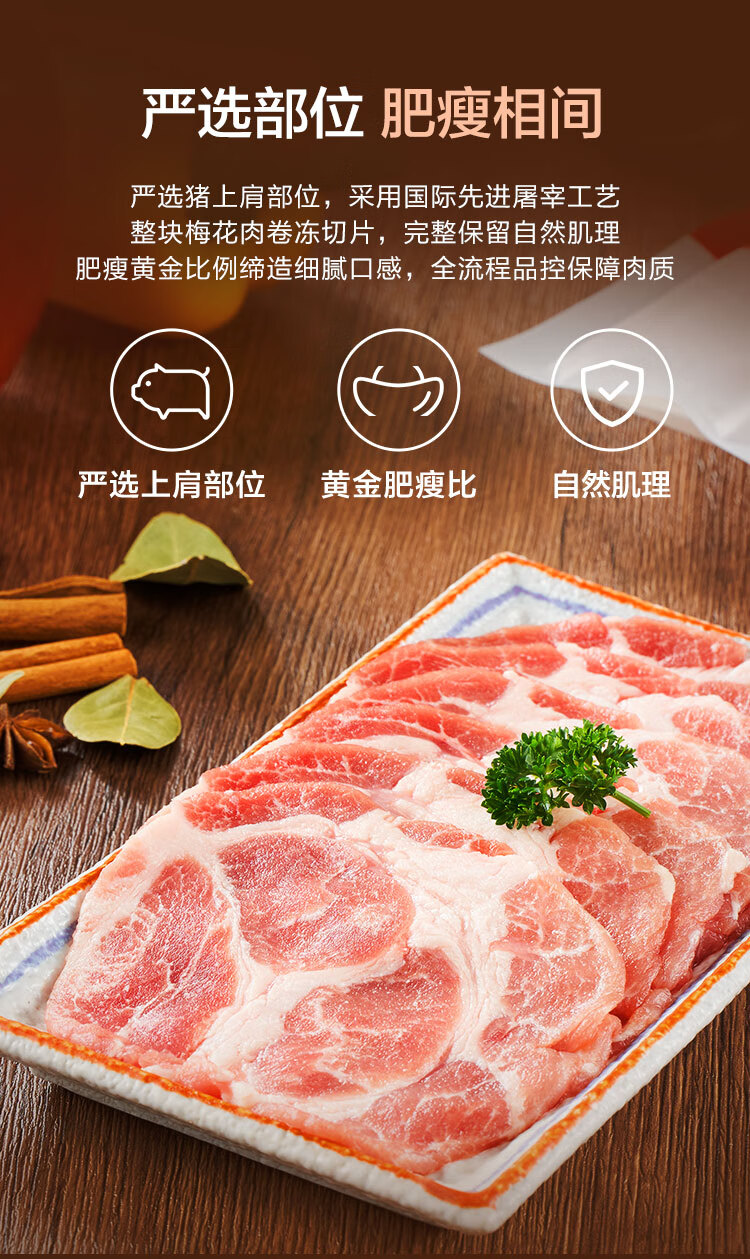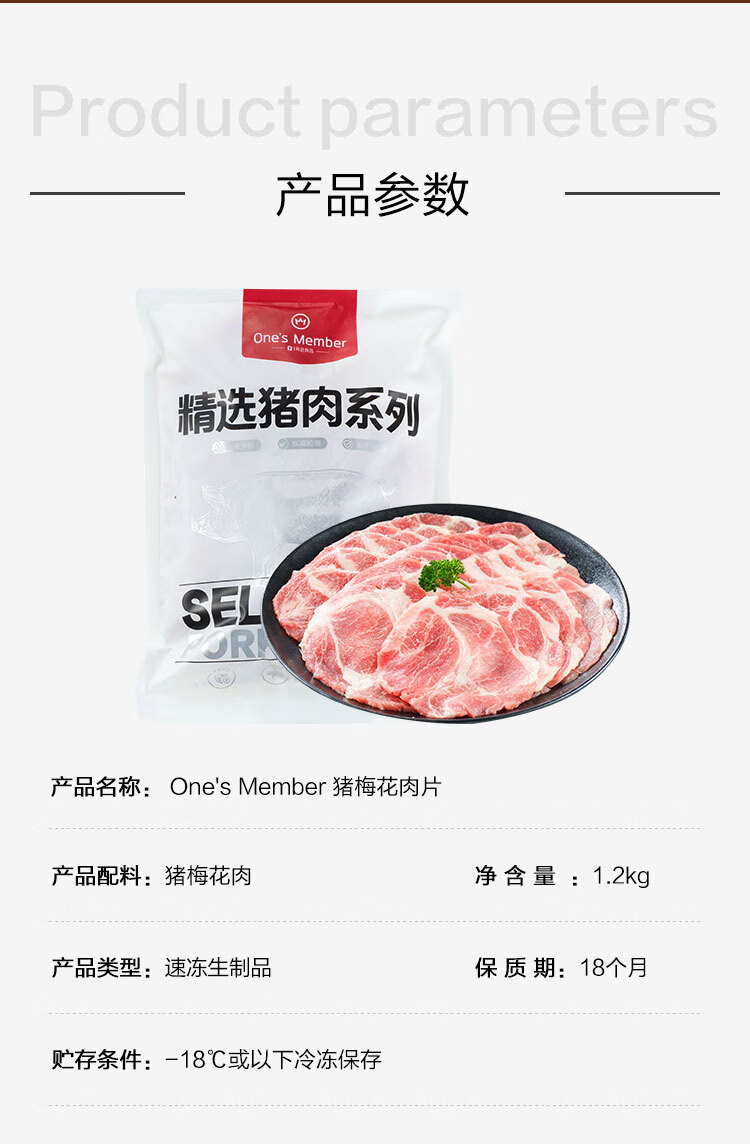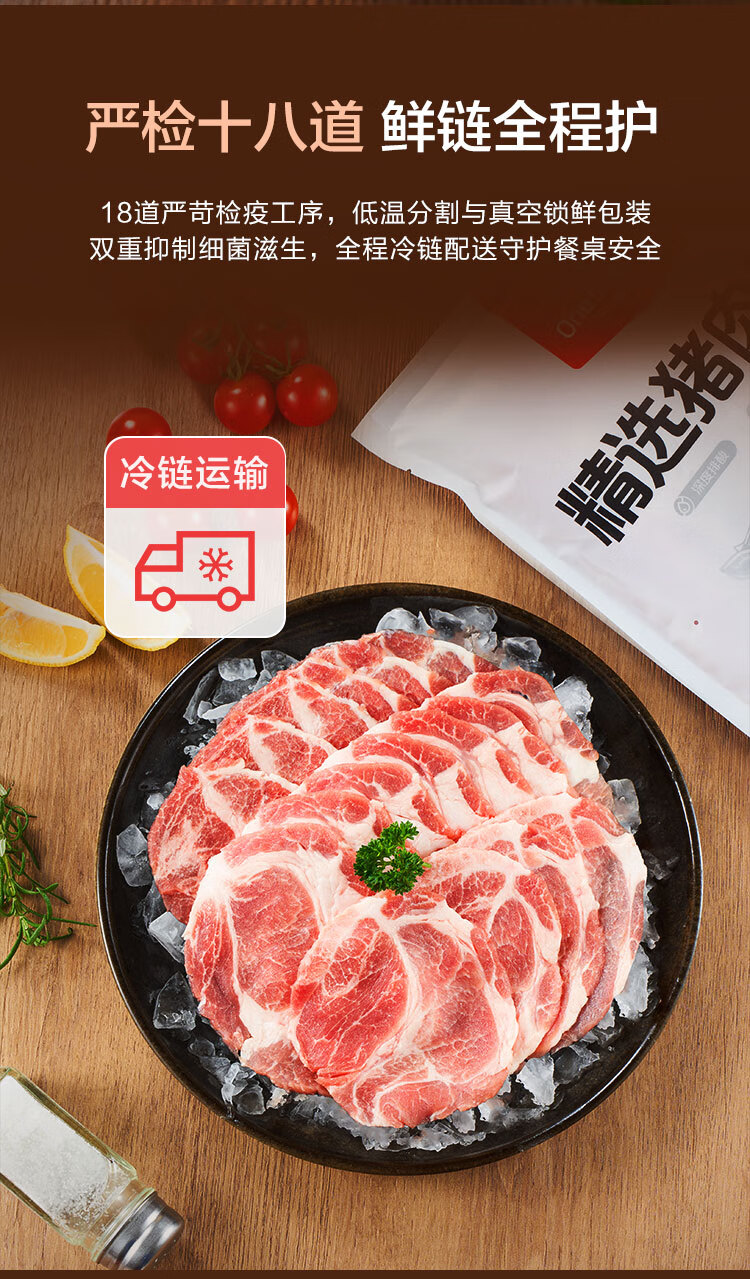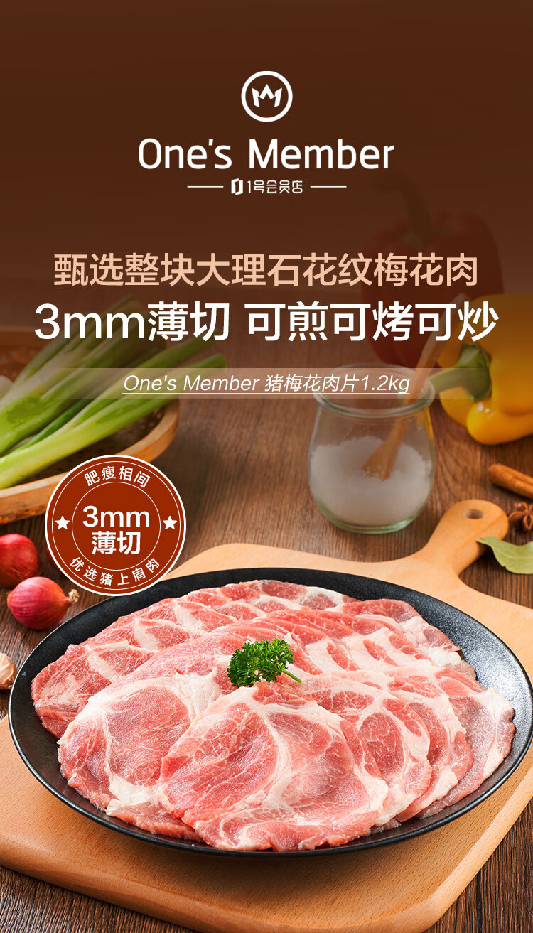 1号会员店 精选猪梅花肉片 净重1.2kg 烧烤食材梅肉猪颈肉猪肉