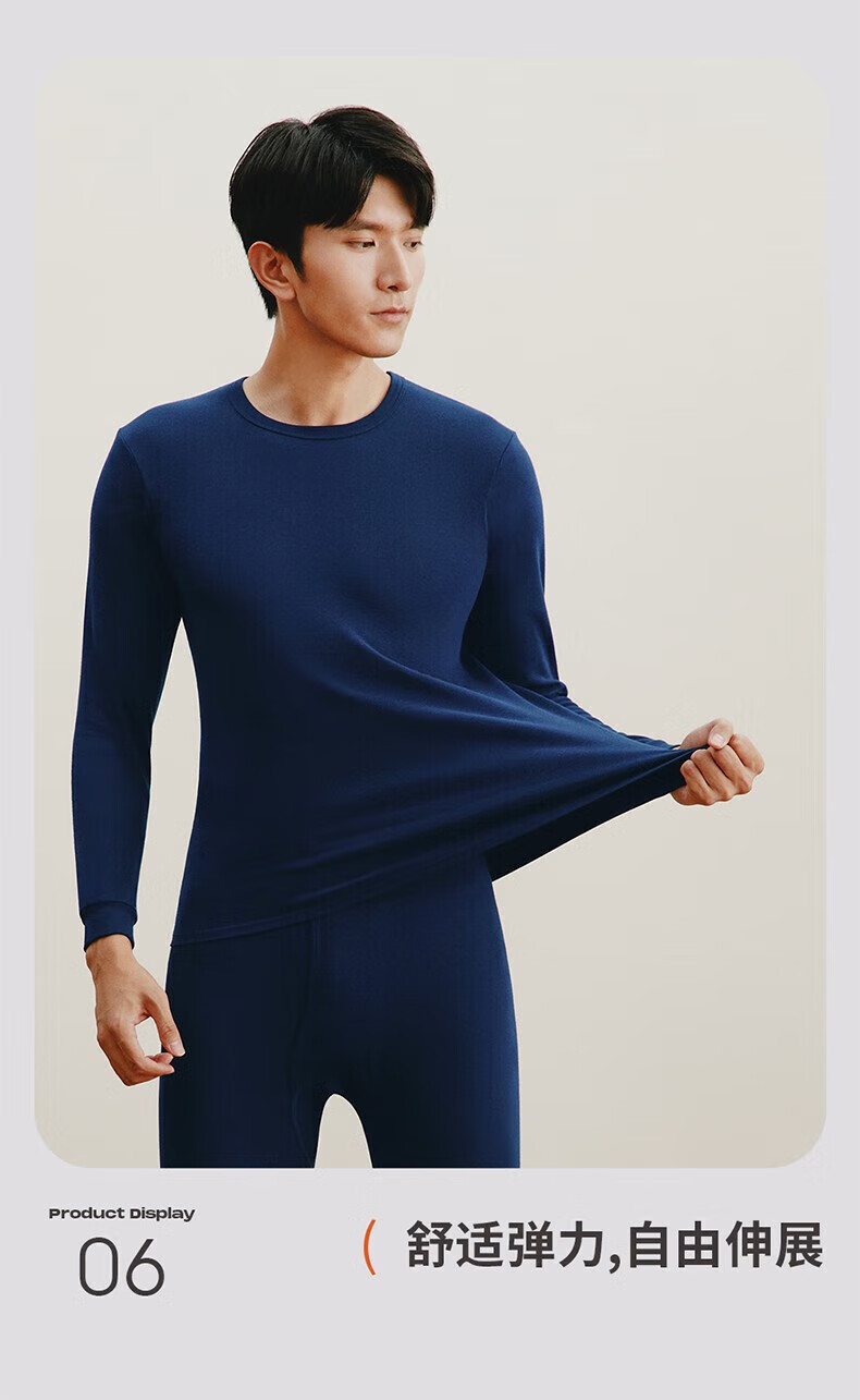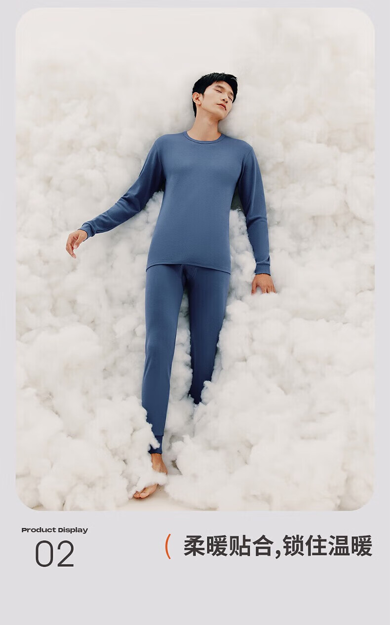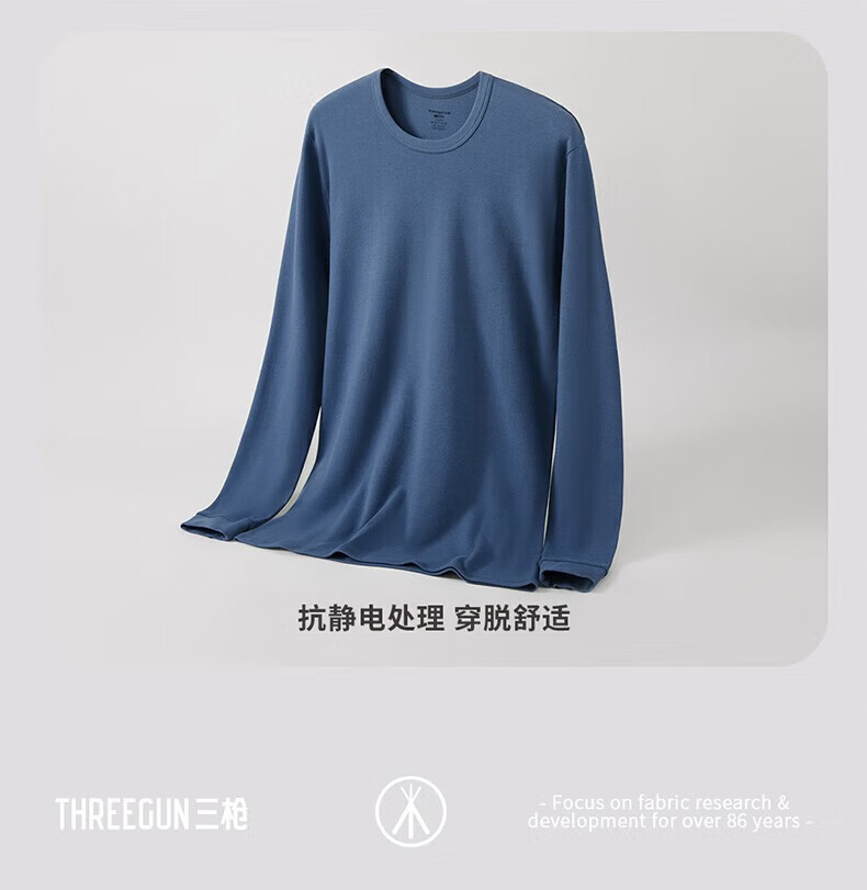 三枪(THREEGUN)秋衣秋裤保暖内衣套装纯棉抗静电舒服棉舒适圆领长袖长裤保暖内衣 钴蓝-男款 XL