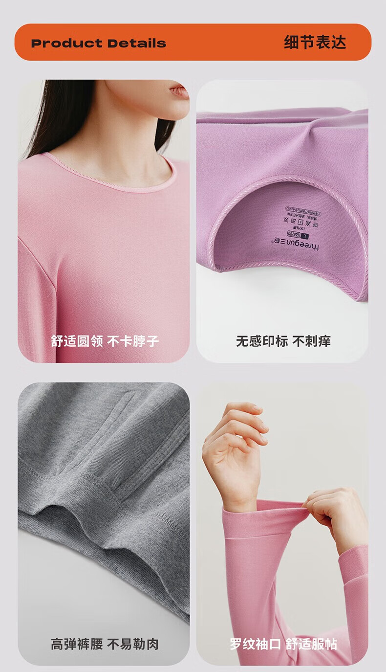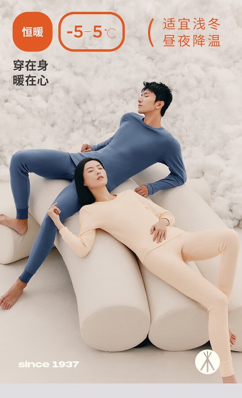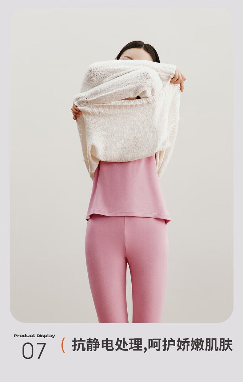 猫人(MiiOW)保暖内衣女士秋冬季加绒蓄热薄款无痕亲肤打底衣抗菌秋衣秋裤套装 炫彩肤 3XL 【建议体重160-170斤】