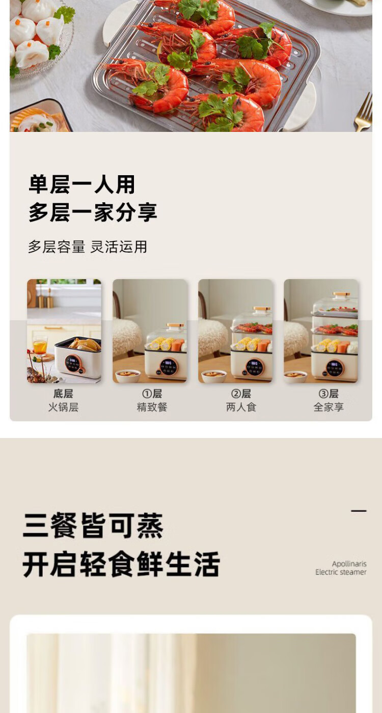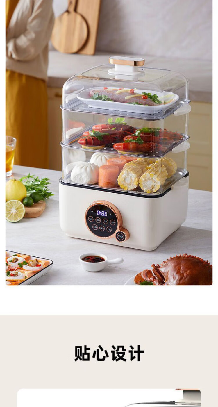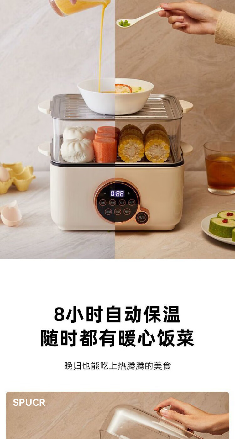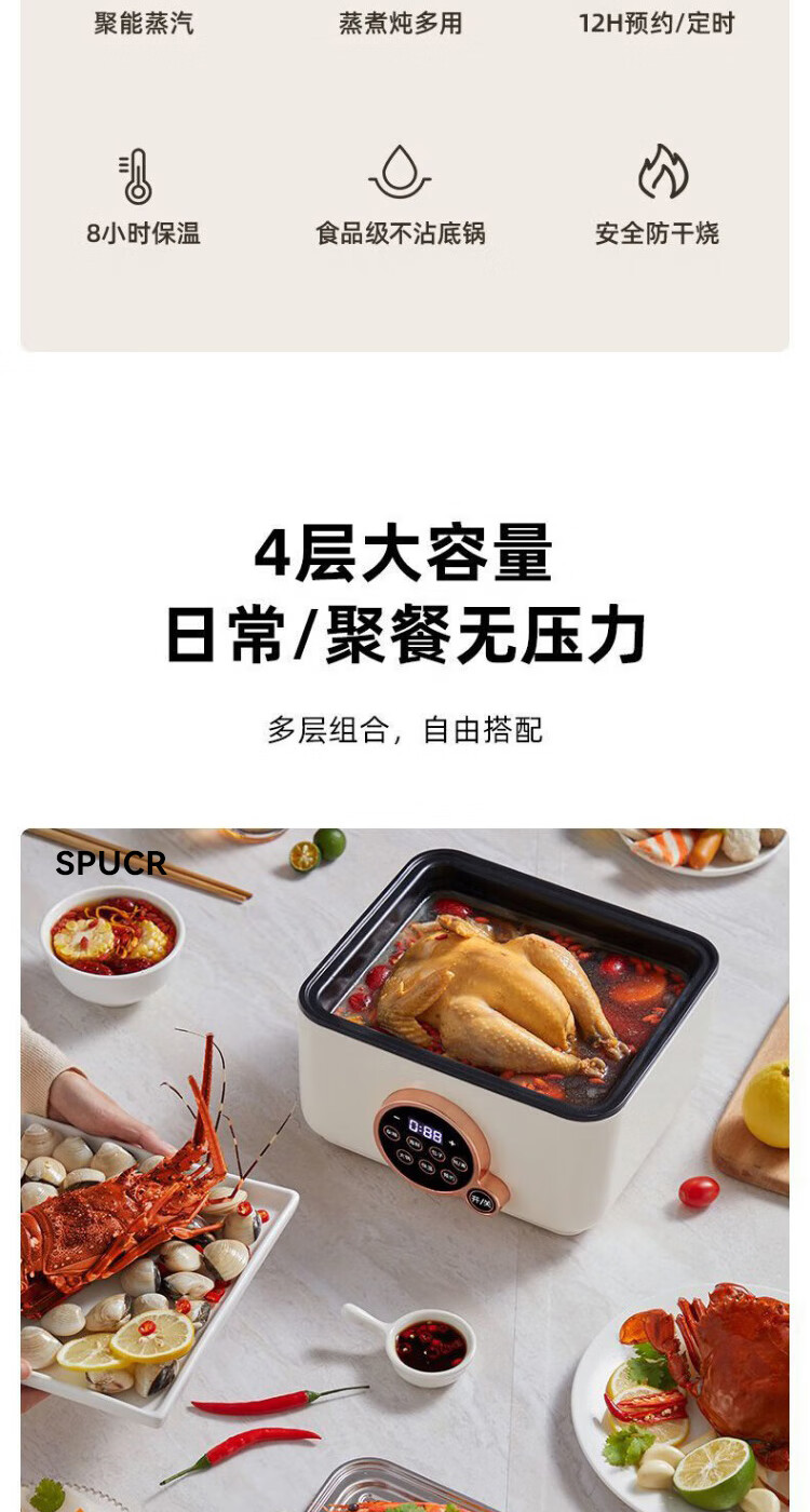 SPUCR苏泊电蒸锅家用大容量蒸煮炖一体四层不锈钢多功能锅预约电火锅蒸笼包子蒸鱼 【升级款】四层大容量(智能预约可煮火锅)质保一年